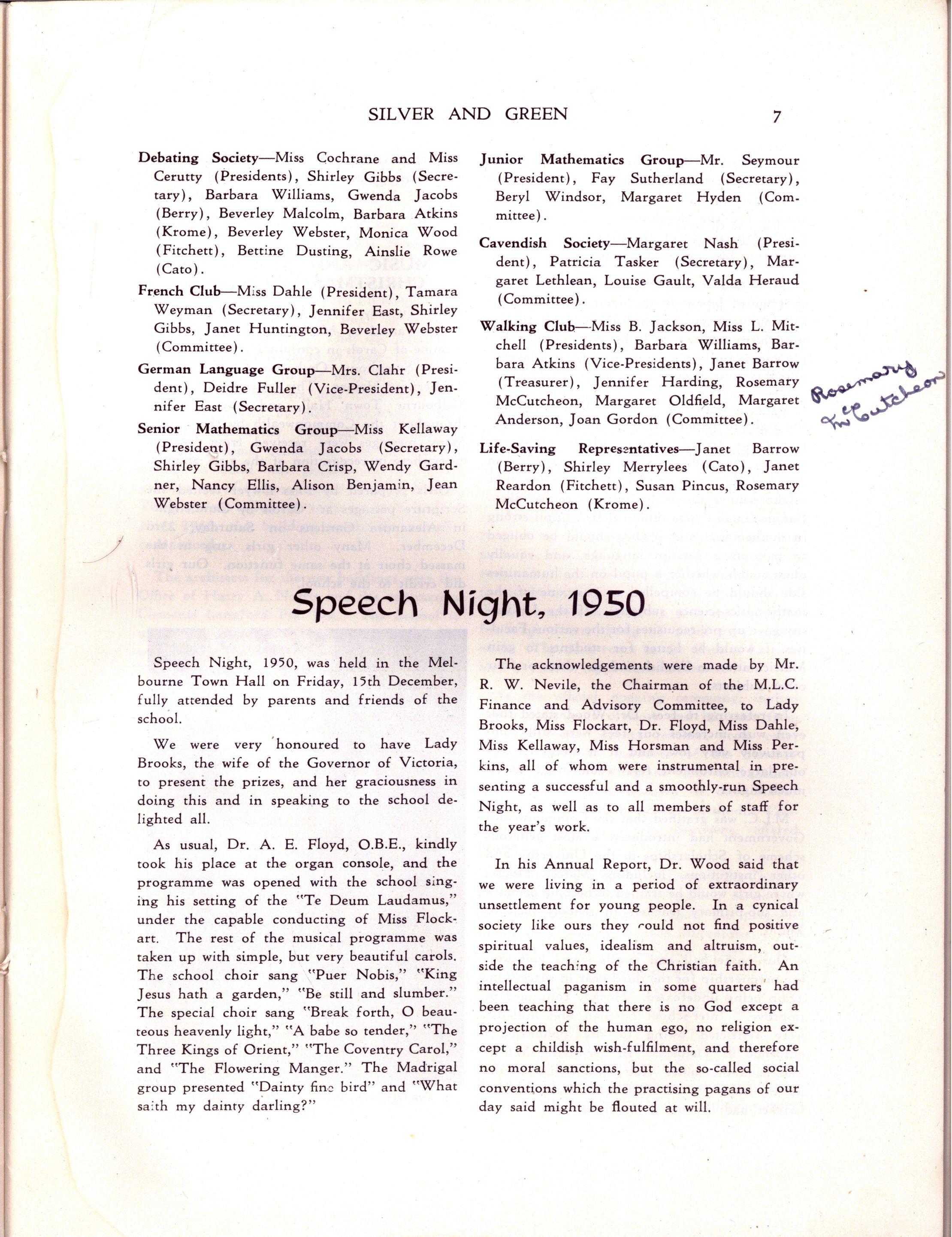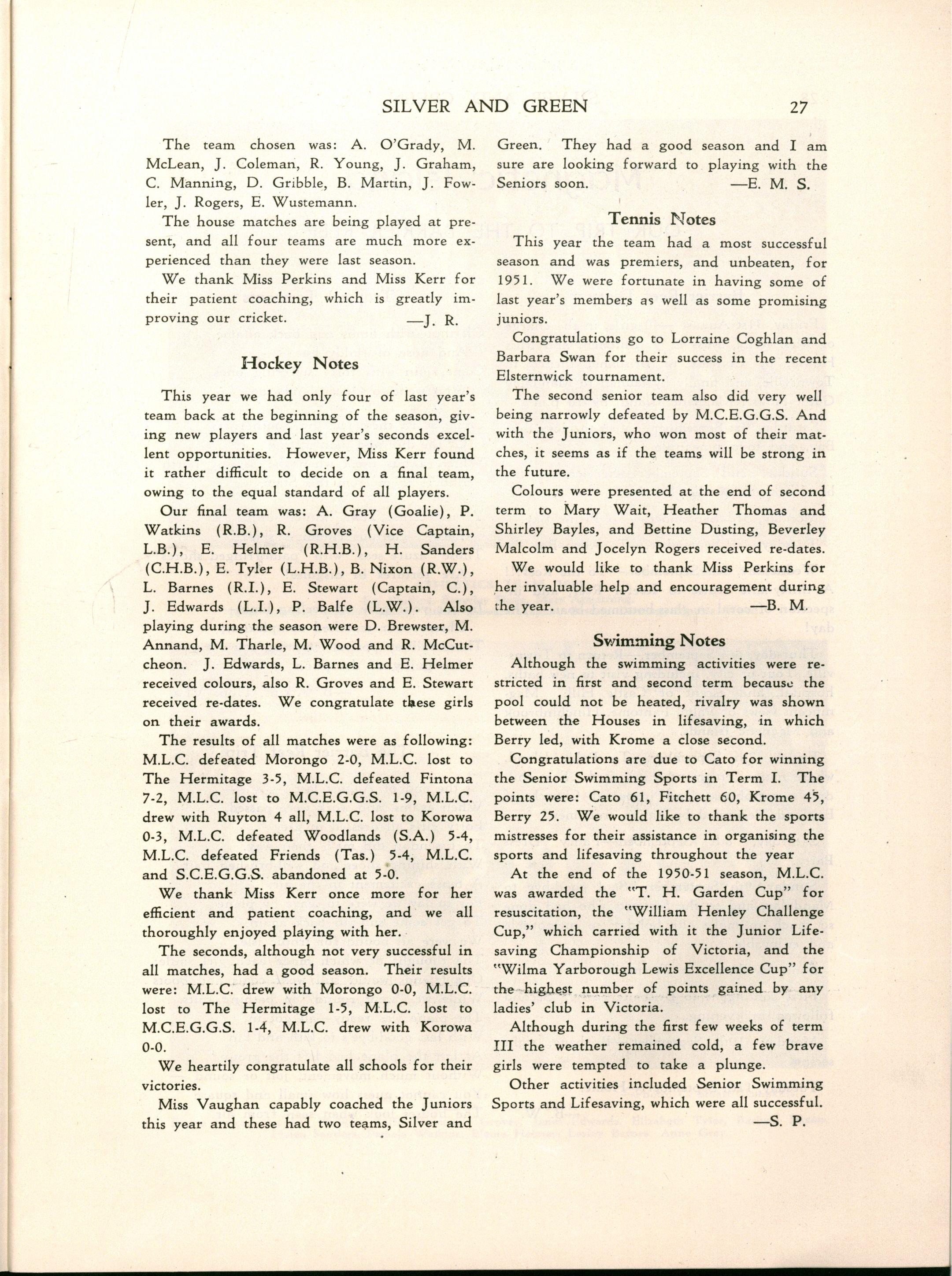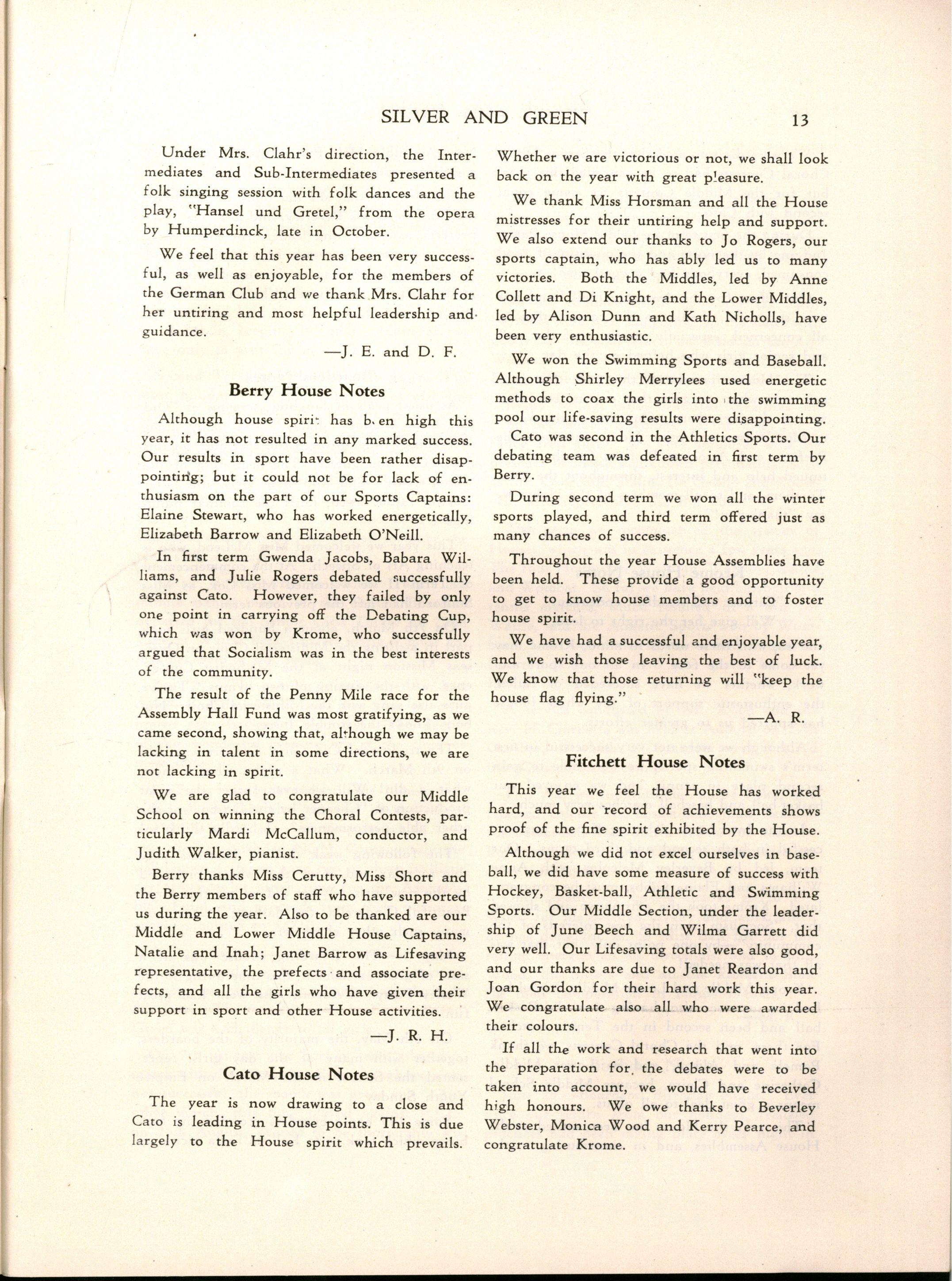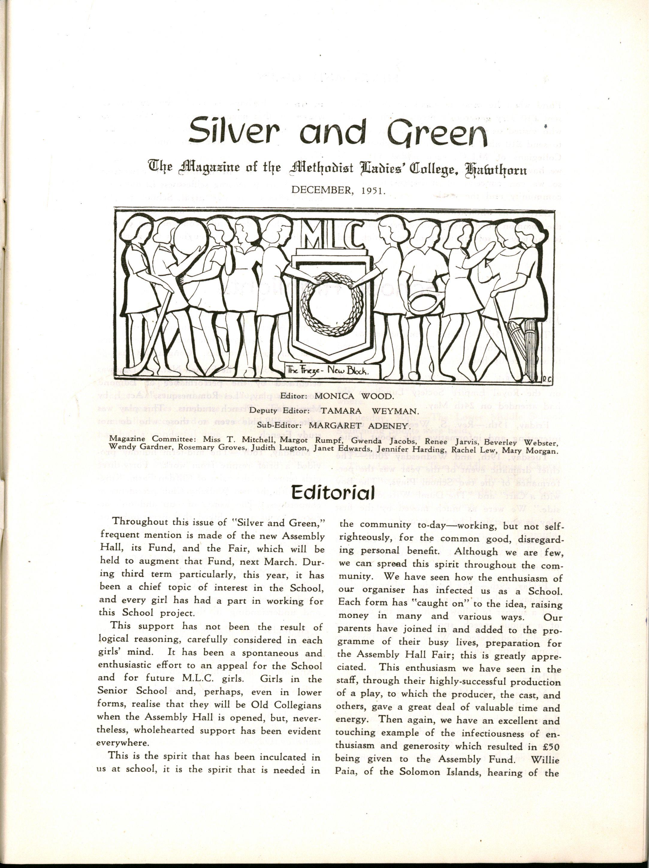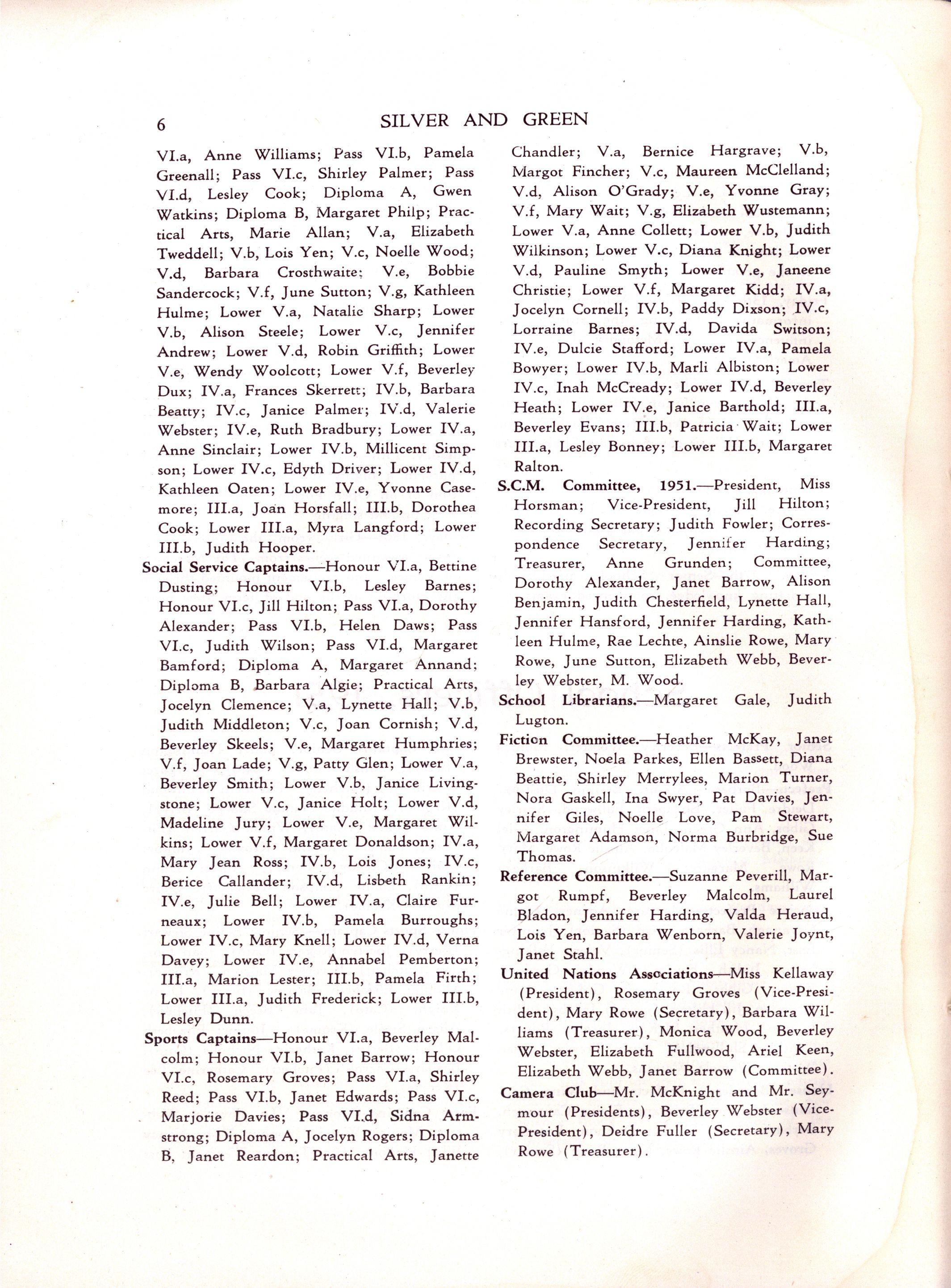 Magazine Committee: Miss L Mitchell, Wend y Gardner, Rosemary Groves, Gwenda Jacobs, Renee Jarvis Judith Lugton, Beyerley Webster, Janet Edwards, Jennifer Harding, Rachel Lew, Mary Morgan