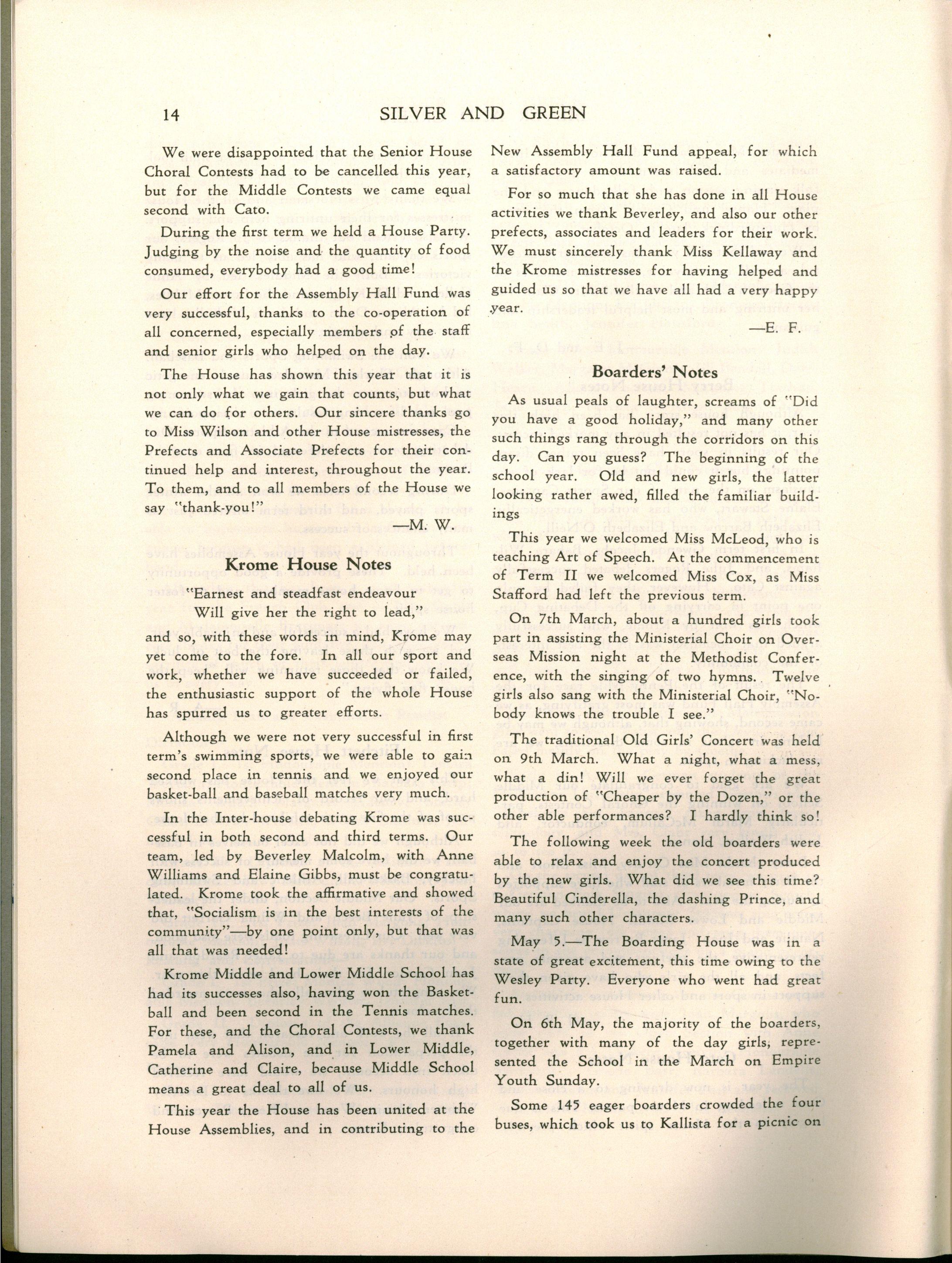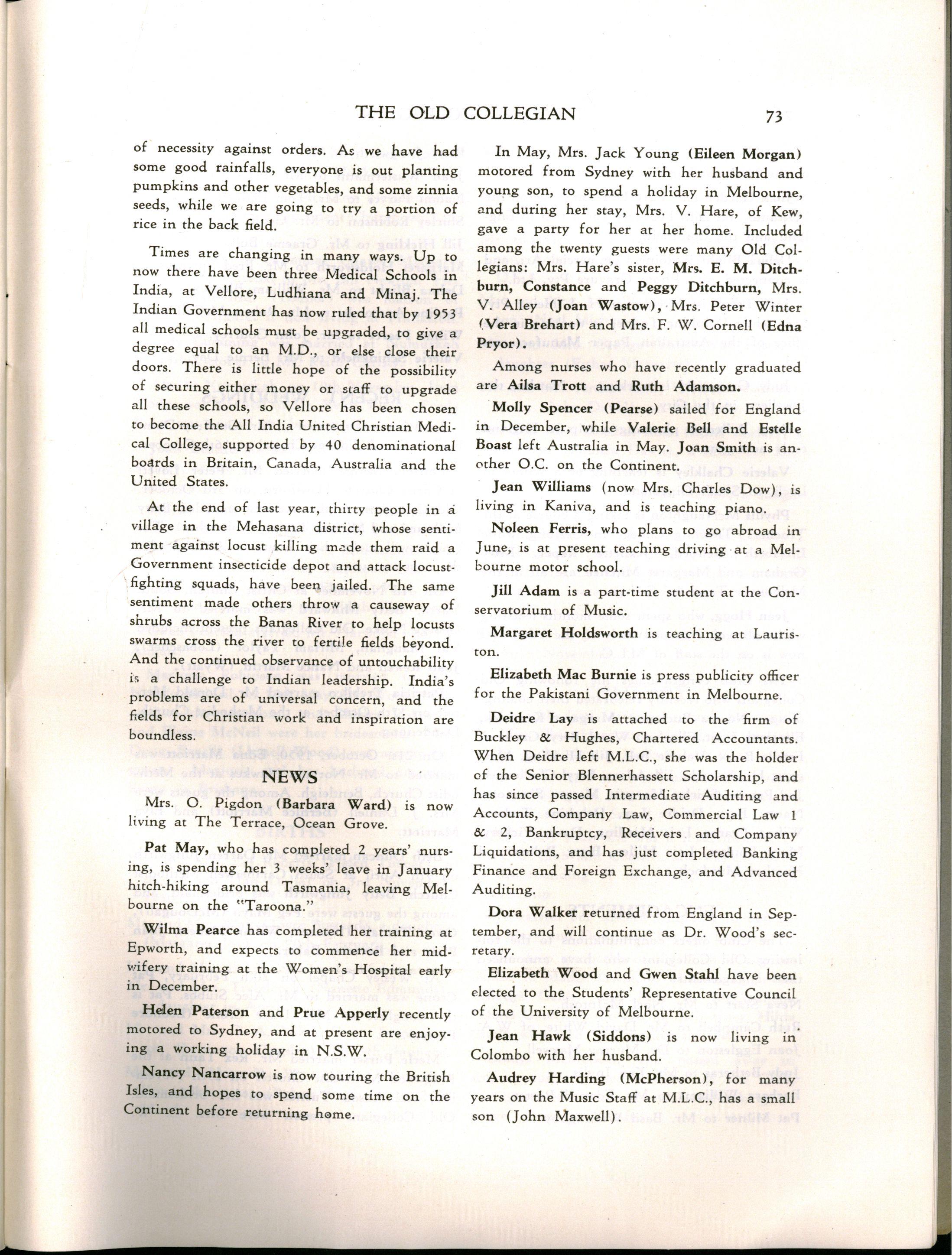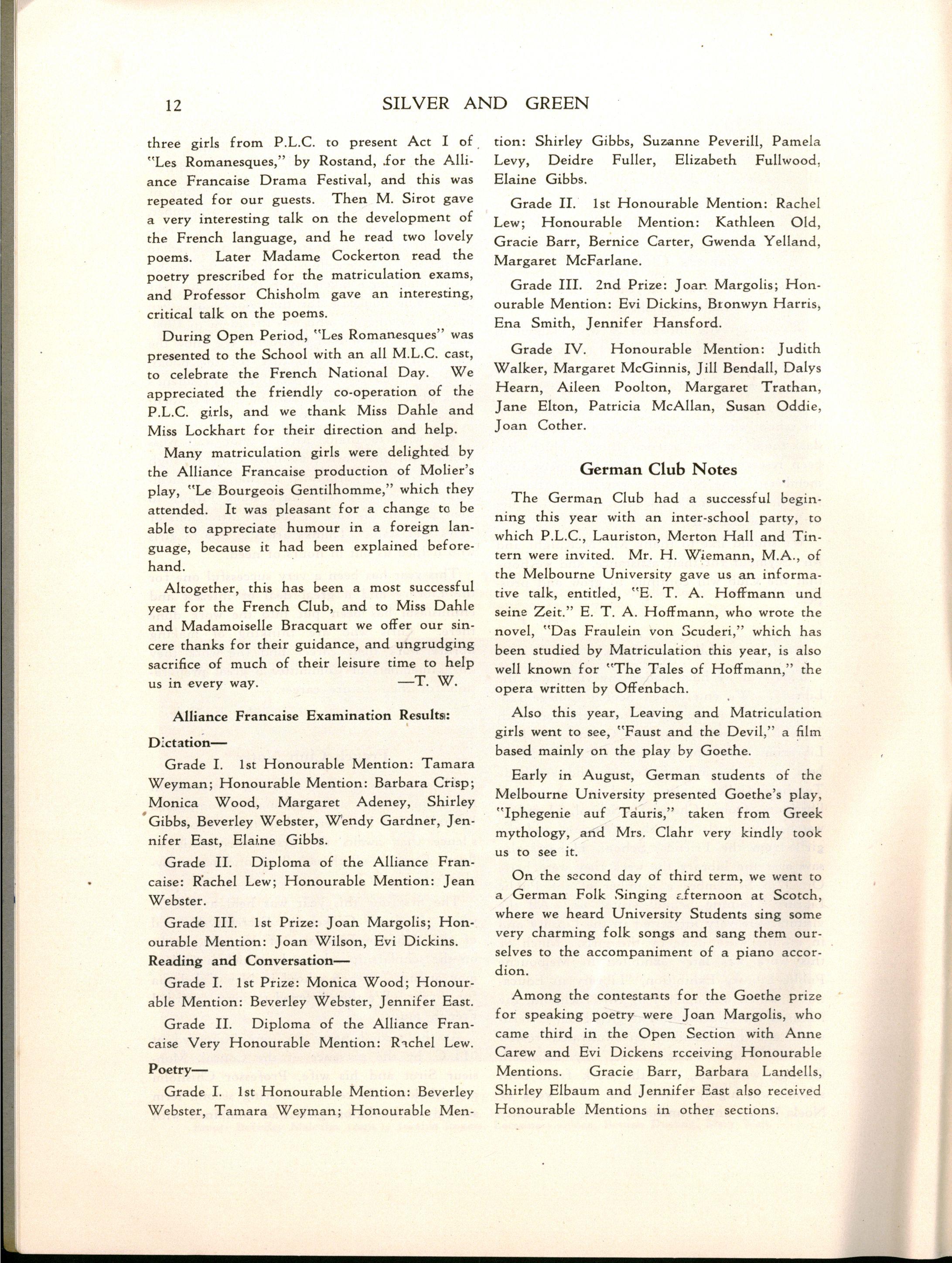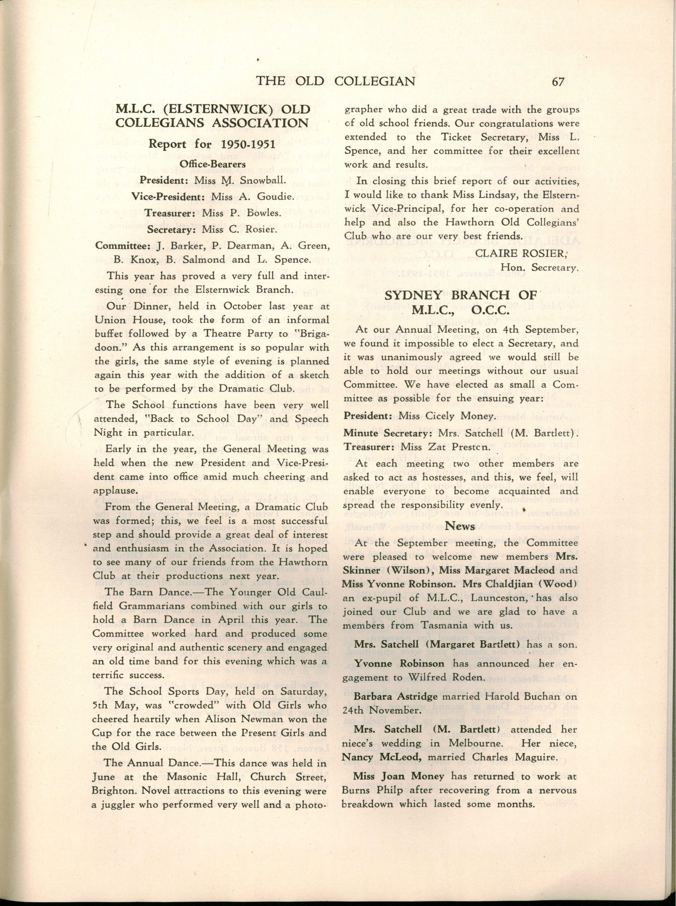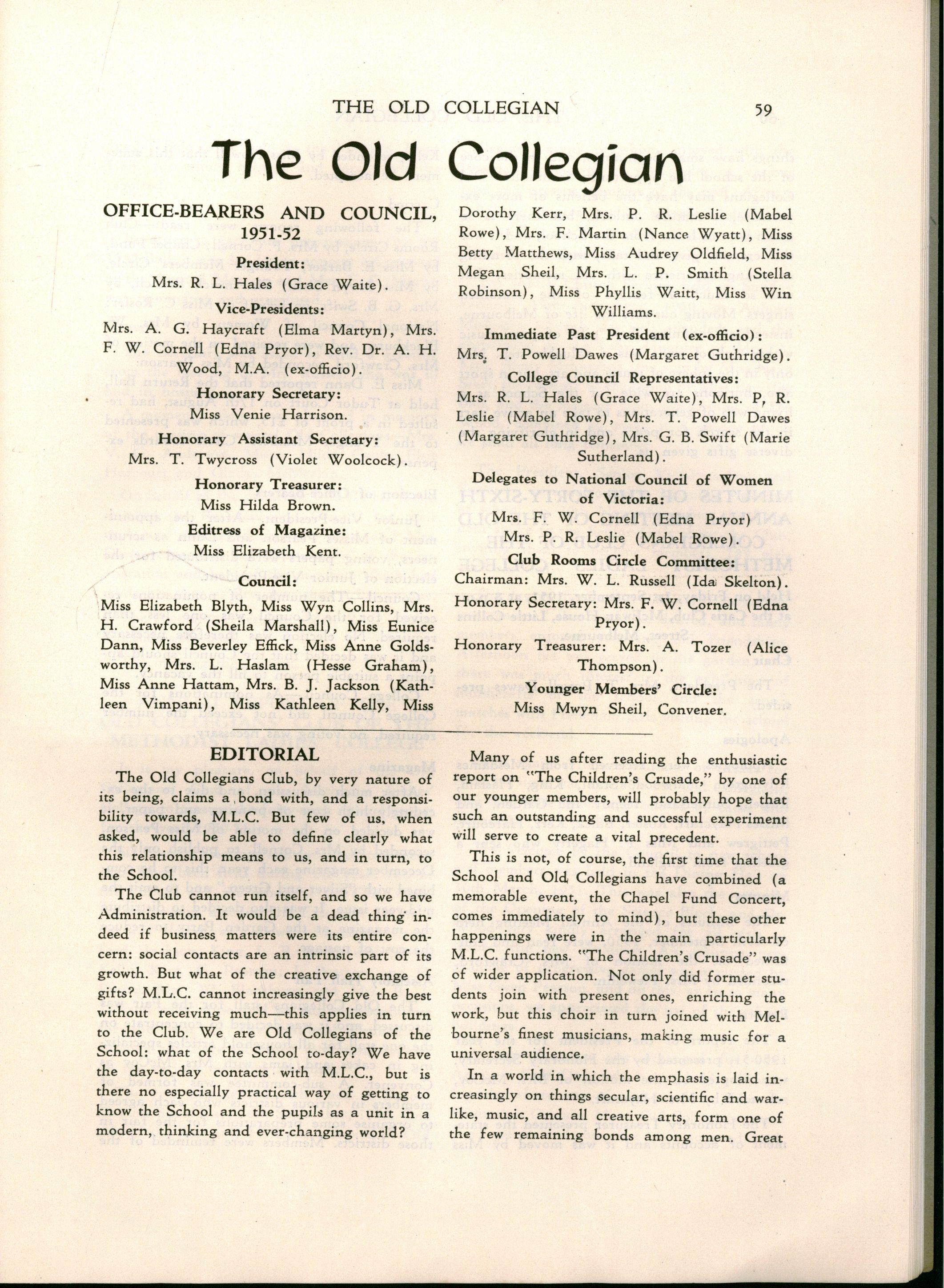 Magazine Committee: Miss L Mitchell, Wend y Gardner, Rosemary Groves, Gwenda Jacobs, Renee Jarvis Judith Lugton, Beyerley Webster, Janet Edwards, Jennifer Harding, Rachel Lew, Mary Morgan