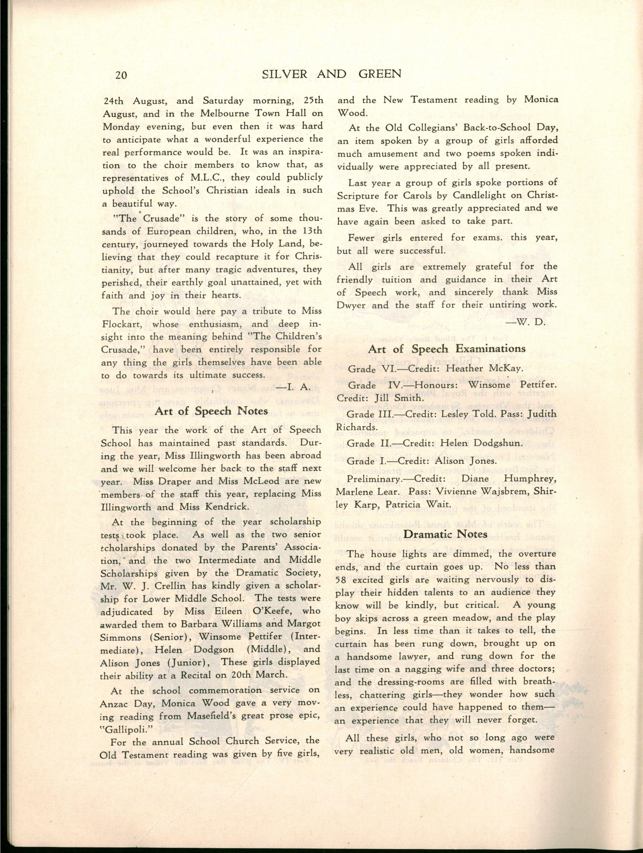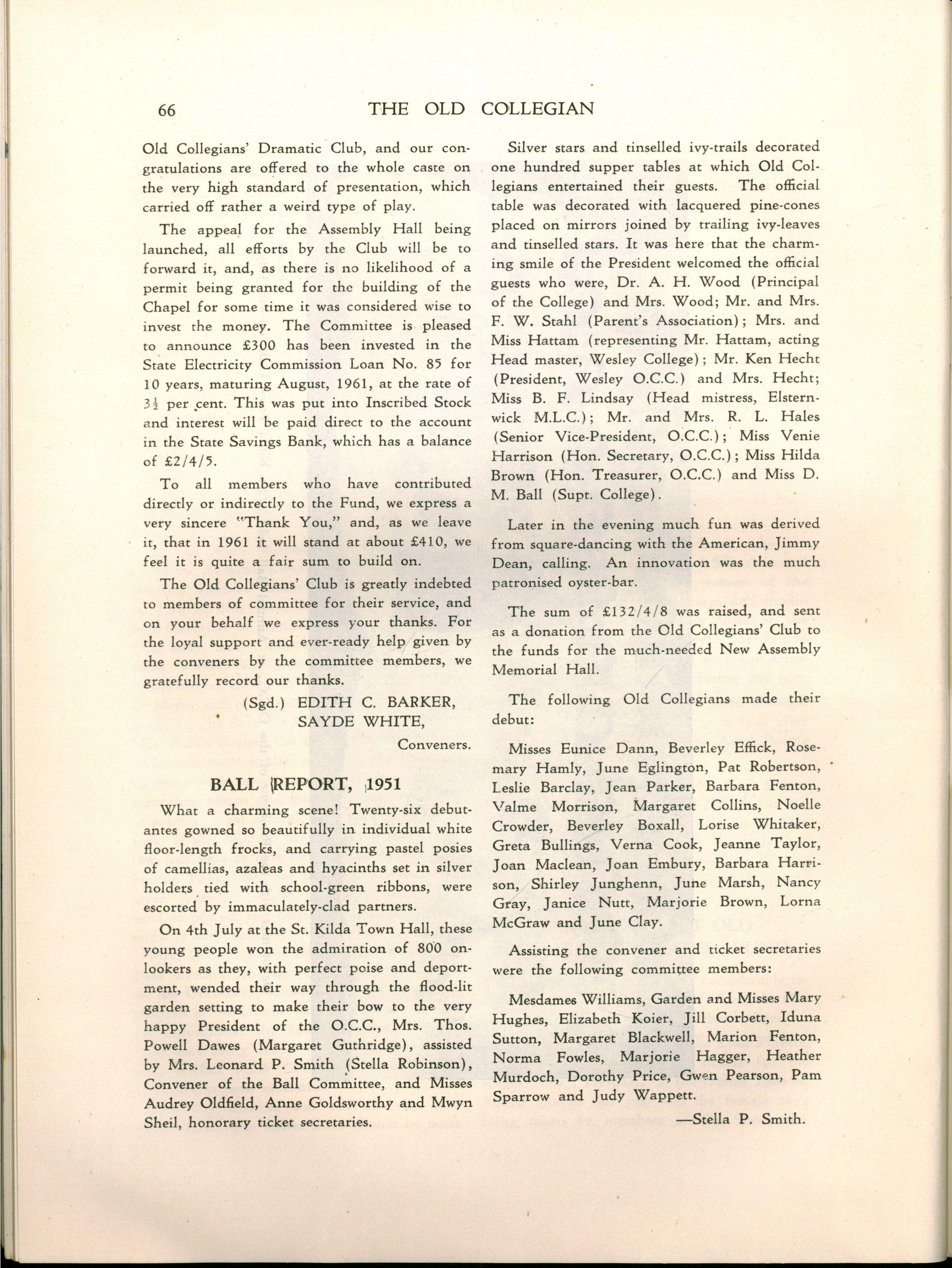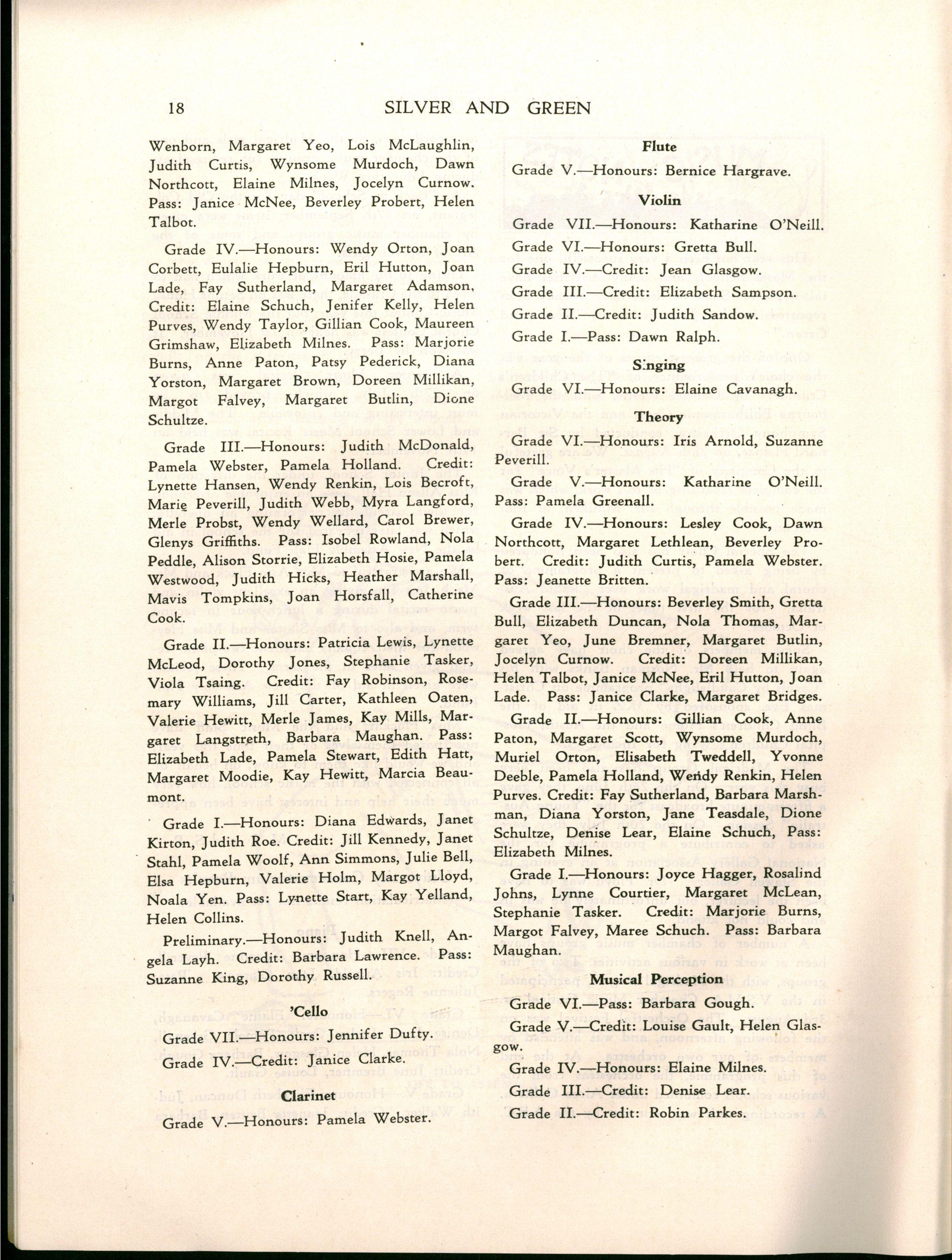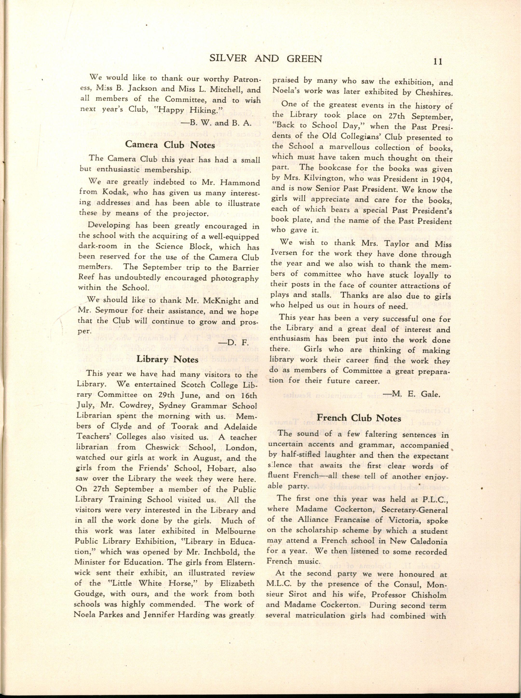 Magazine Committee: Miss L Mitchell, Wend y Gardner, Rosemary Groves, Gwenda Jacobs, Renee Jarvis Judith Lugton, Beyerley Webster, Janet Edwards, Jennifer Harding, Rachel Lew, Mary Morgan