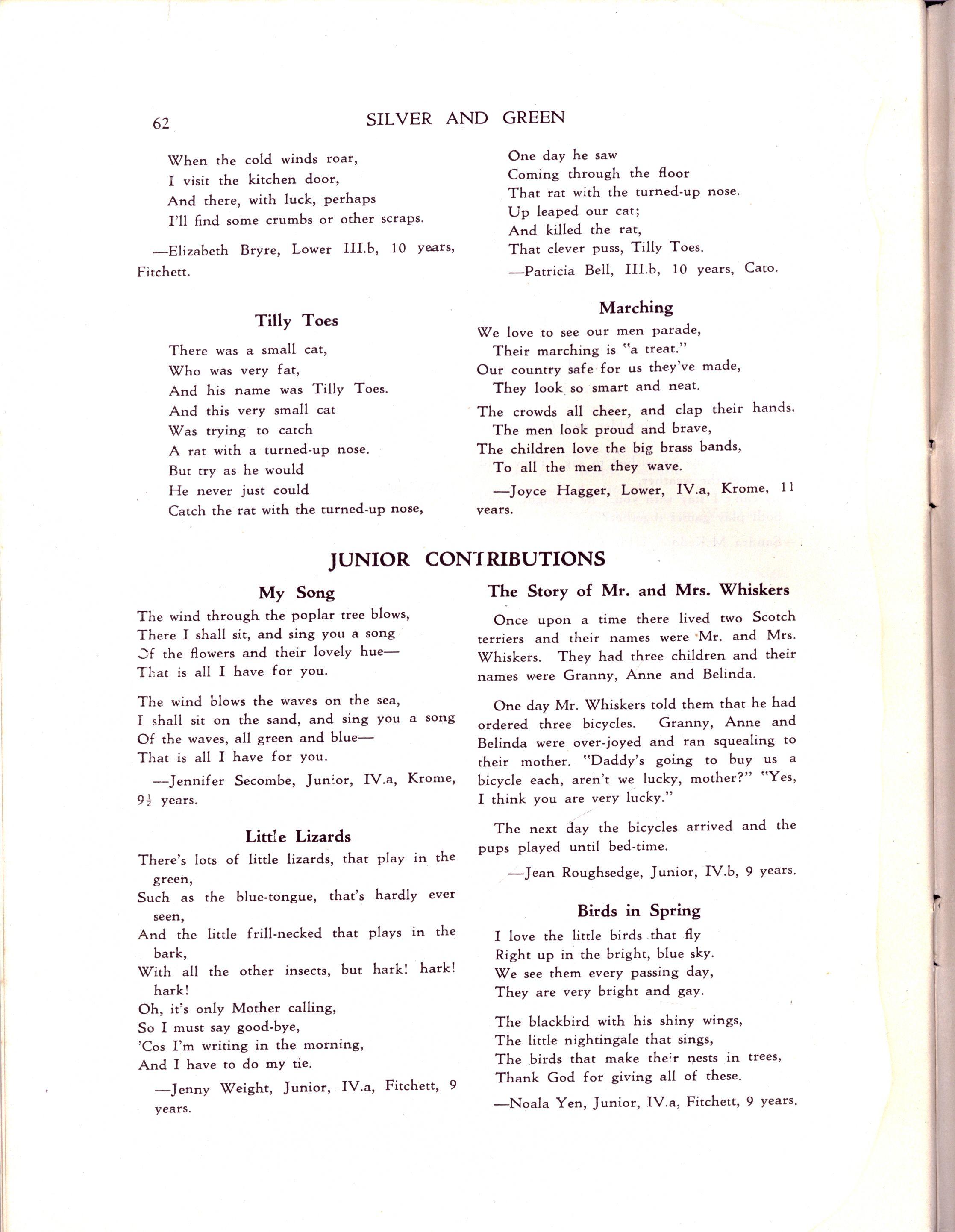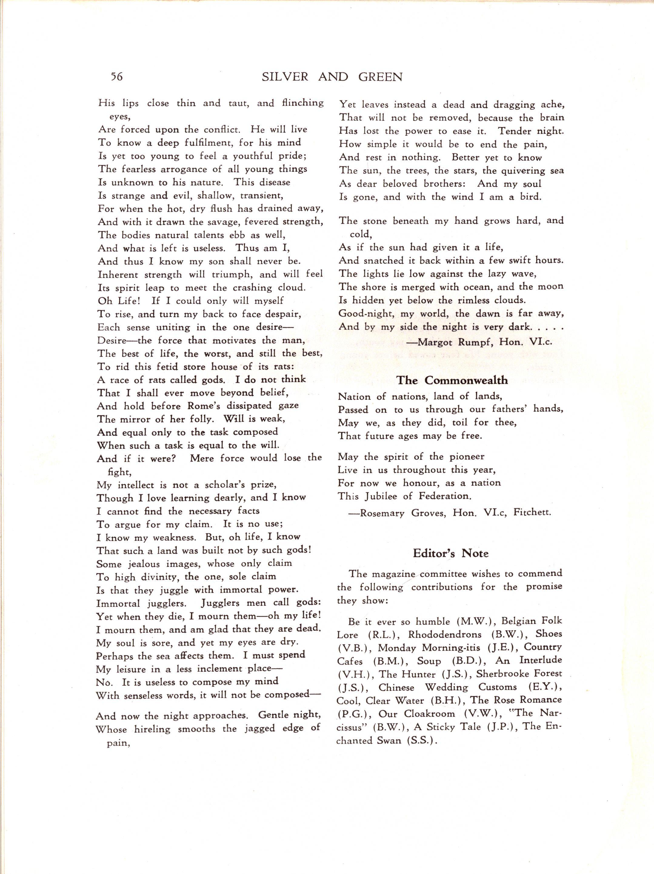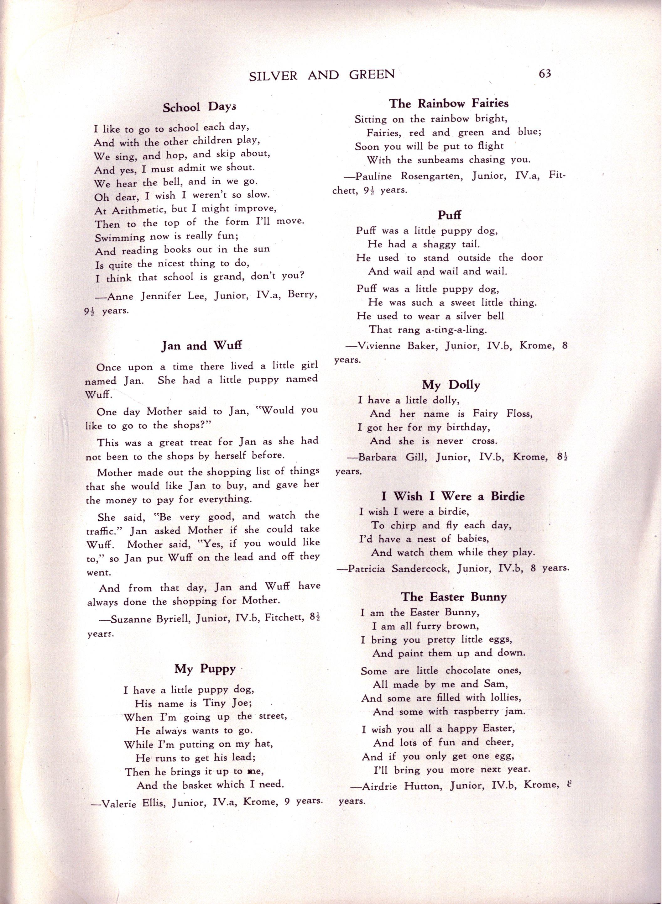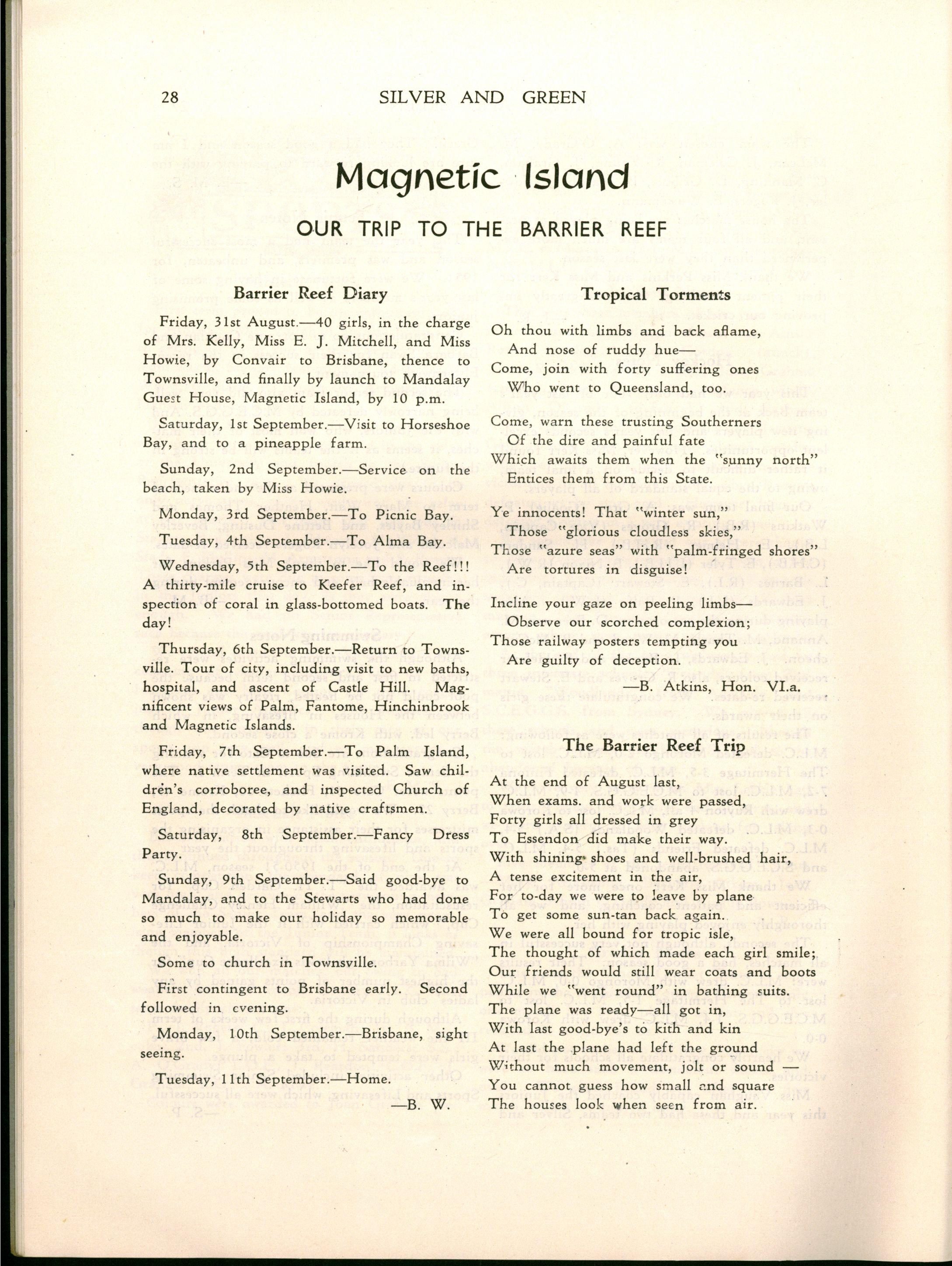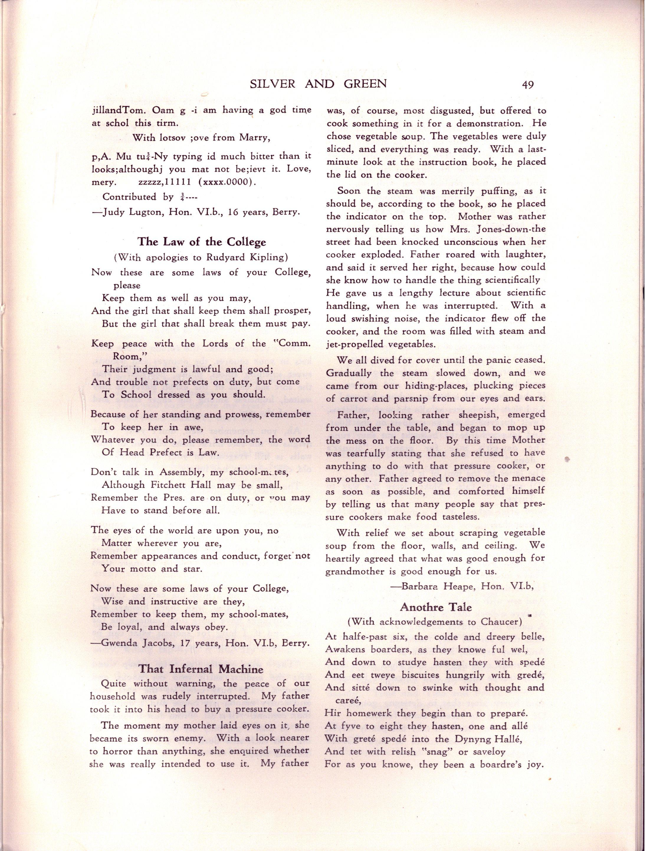 Magazine Committee: Miss L Mitchell, Wend y Gardner, Rosemary Groves, Gwenda Jacobs, Renee Jarvis Judith Lugton, Beyerley Webster, Janet Edwards, Jennifer Harding, Rachel Lew, Mary Morgan