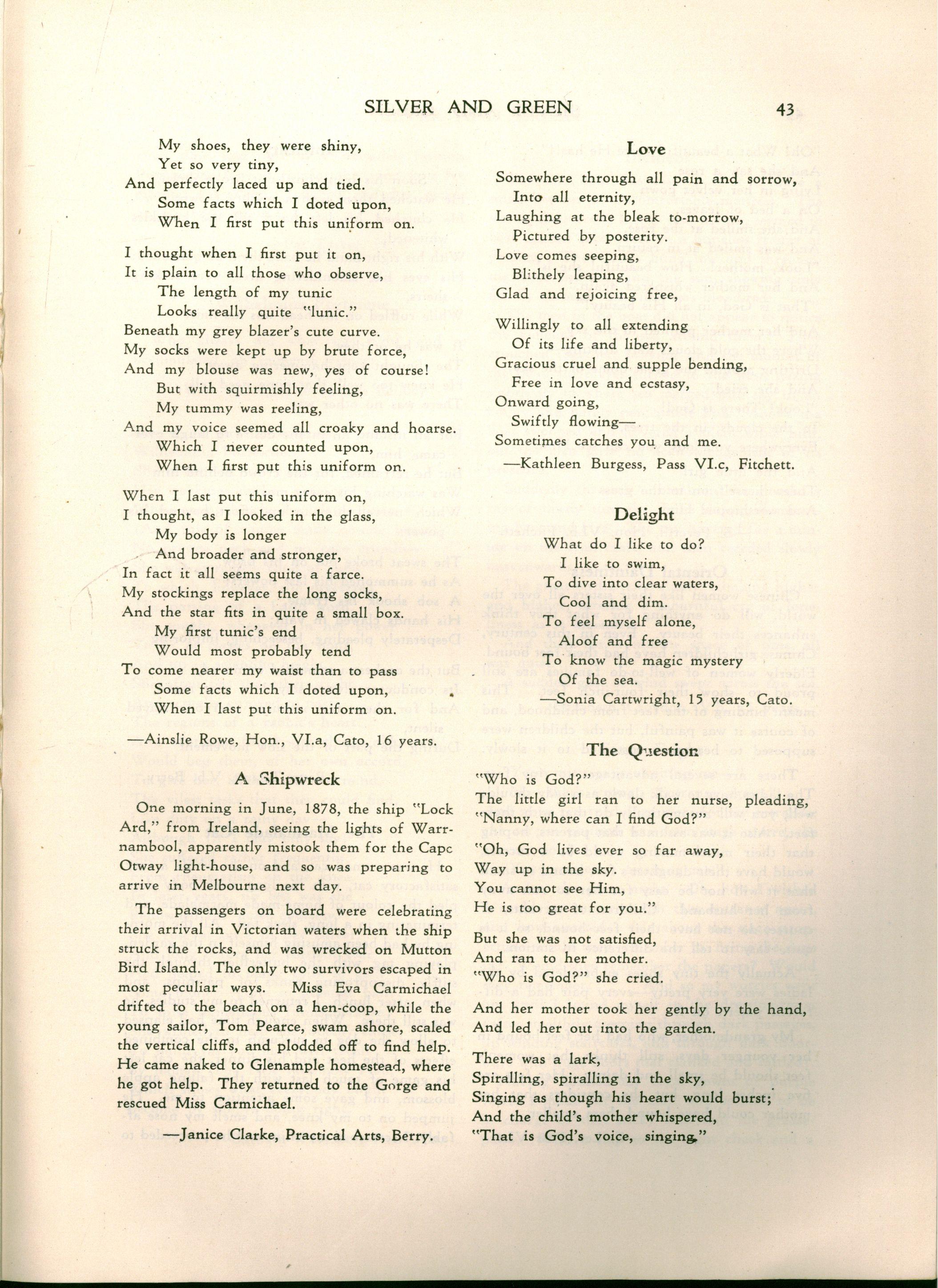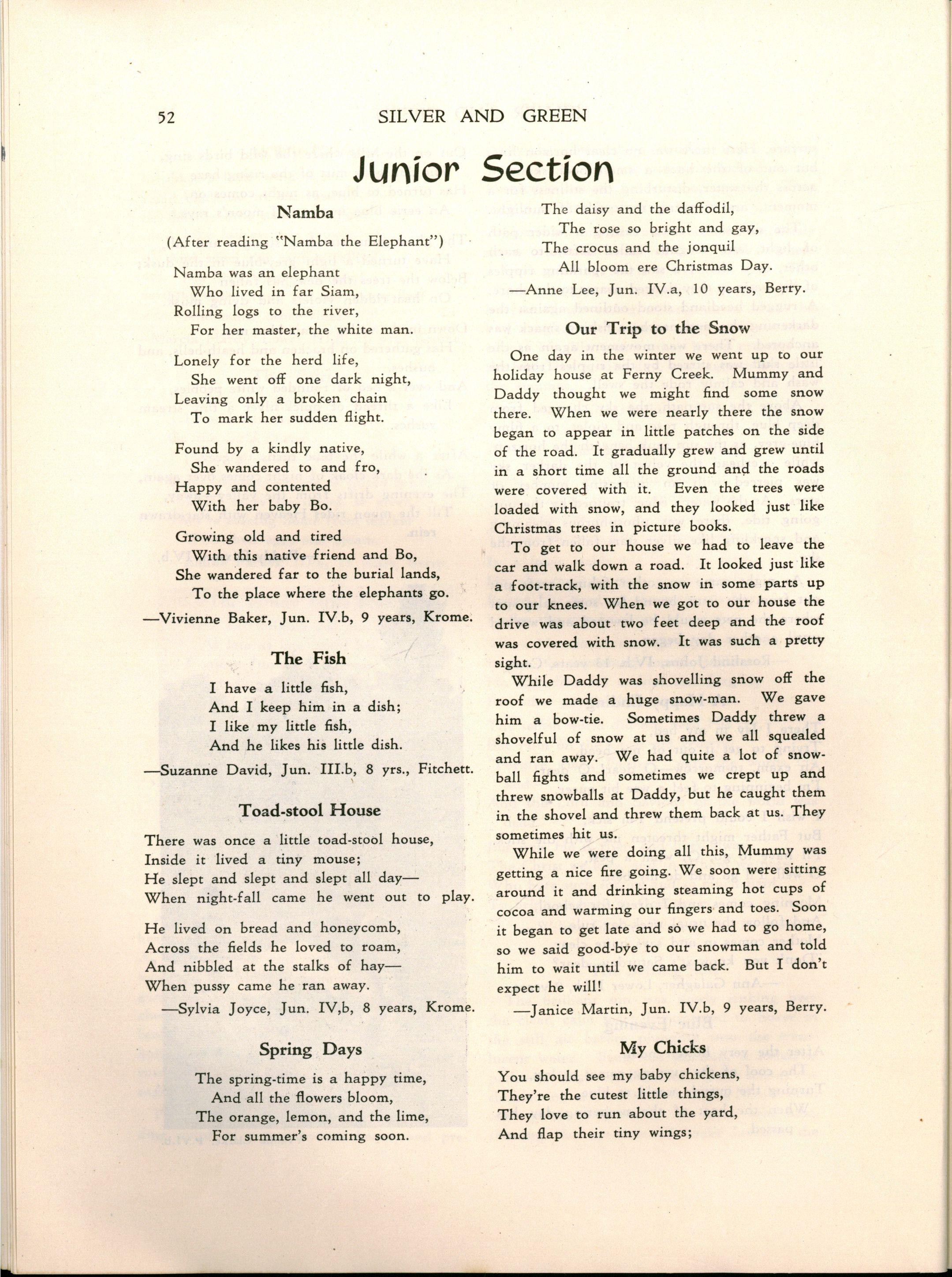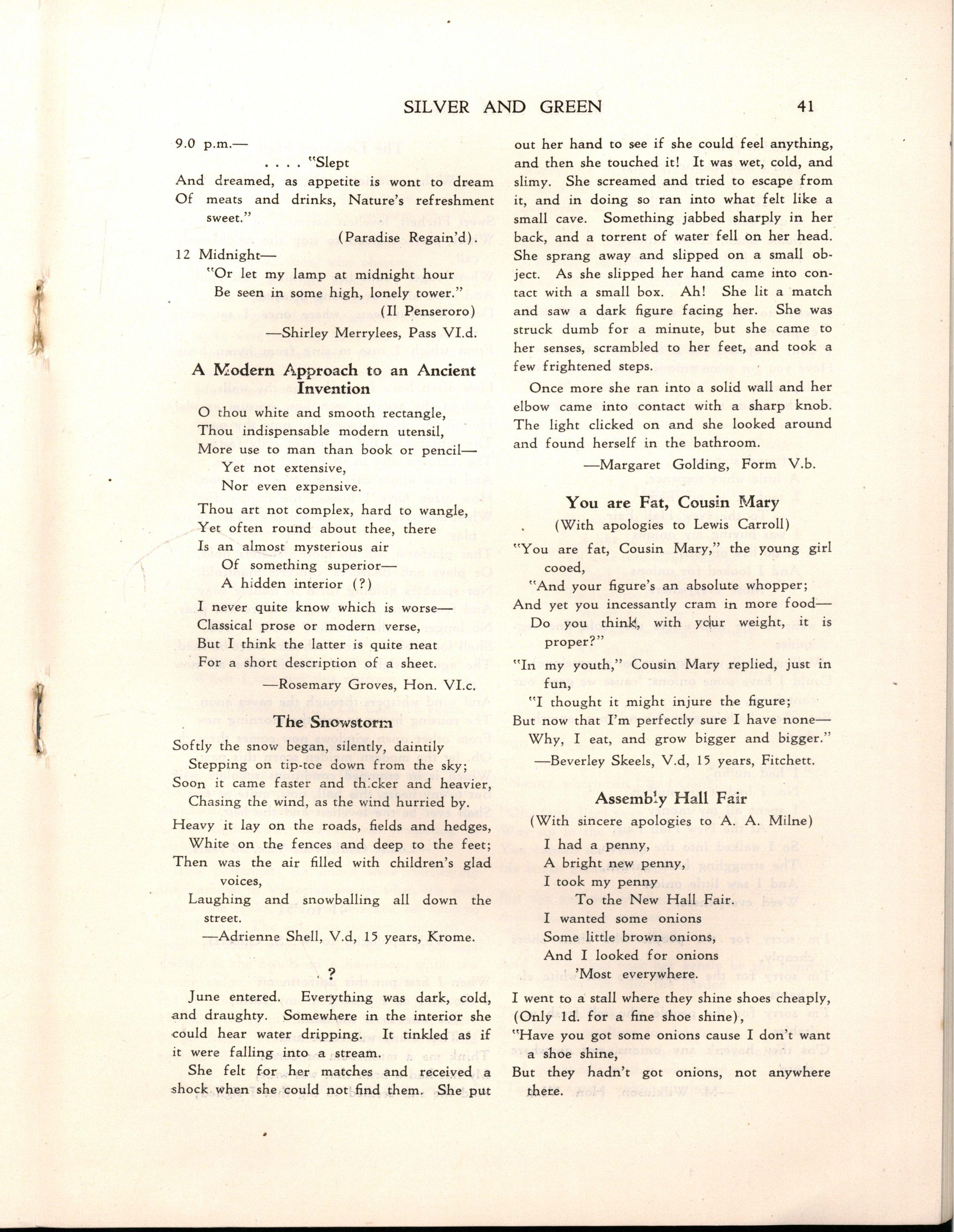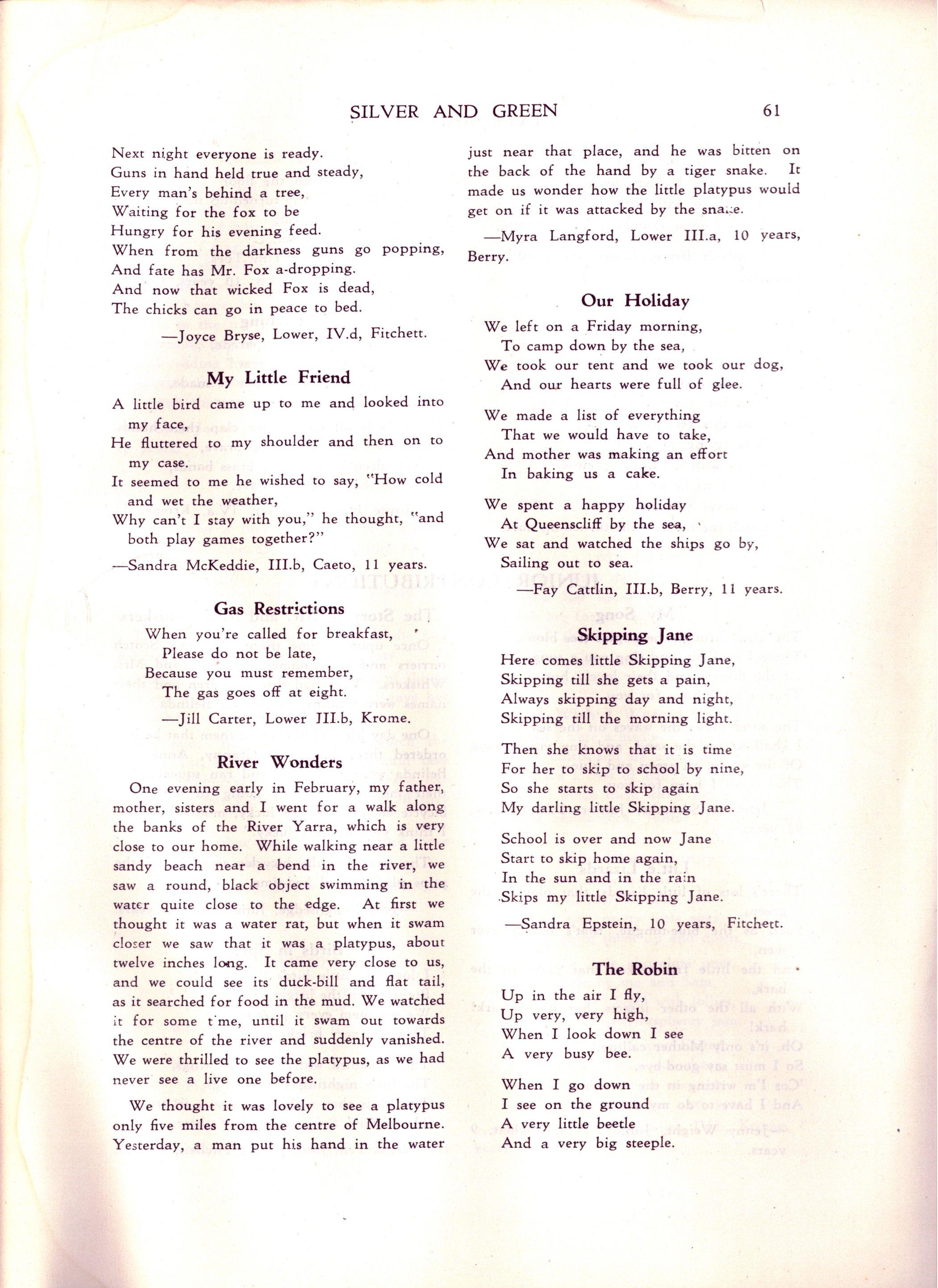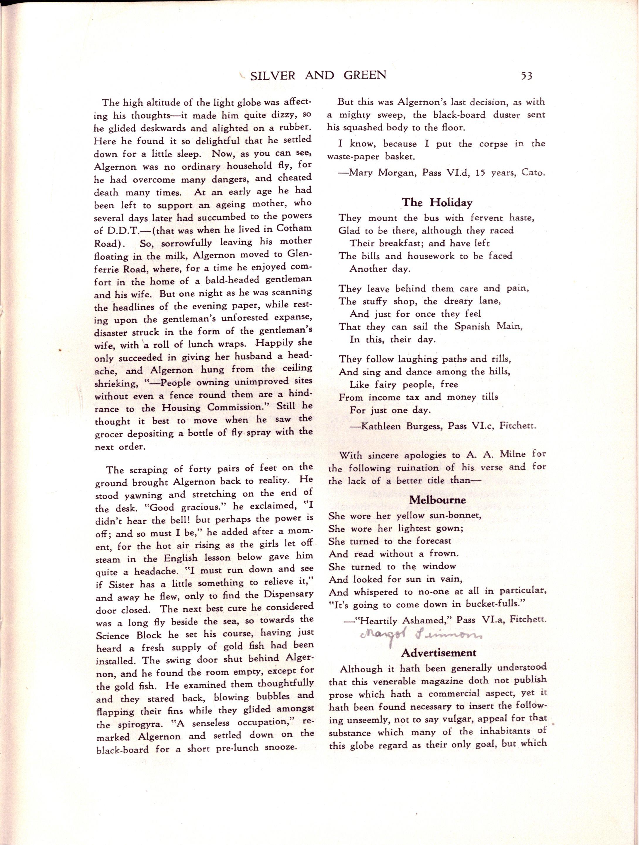 Magazine Committee: Miss L Mitchell, Wend y Gardner, Rosemary Groves, Gwenda Jacobs, Renee Jarvis Judith Lugton, Beyerley Webster, Janet Edwards, Jennifer Harding, Rachel Lew, Mary Morgan
