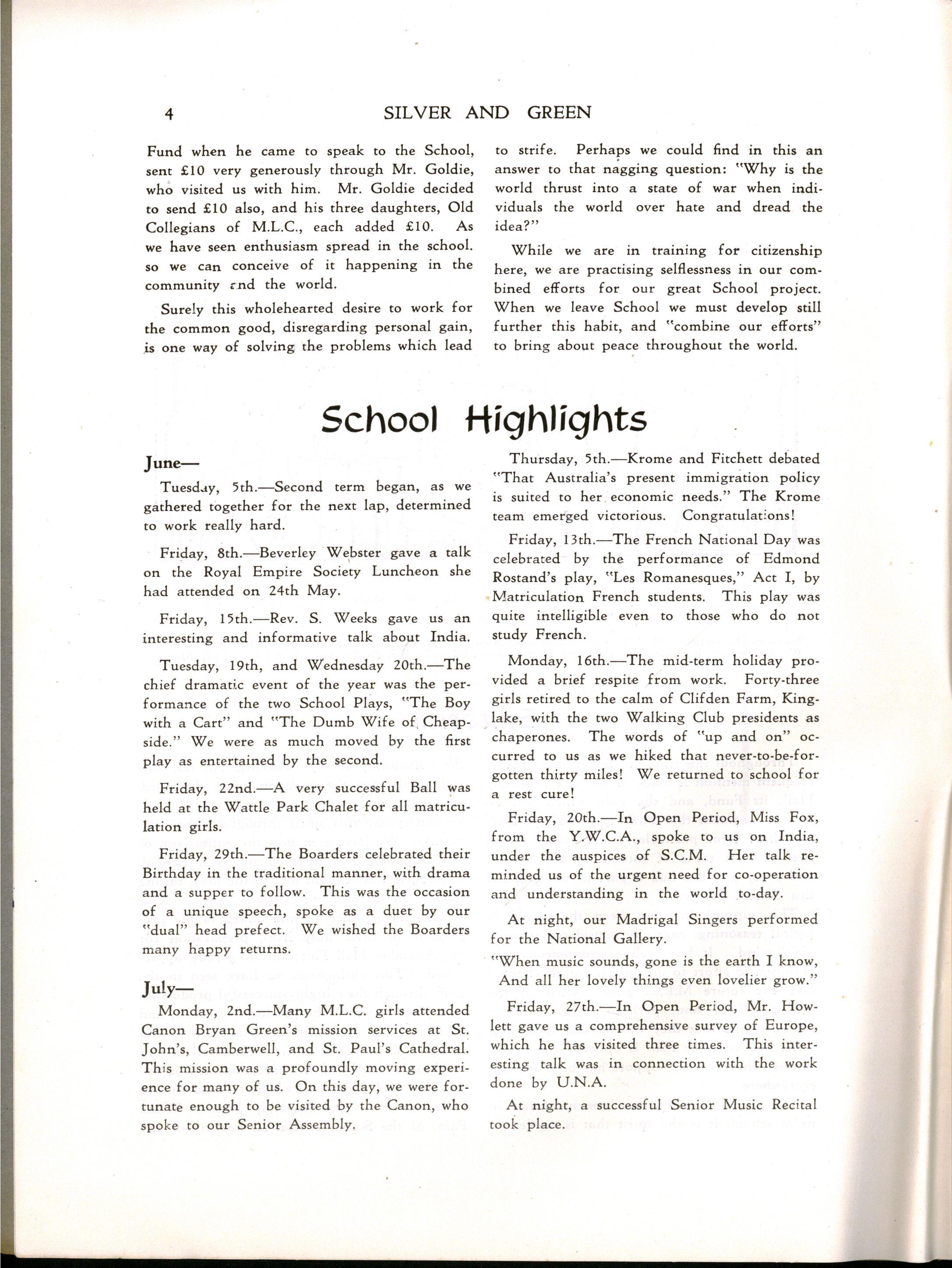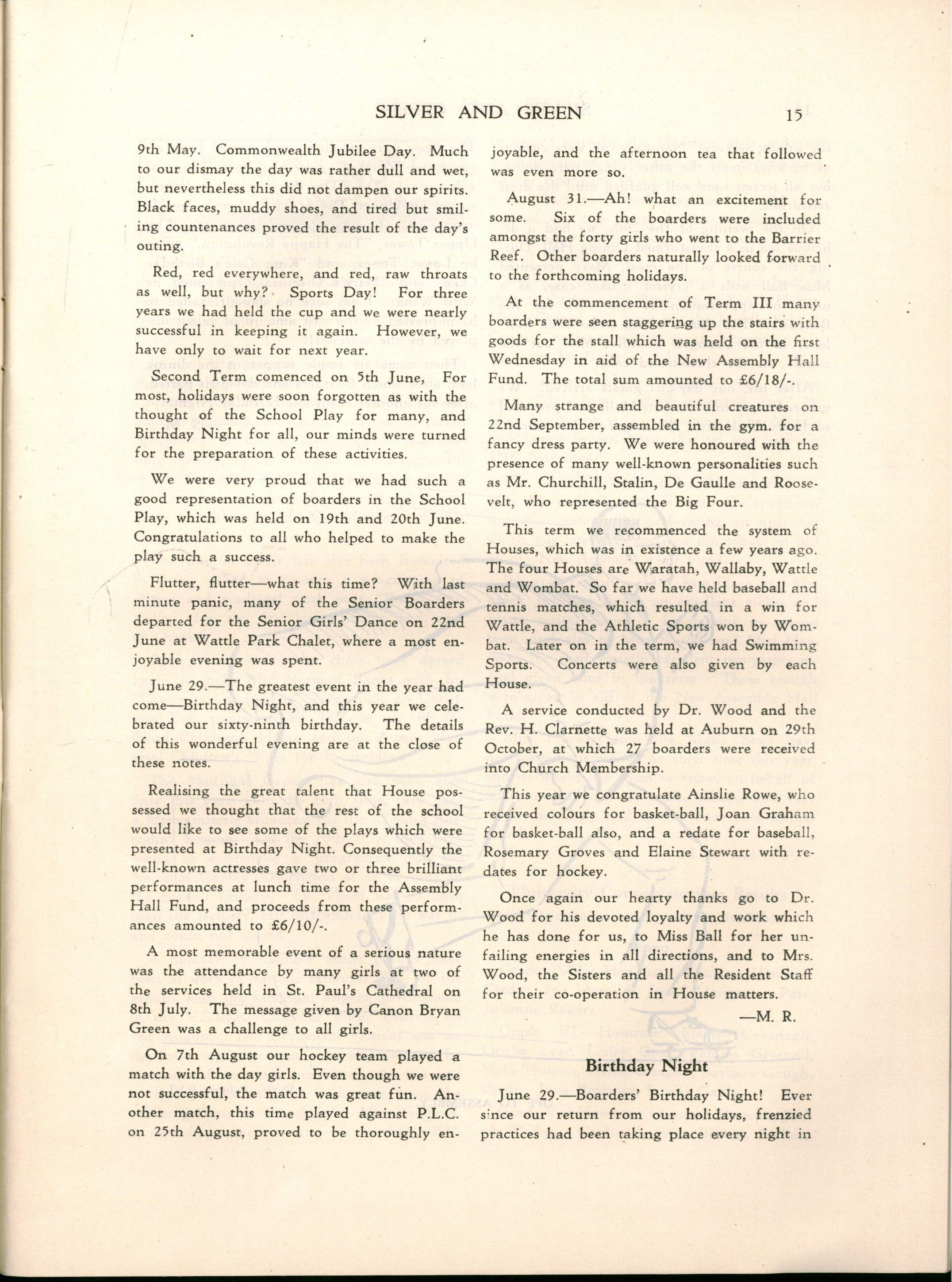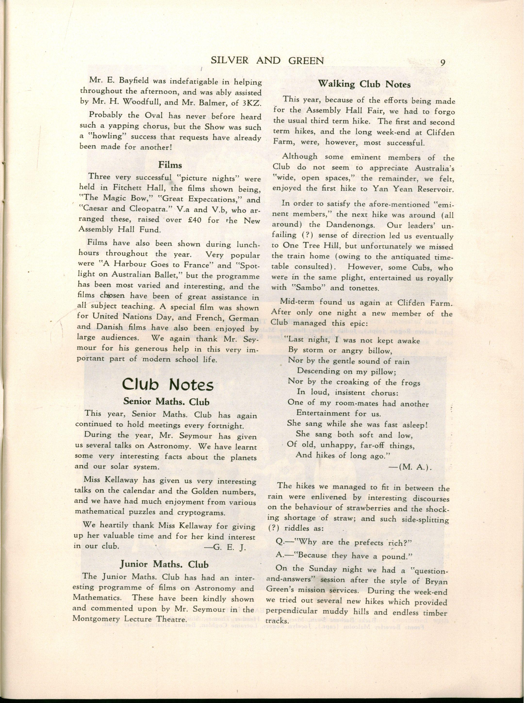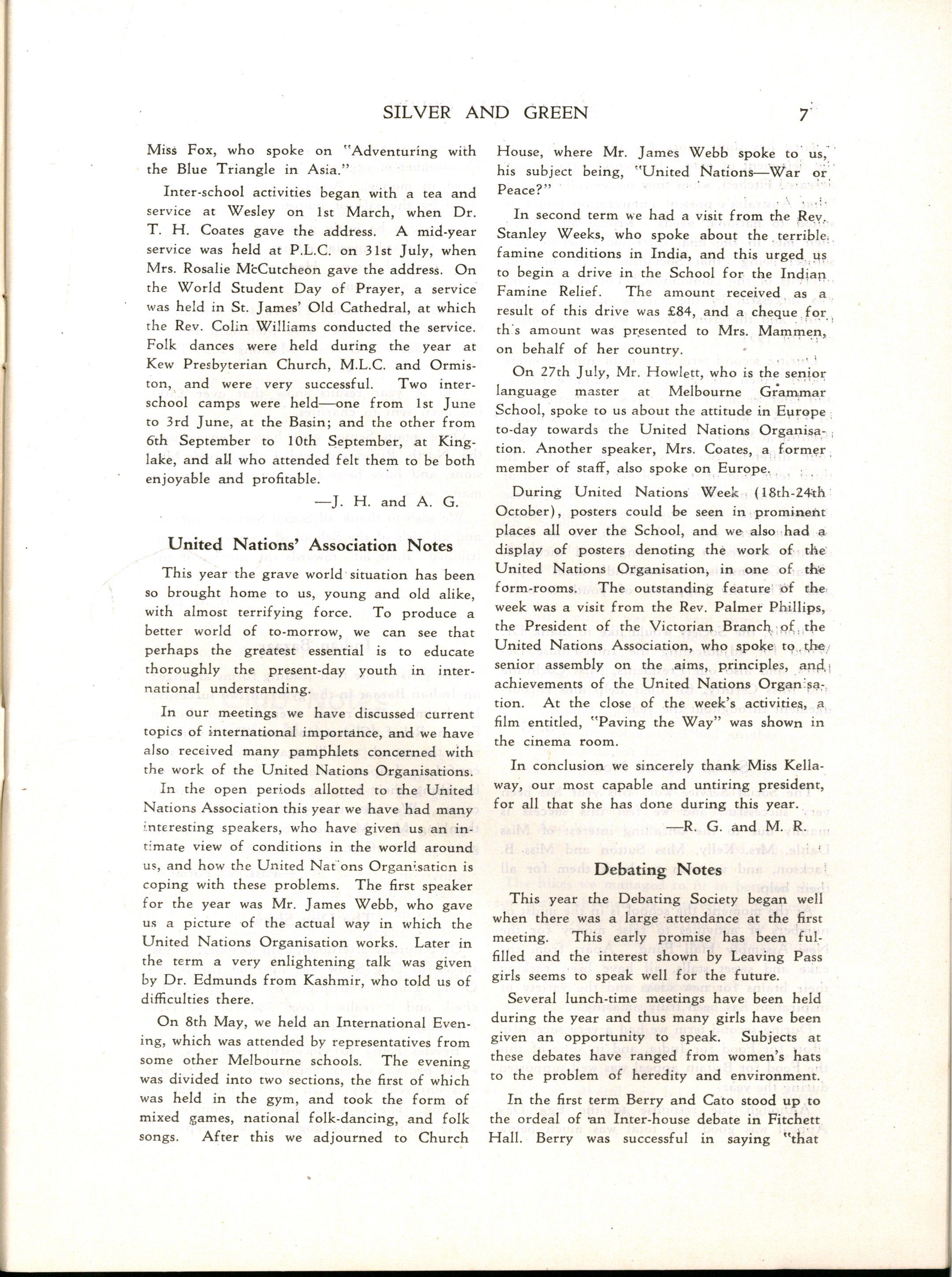 Friday, 2nd—In Open period, Mr J Webb gave to Senior Assembly his interesting impressions of the United Nations Organisation at Lake Success, and of several outstanding personalities