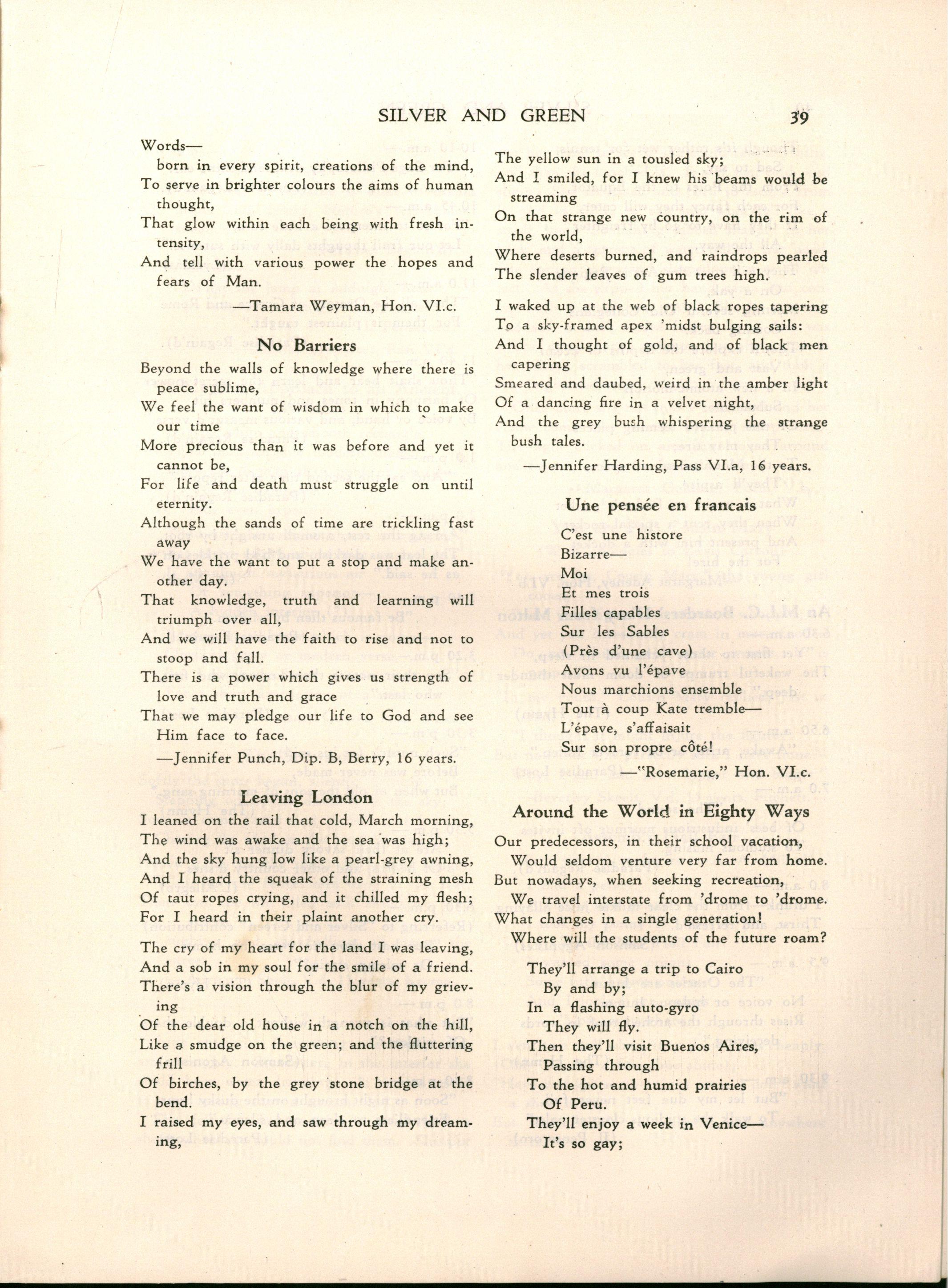 Miss J Alston, B.A., who had taught Geography for two years and who left to be married