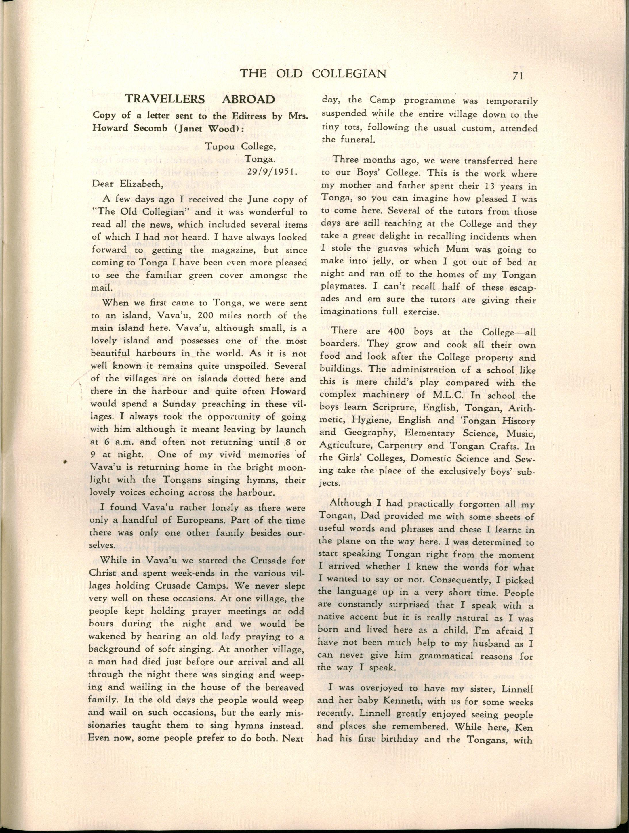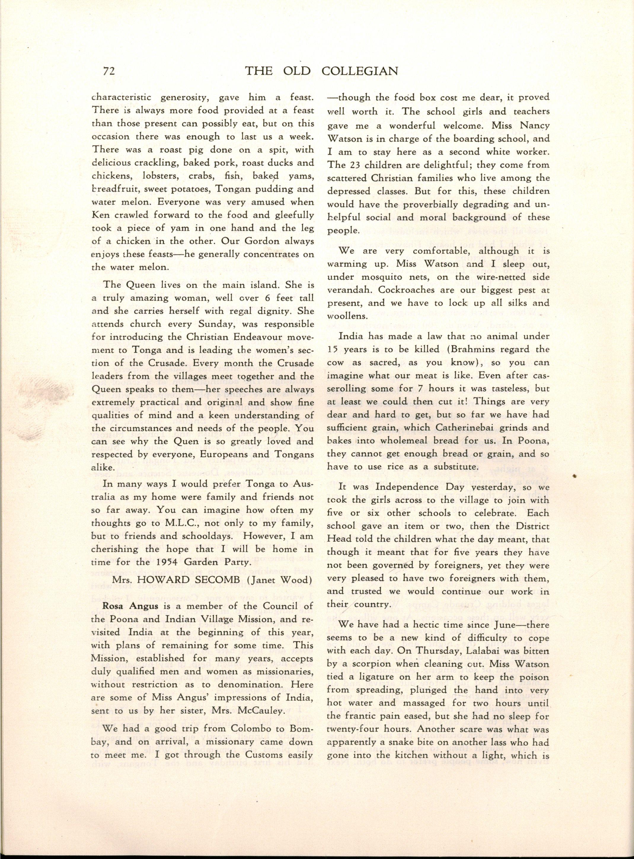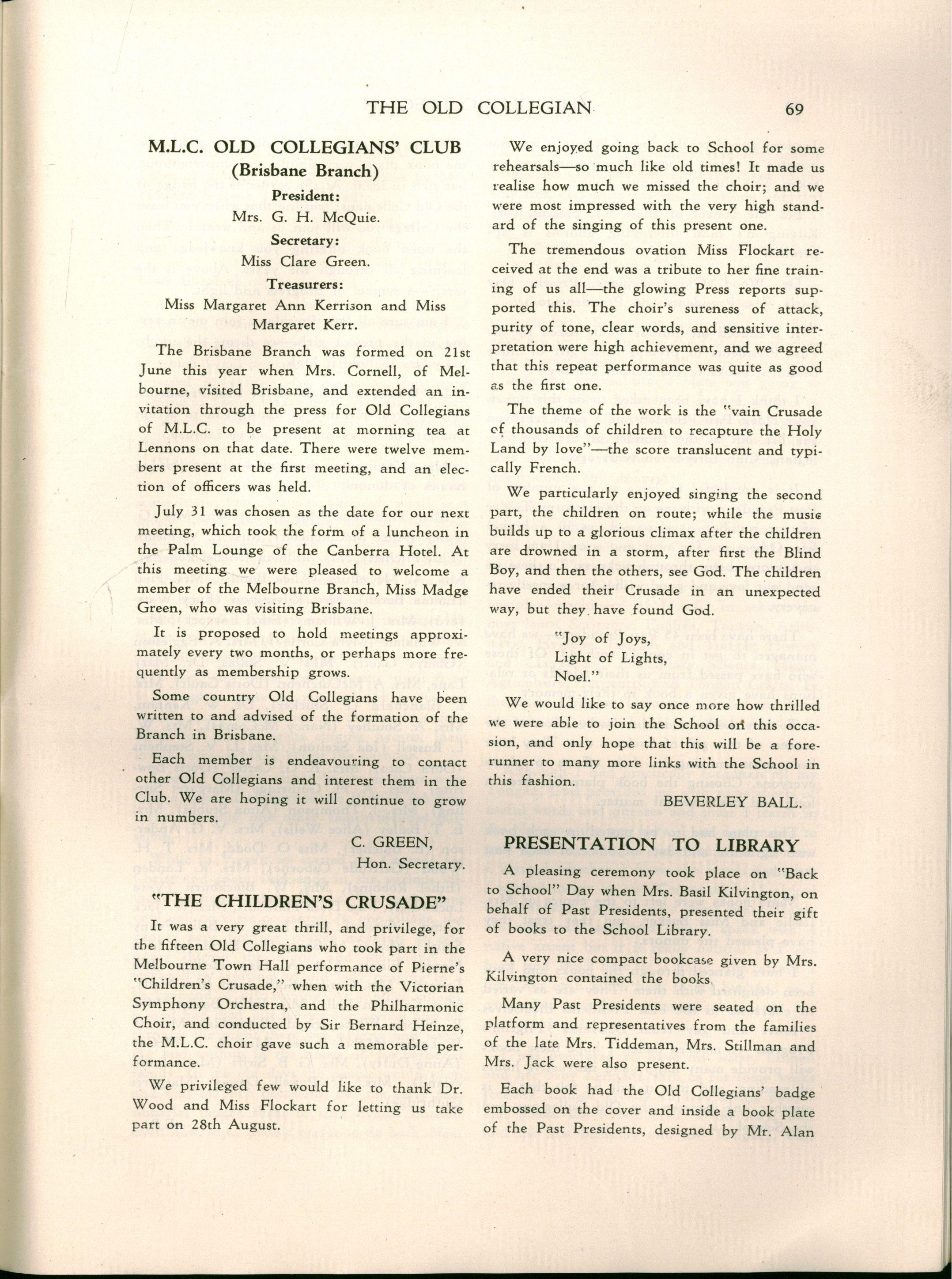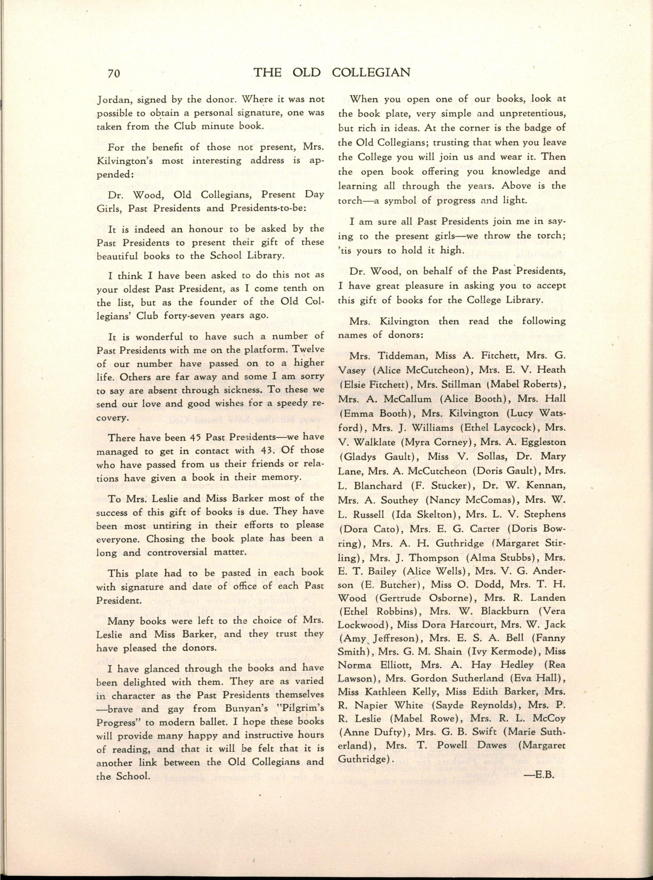 For many years she was a loyal member of the O.C. Club and Council, and was interested in the founding of the Margaret Tiddeman Scholarship