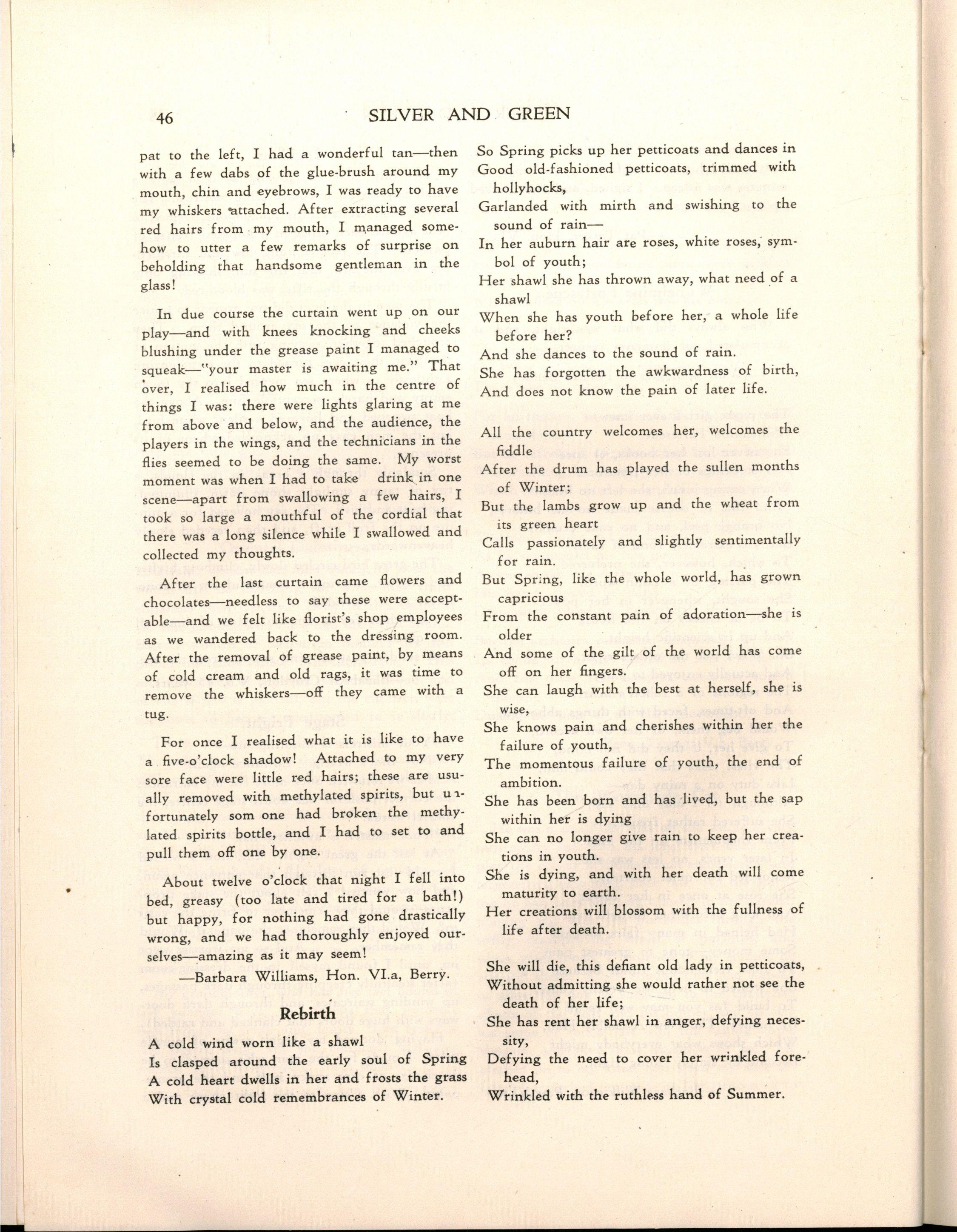 Tuesday, 24th "The play's the thing," was the general conclusion following successful performances of scenes from "Macbeth" and "Richard II," to commemorate Shakespeare Day