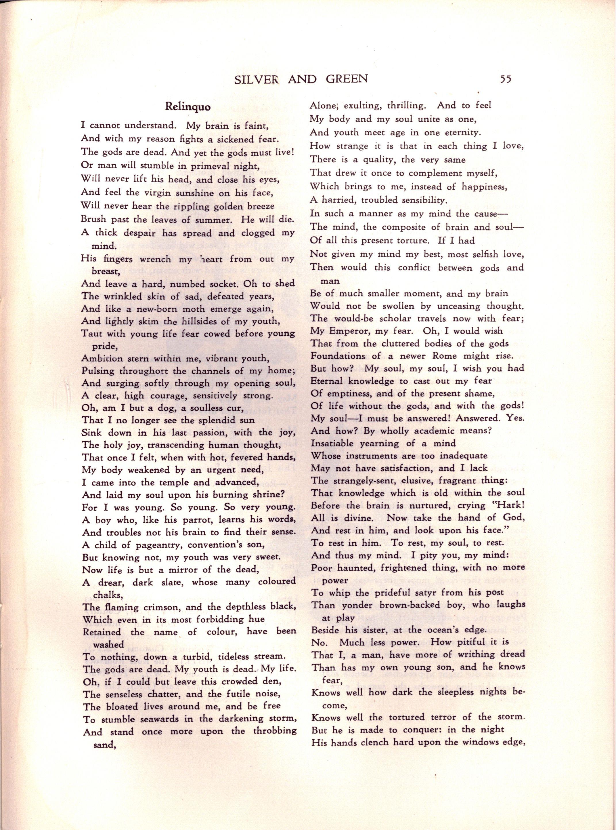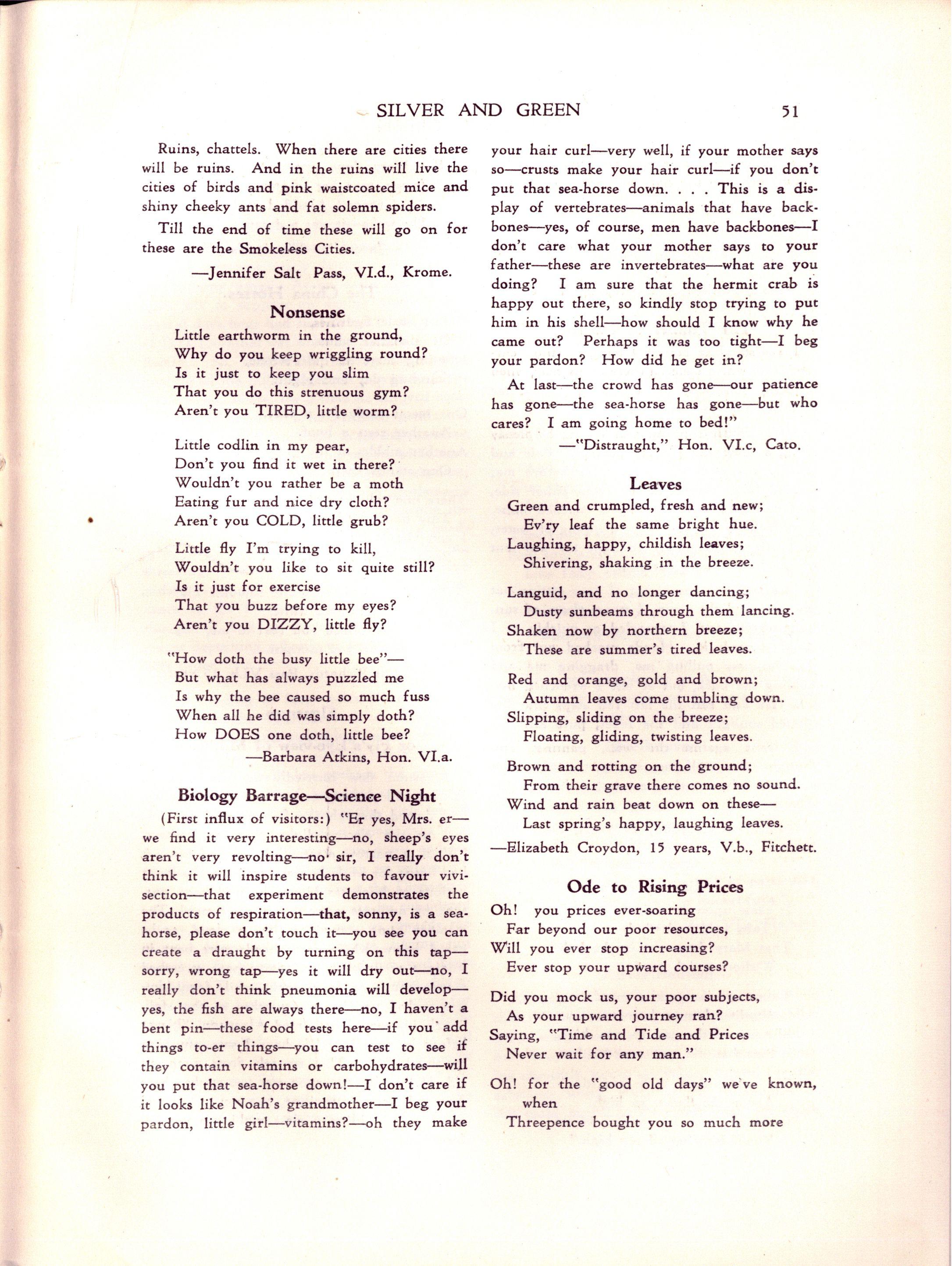 Susie Lipton, Associate Prefect, Commonwealth Scholarship, Queen's College Exhibition, Co-Editor "Silver and Green," U.N.A Committee, Debating Society