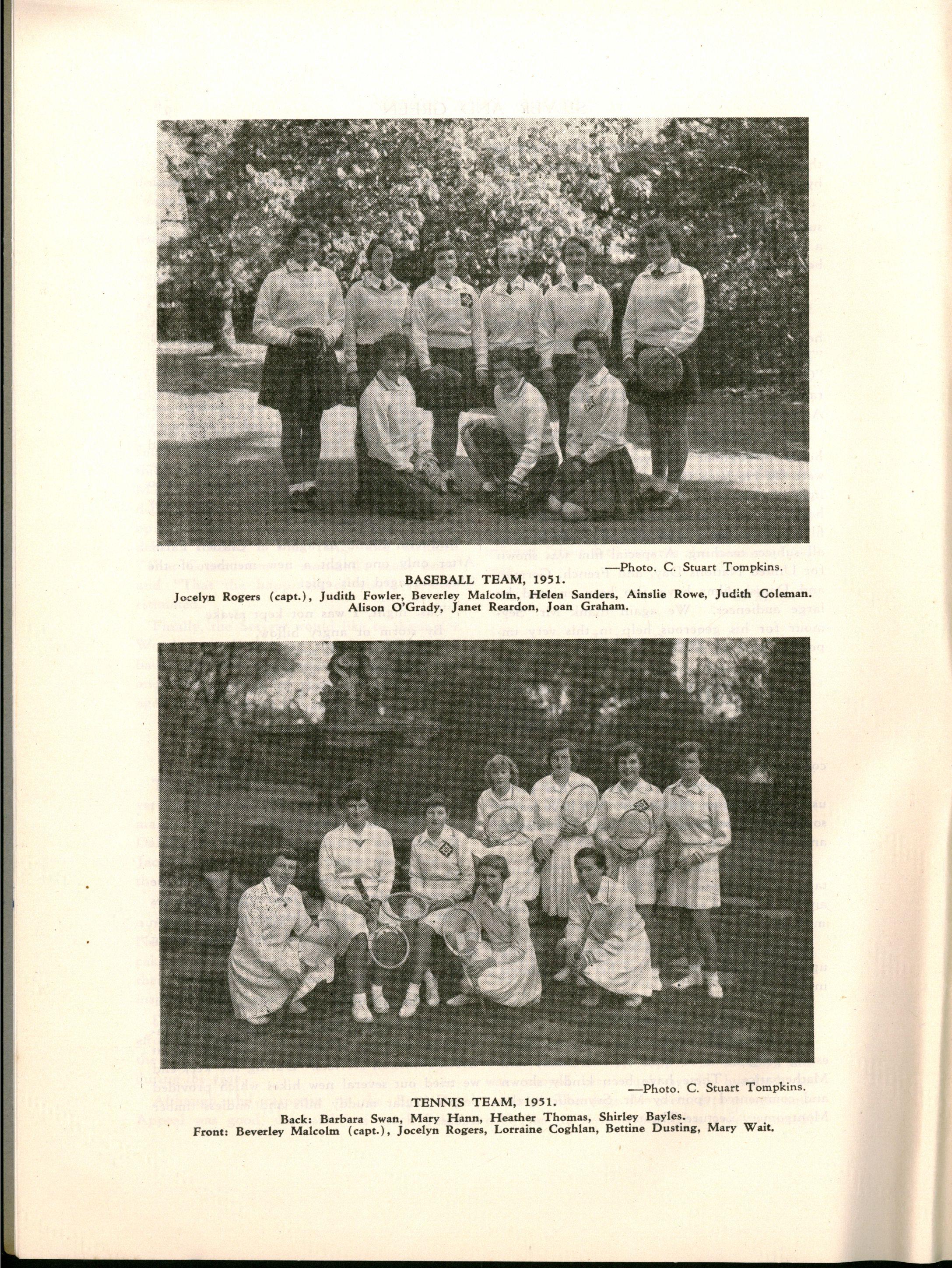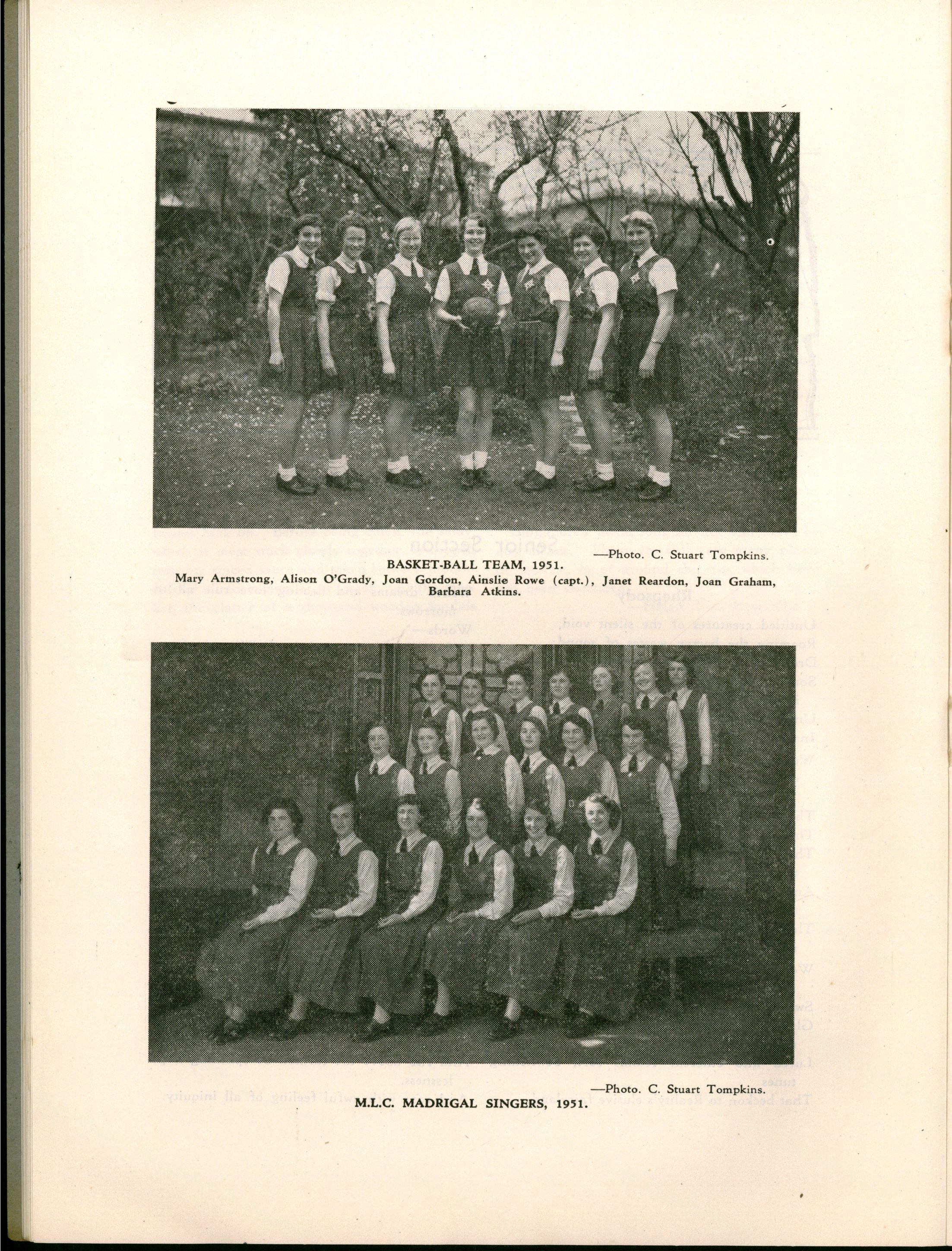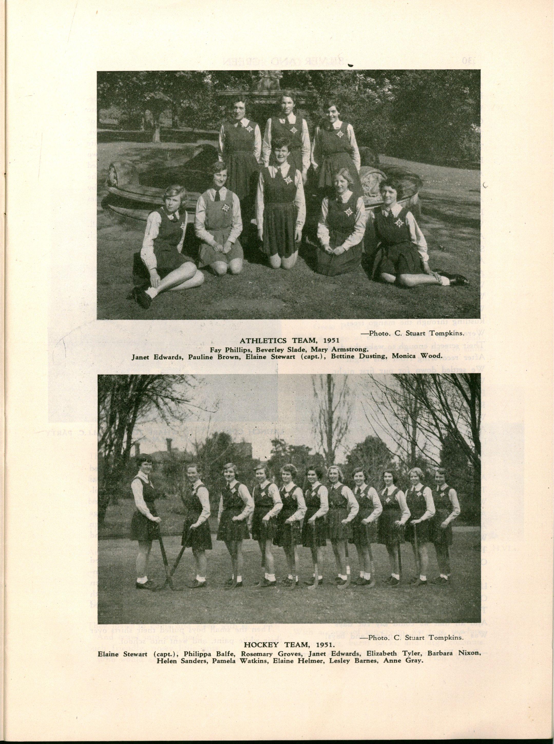 Last year we regained our pre-war status, and sent a Victorian team of 4 girls to N.S.W. for an interstate match, and also the final of the Australian Championship. Victoria was victorious A tour arranged for New Zealand unfortunately was postponed owing to illness But as you can see we have possibilities of interDominion tours for those who attain the required standard