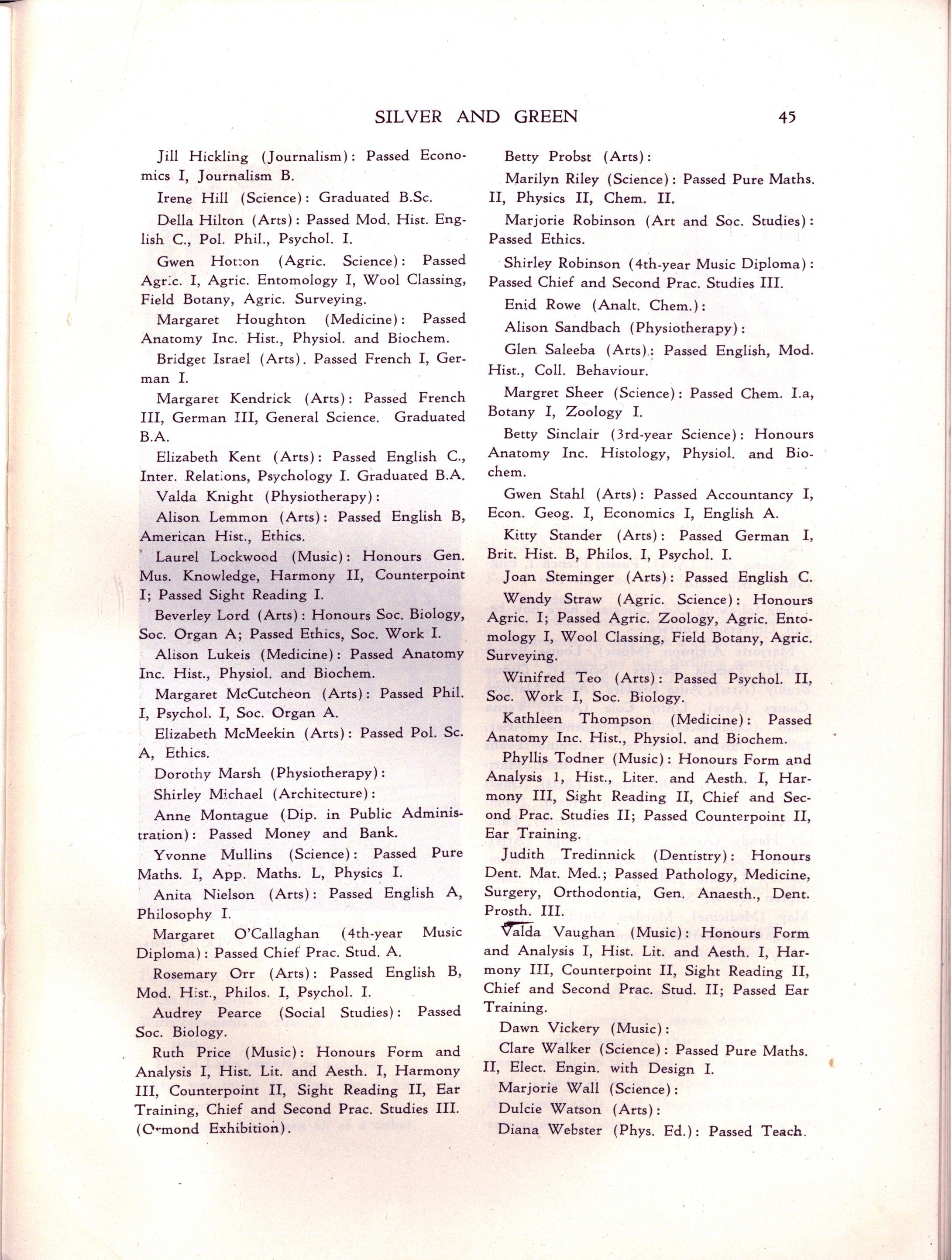 Lillian Duncan, Prefect, Commonwealth Scholarship, Secondary Studentship, Life-saving representative, Vice-President of S.C.M., Secretary of Camera Club