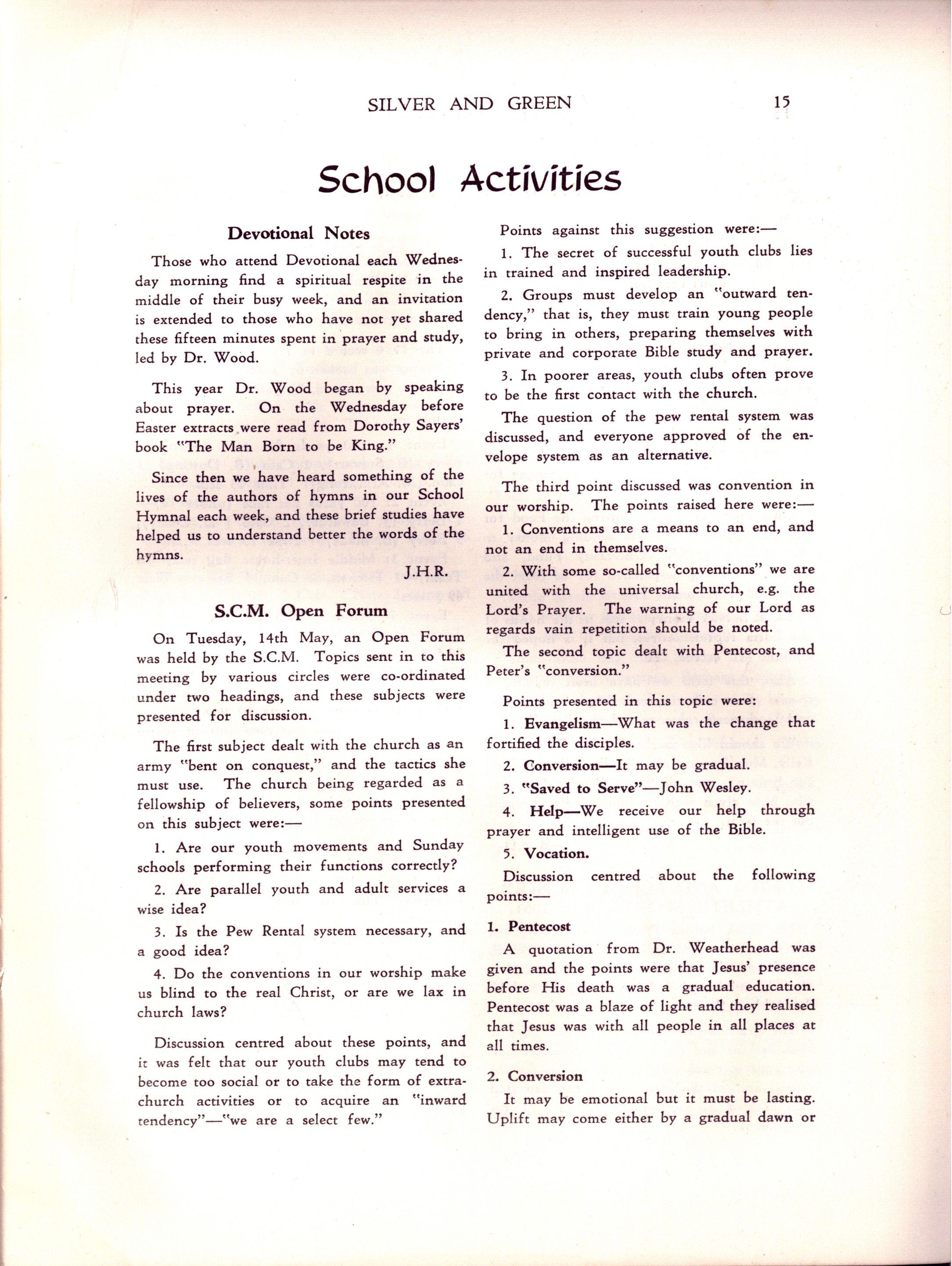 Tuesday, 20th—The School Communion Service was held at the Auburn Methodist Church.