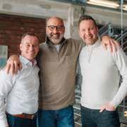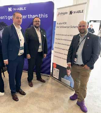 (v. l.) Arne Westphal und Sascha Shabestari (Infinigate) brauchen demnächst auch lila Sneakers wie Francesco Dibartolo (n-able).