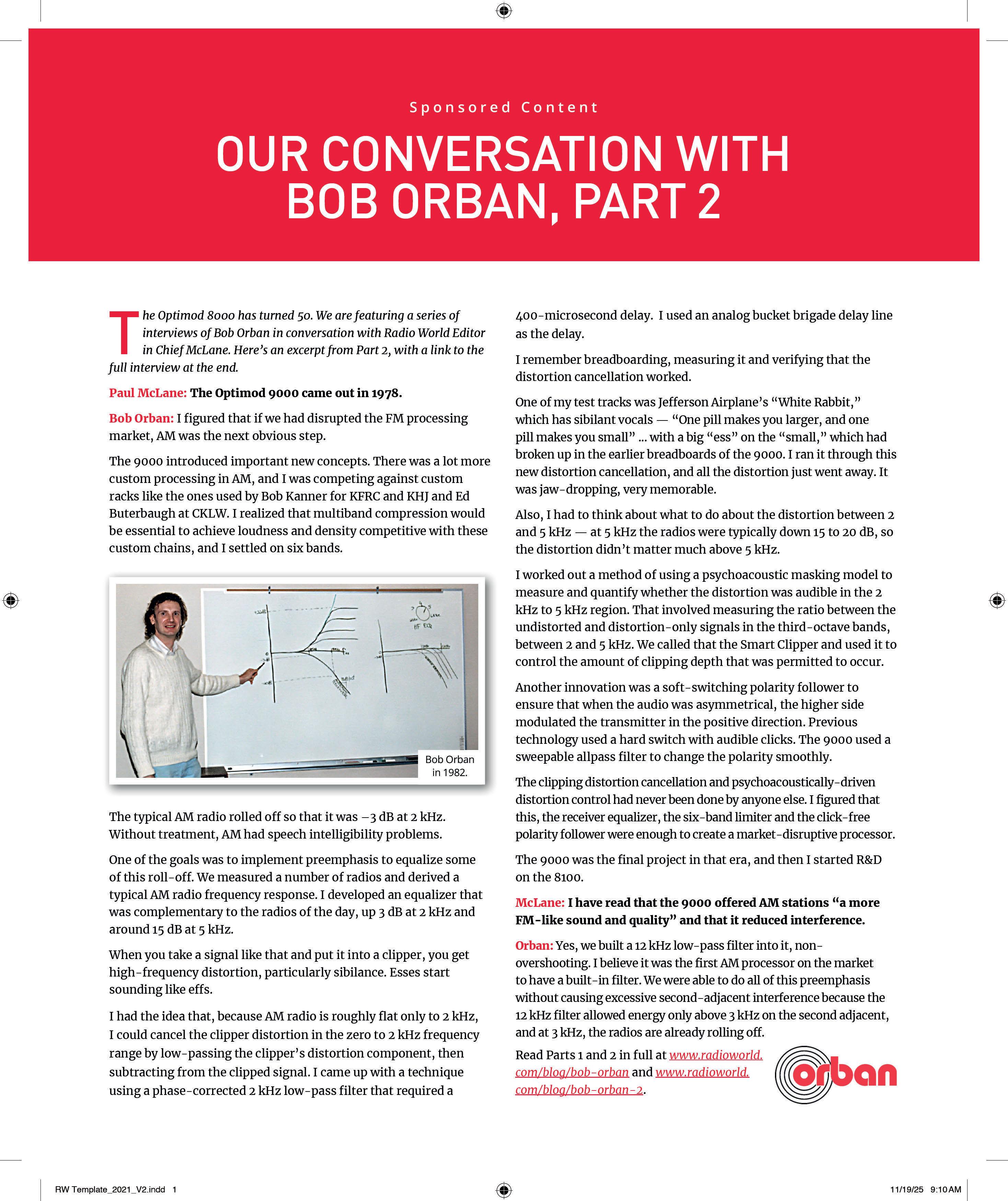 Mark Persons’ article about Shine 800 AM recalls the summer evening I caught PJB under the headphones on a Sony SRF-A100 AM stereo radio forced into the MagnavoxMotorola-Harris mode. That superb and now long-defunct little portable radio does not need to see a stereo pilot to decode phase-dependent AM stereo.