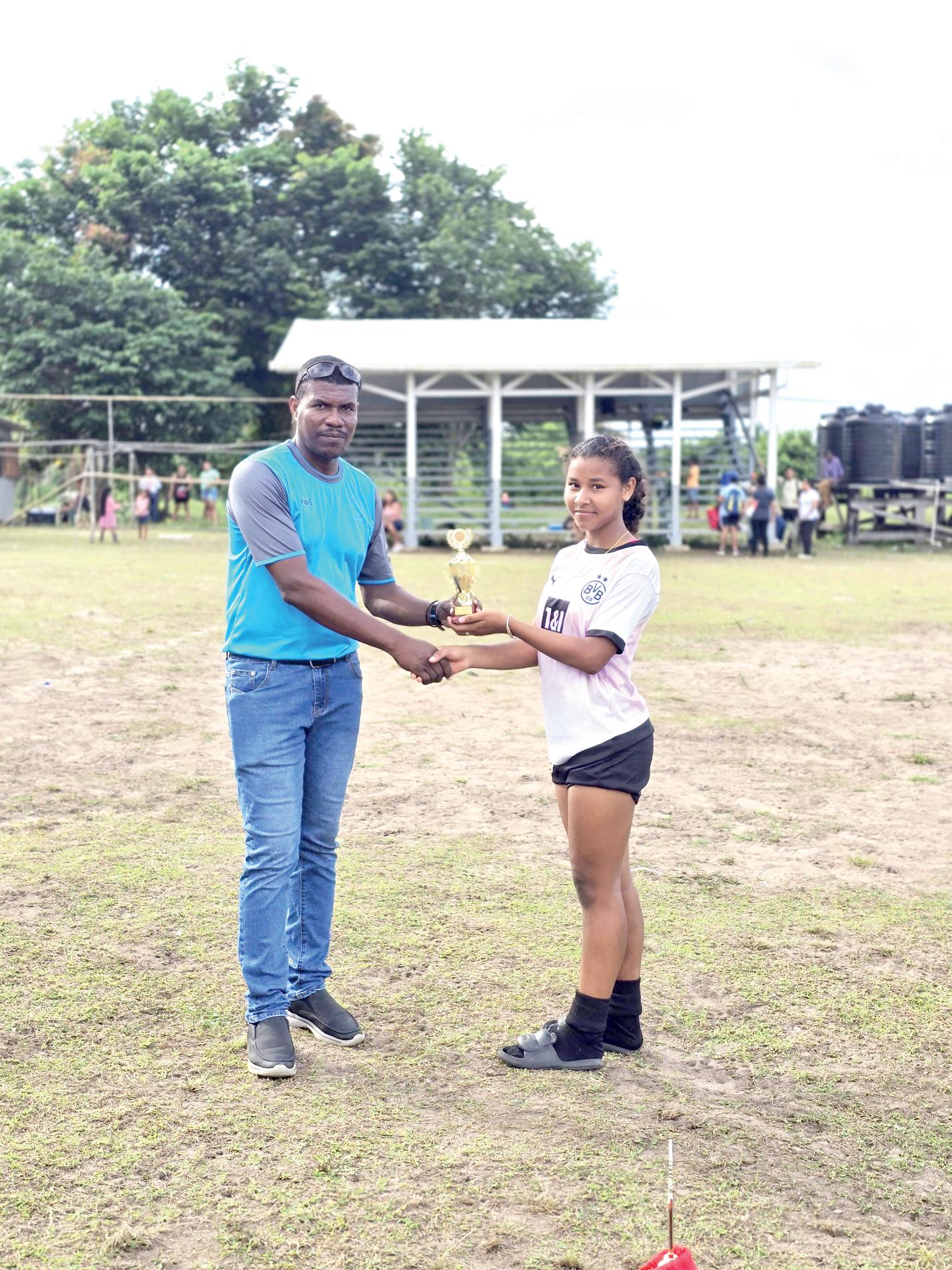 Veronica Chatra (right) secures Most Goal trophy in Region 2