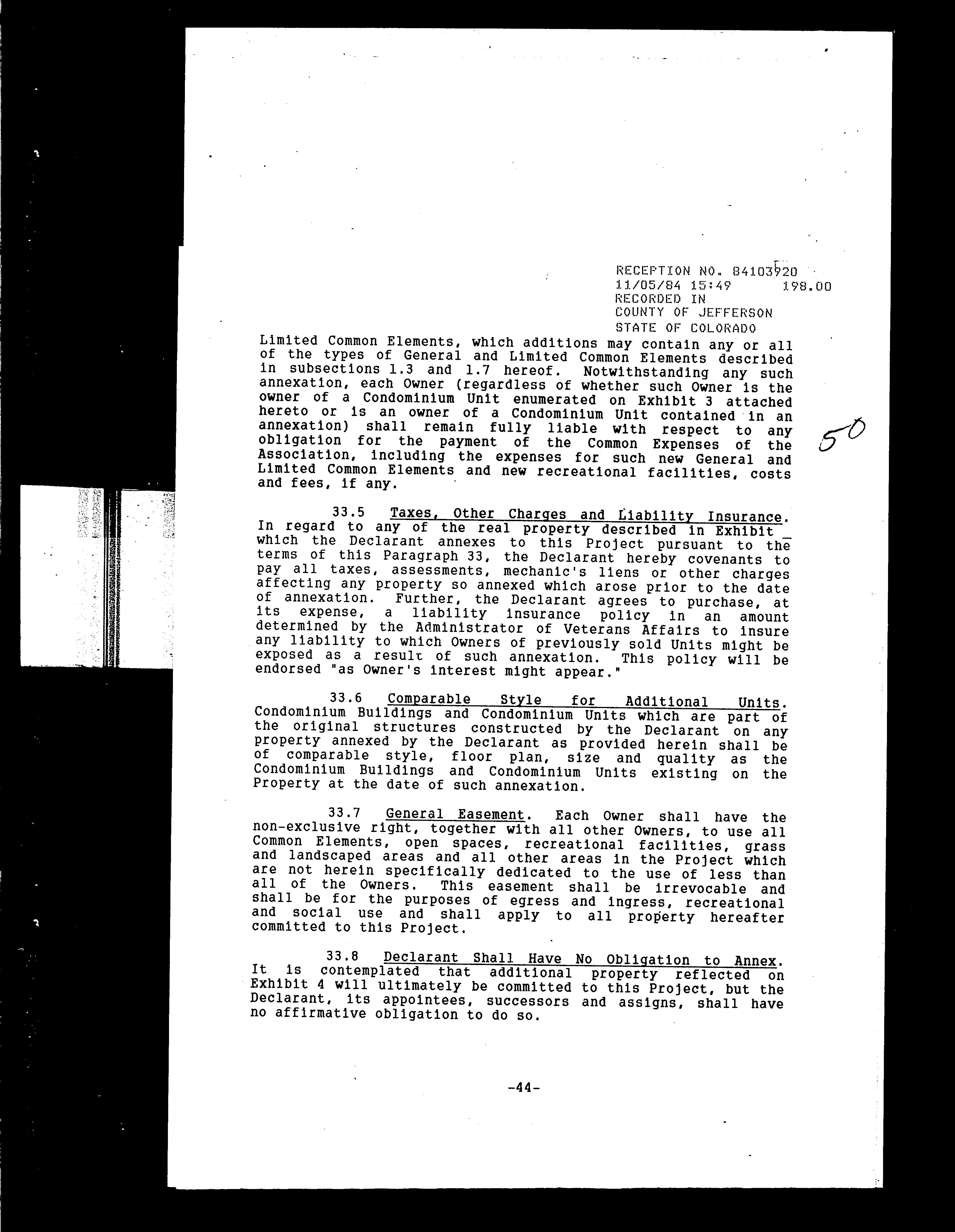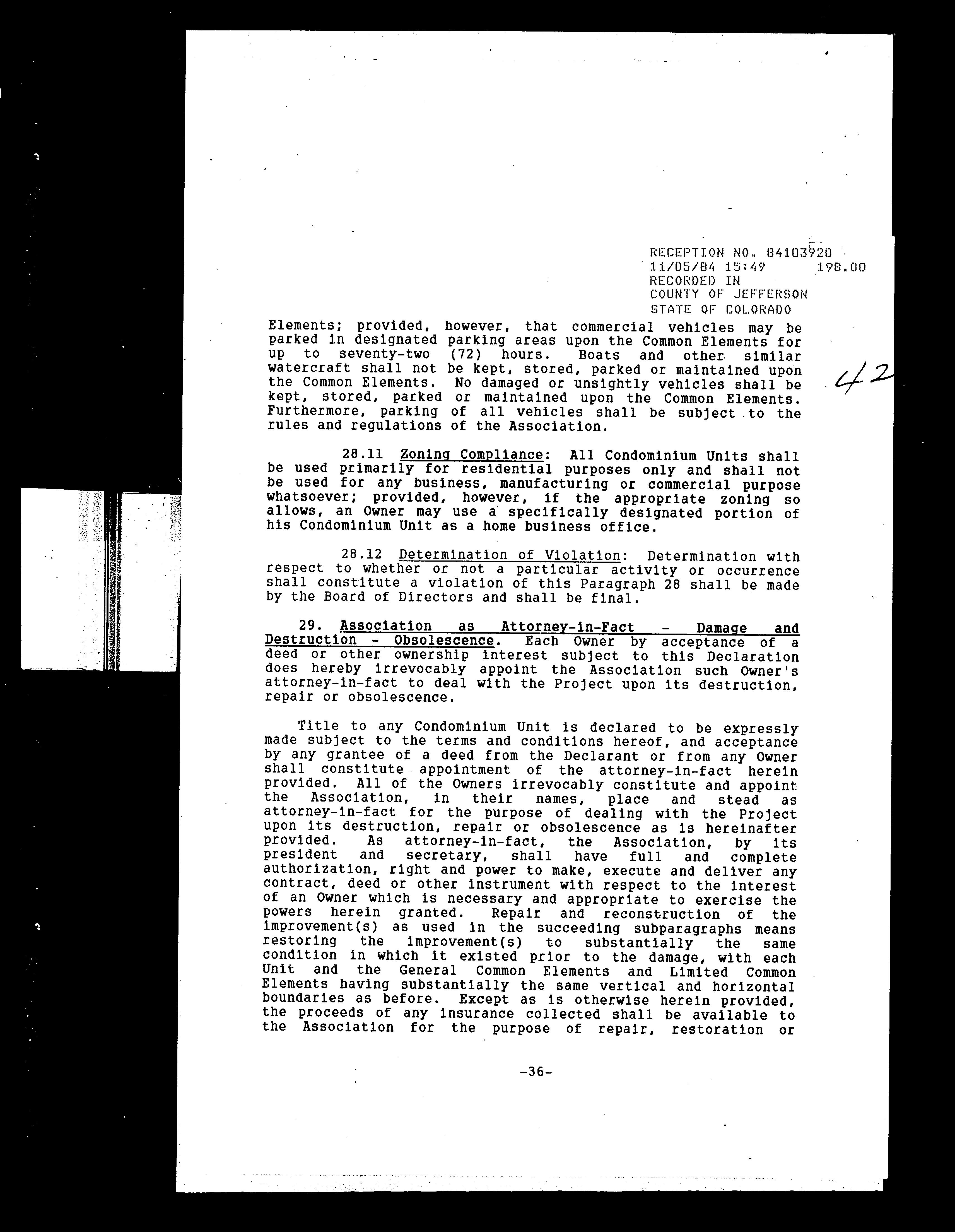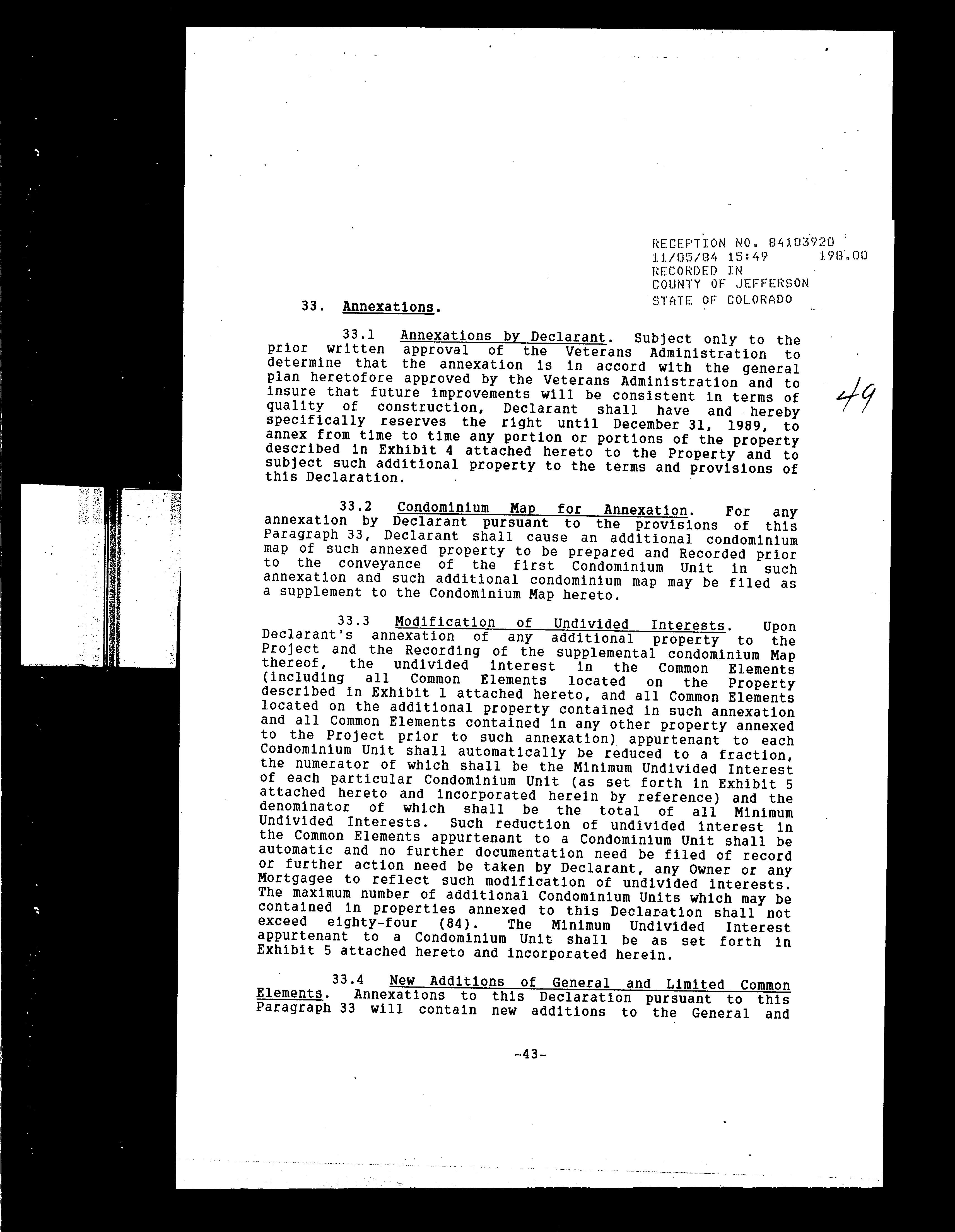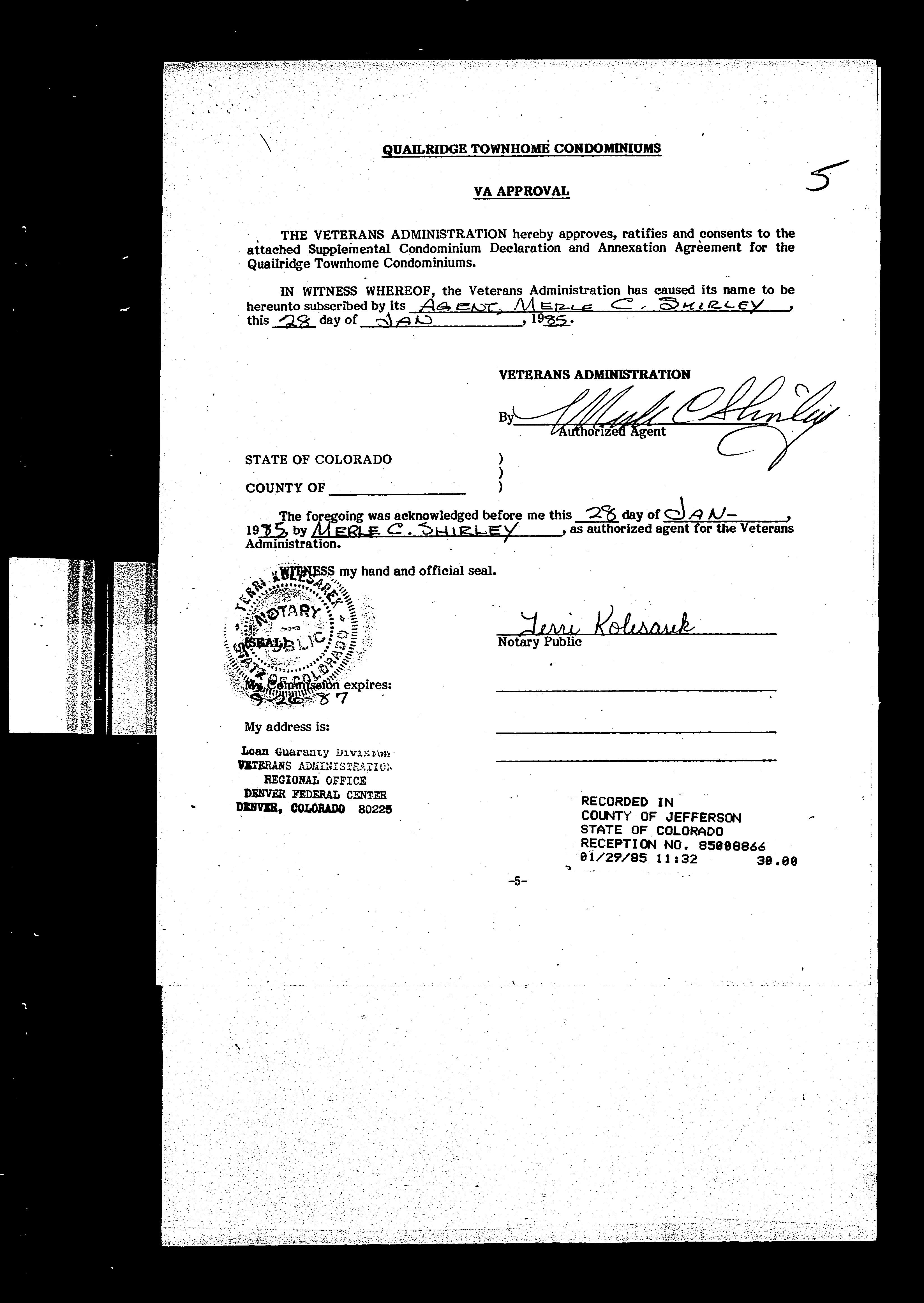 Legal Description : Section 33 Township 03 Range 69 Qtr Sw Subdivisioncd 617800 Subdivisionname Quailridge Townhome Condos Ph Iii 2nd Supp Block 001 Lot 0105 Tract