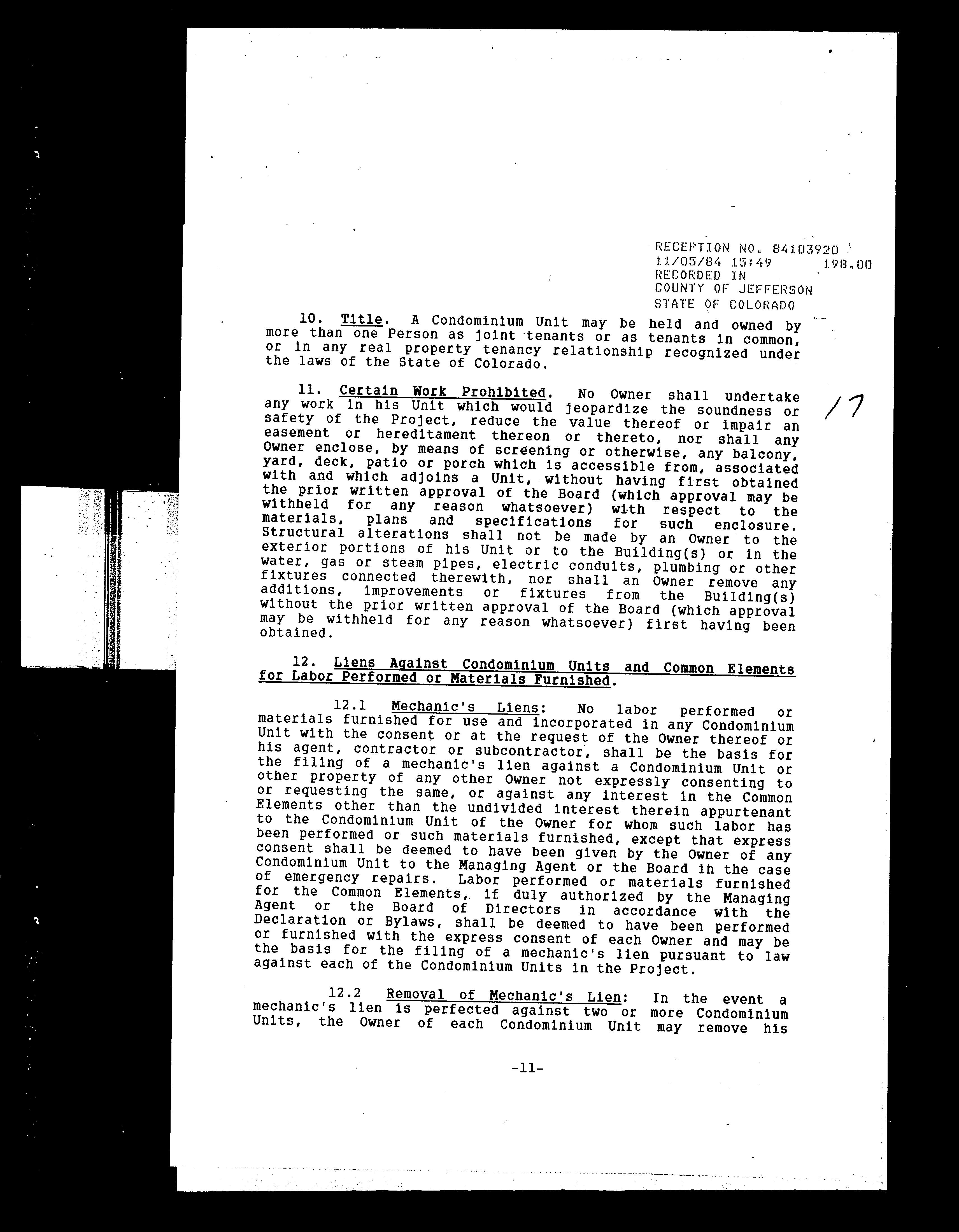 Mailing Address : 11133 W 17th Ave Apt 105, Lakewood CO 80215-2785 C041