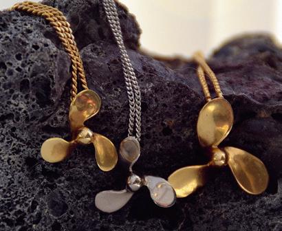 Jag har med hjälp av en guldsmed tagit fram en propellermodell i rödguld, vitguld och silver för de som arbetar i maskin till sjöss. Ingraverat namn enligt vad beställaren vill ha, på det ena bladets baksida, och personnumret ingraverat på ett annat blad. I mitten på hubben blir ett löpnummer ingraverat. Guldpriserna är väldigt varierande nu, därför är det svårt att sätta ett pris som blir aktuellt här.