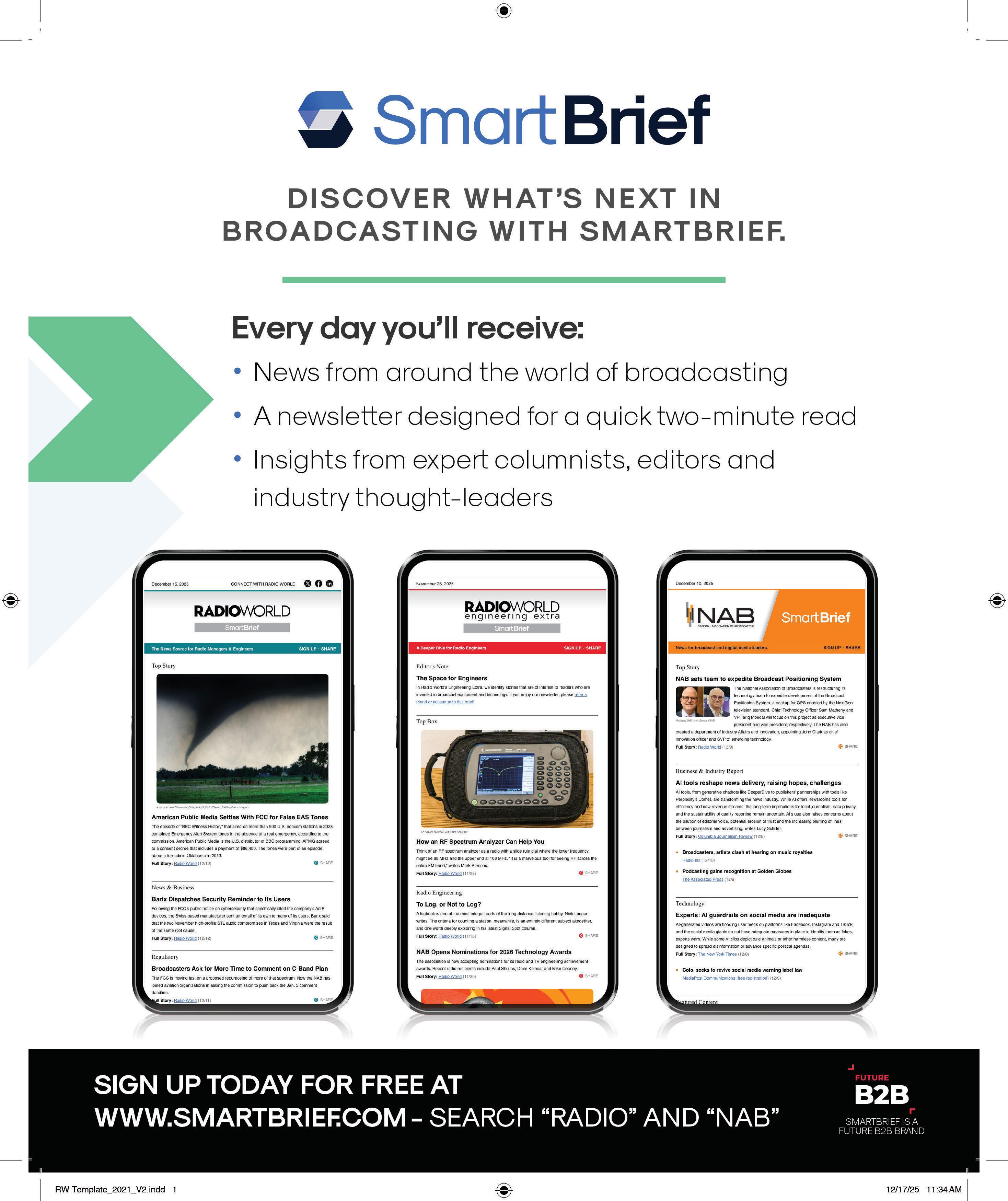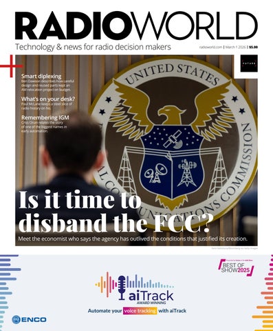 Radio World (ISSN 0274-8541) is published bi-weekly by Future B2B. 130 W. 42nd St, 7th Floor, NY NY 10036.