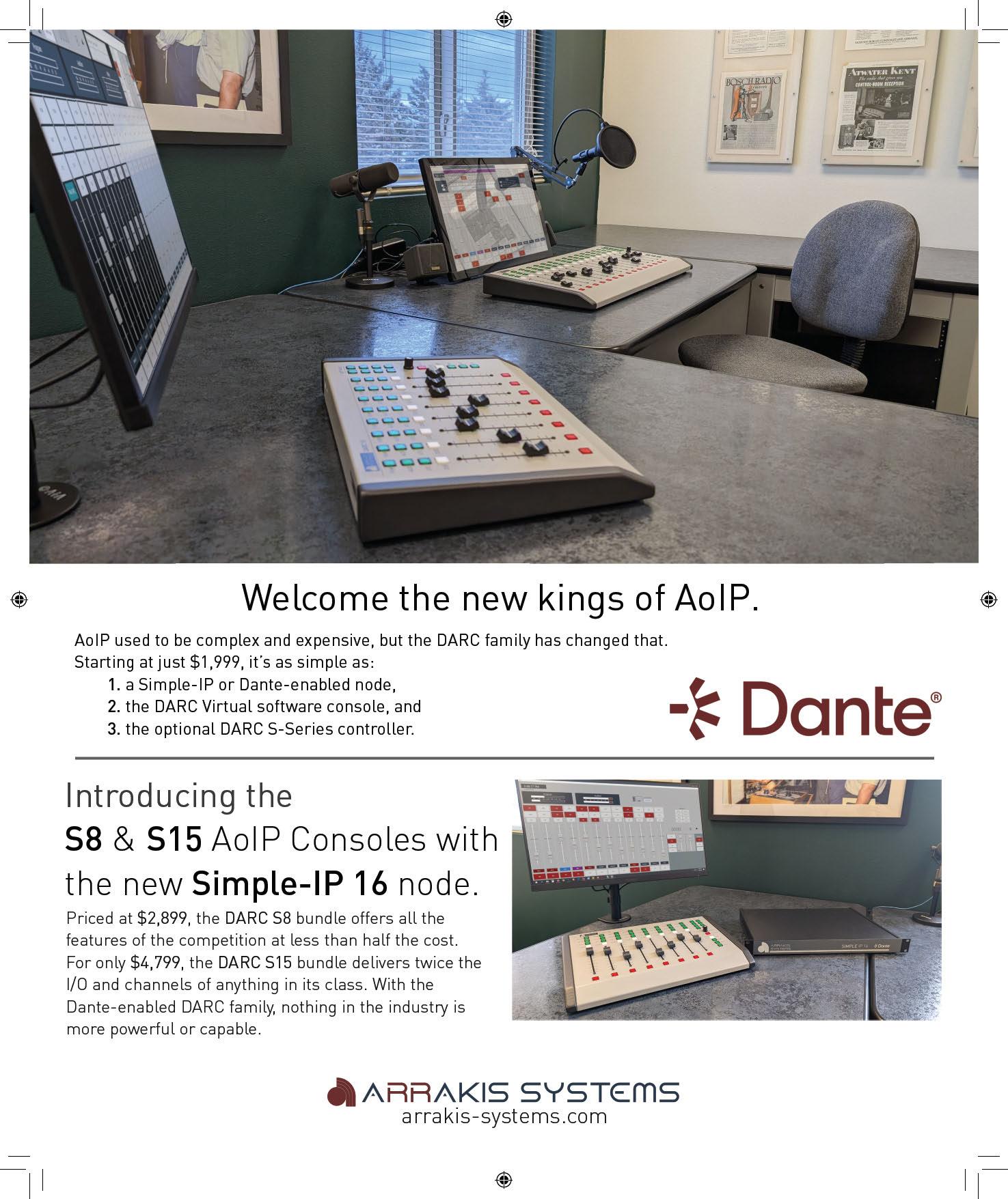 Now WheatNet IP compatible: Audioarts DMX console system including mix engine with local I/O, five-port Ethernet switch and automation plugin for a fully self-contained AoIP system in one. Ideal for smaller facilities or for budget studios that serve as backup to a main.