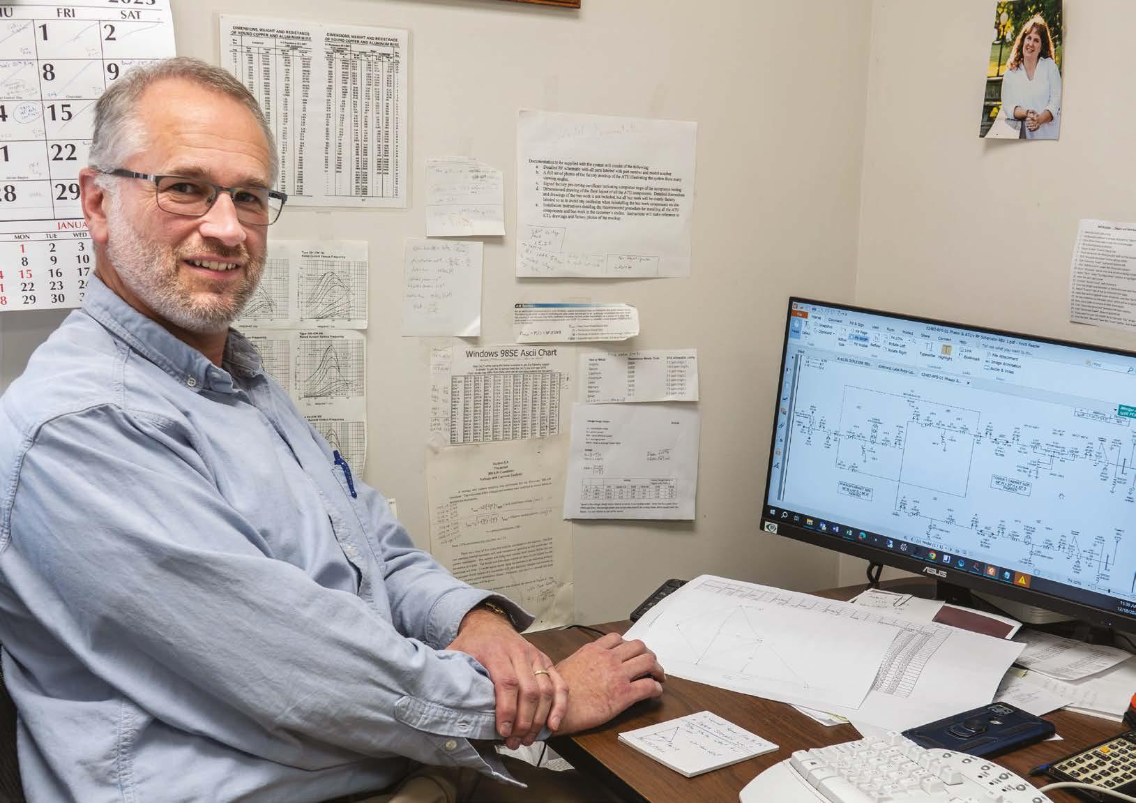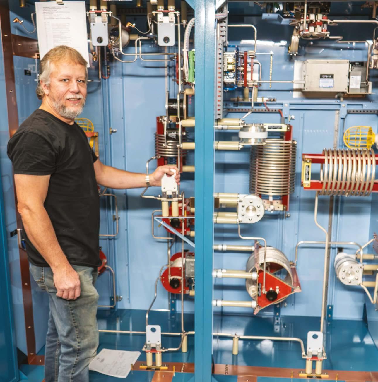 a customer request comes in. That is where Senior Staff Engineer Bobby Cox fits into the equation, designing RF circuitry to create an FCC-required signal pattern for an AM directional antenna. He has been doing that since 1994 and holds a Ph.D. in electrical engineering.