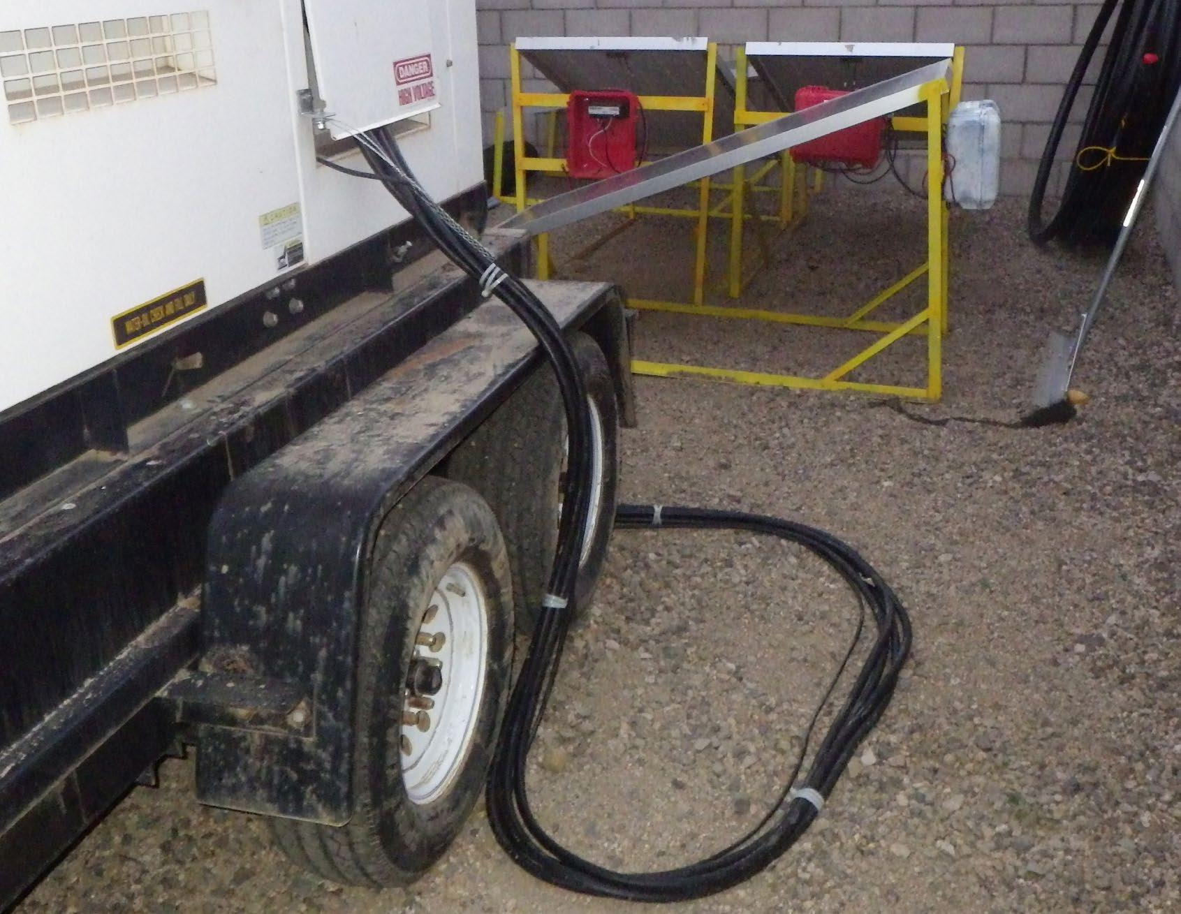 Above Power and control cables are used to connect the trailer-mounted generator.