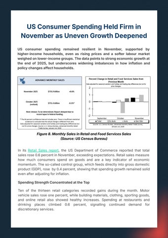 In its Retail Sales report, the US Department of Commerce reported that total salesrose0.6percentinNovember,exceedingexpectations.Retailsalesmeasure how much consumers spend on goods and are a key indicator of economic momentum.Theso-calledcontrolgroup,whichfeedsdirectlyintogrossdomestic productGDP,rose by0.4percent,showingthatspendinggrowthremainedsolid evenafteradjustingforinflation.
