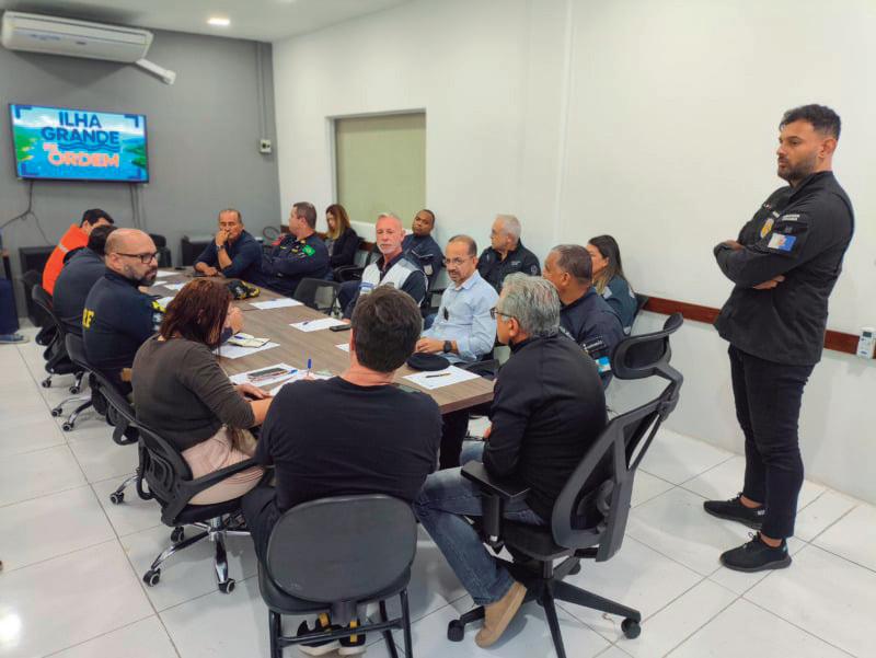 vida de moradores e visitantes”, afirmou o secretário-executivo da Ilha Grande, Carlos Kazuo. Durante o balanço, foram apresentadas as quatro frentes de atuação do programa: fiscalização comercial e tributária, fiscalização ambiental, controle do cais e da logística, e ordenamento do uso do espaço público. As forças de segurança que atuam no município participaram da reunião. Entre as ações destacadas, estão as vistorias em bares, pousadas e agências de turismo, aplicação de multas e embargos ambientais, remoção de poitas irregulares, ordenamento de taxi boats, e apreensão de estruturas e embarcações em situação irregular. A Capitania dos Portos definiu áreas específicas para embarque e desembarque de passageiros e iniciou a remoção de poitas irregulares, com o objetivo de preservar áreas de nado livre e garantir mais segurança a banhistas e embarcações. Foto: Divulgação Iniciativa reúne diversos órgãos públicos com o objetivo de promover o reordenamento econômico e territorial da Ilha Grande