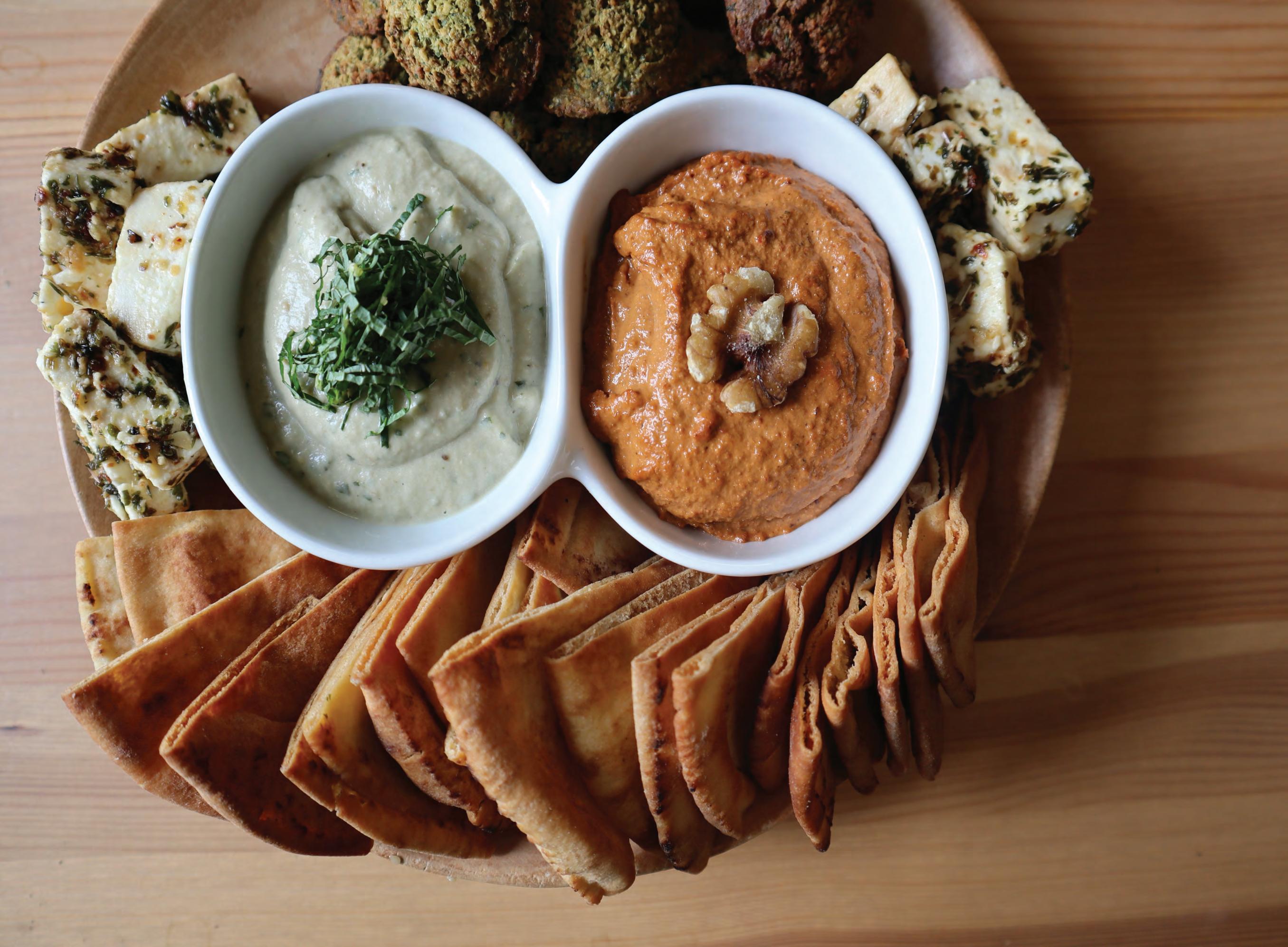 A mild Brie, a soft, cow’s milk cheese, appeals to a large audience. Four Fat Fowl’s St. Stephen Triple Cream; Chaseholm Farm’s Nimbus; and Le Fromager (imported) are a couple of options.
