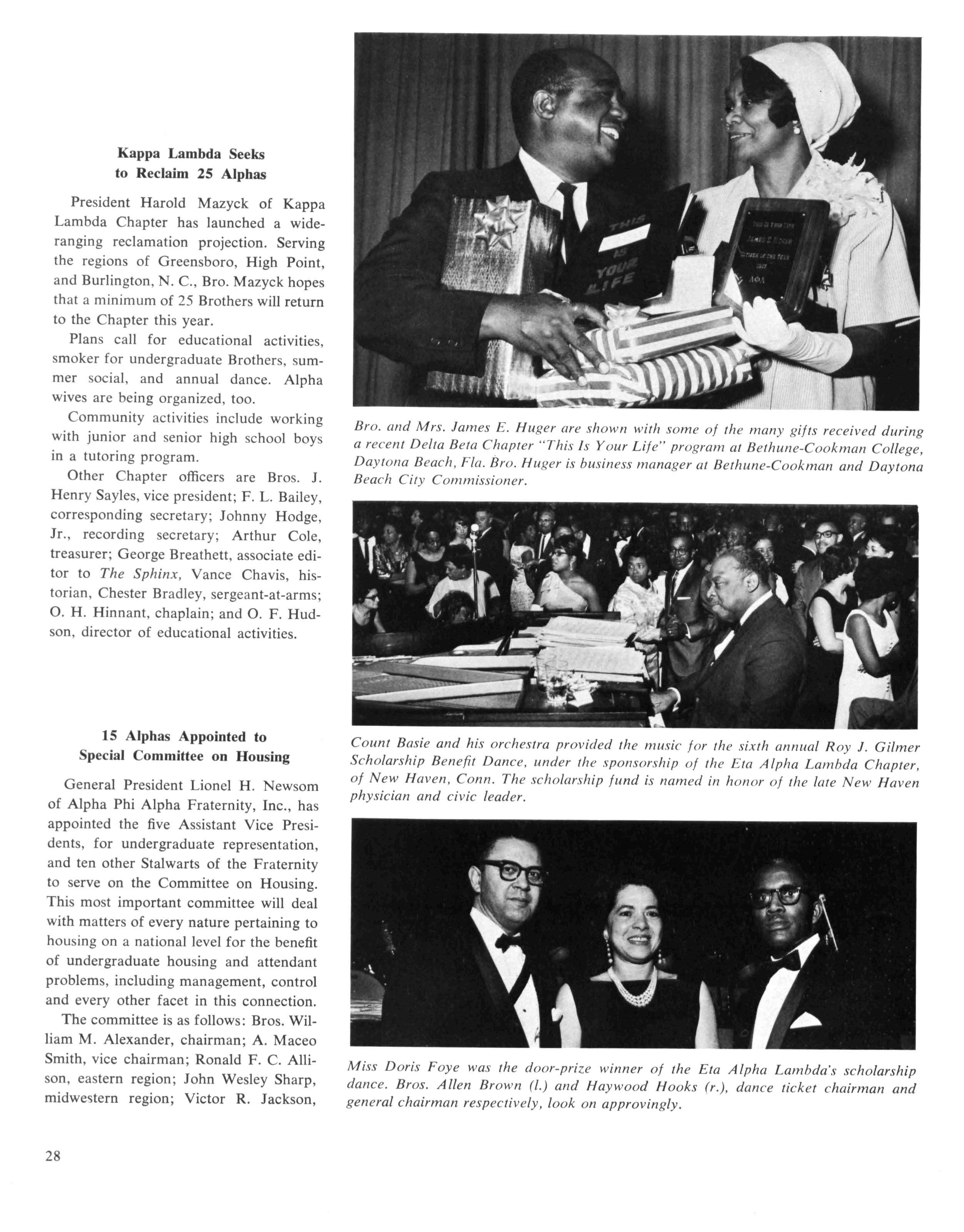 Bro. and Mrs. James E. Huger are shown with some of the many gifts received during arecent Delta Beta Chapter "This Is Your Life" program at Bethune-Cookman College, Daytona Beach, Fla.Bro. Huger isbusiness manager at Bethune-Cookman and Daytona Beach City Commissioner.