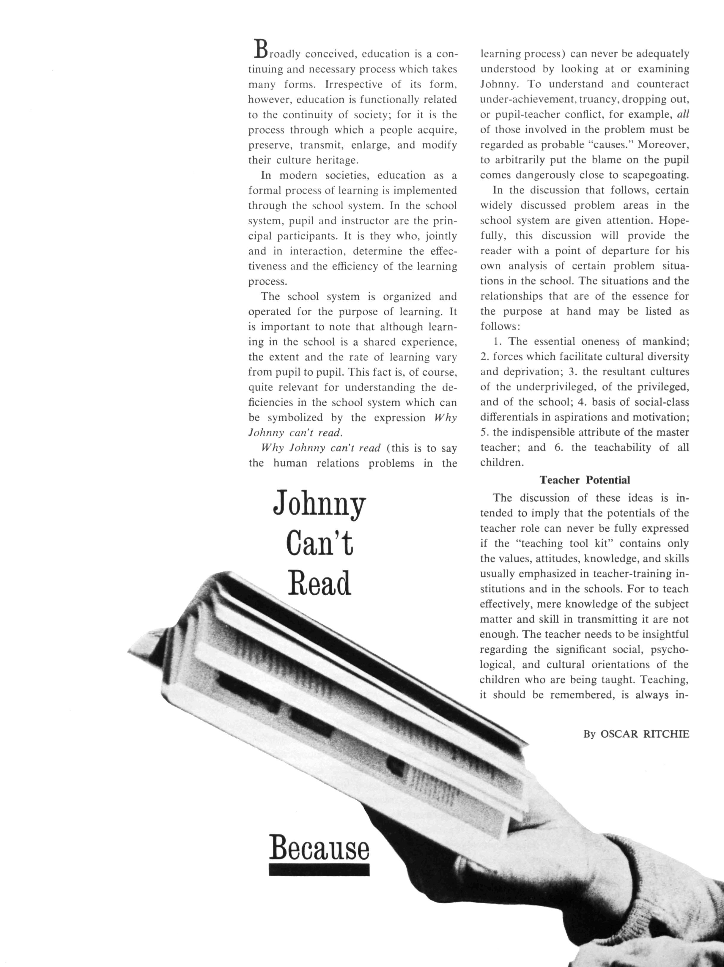 'Johnny Can't Read' Because / Bro Oscar W Ritchie 9