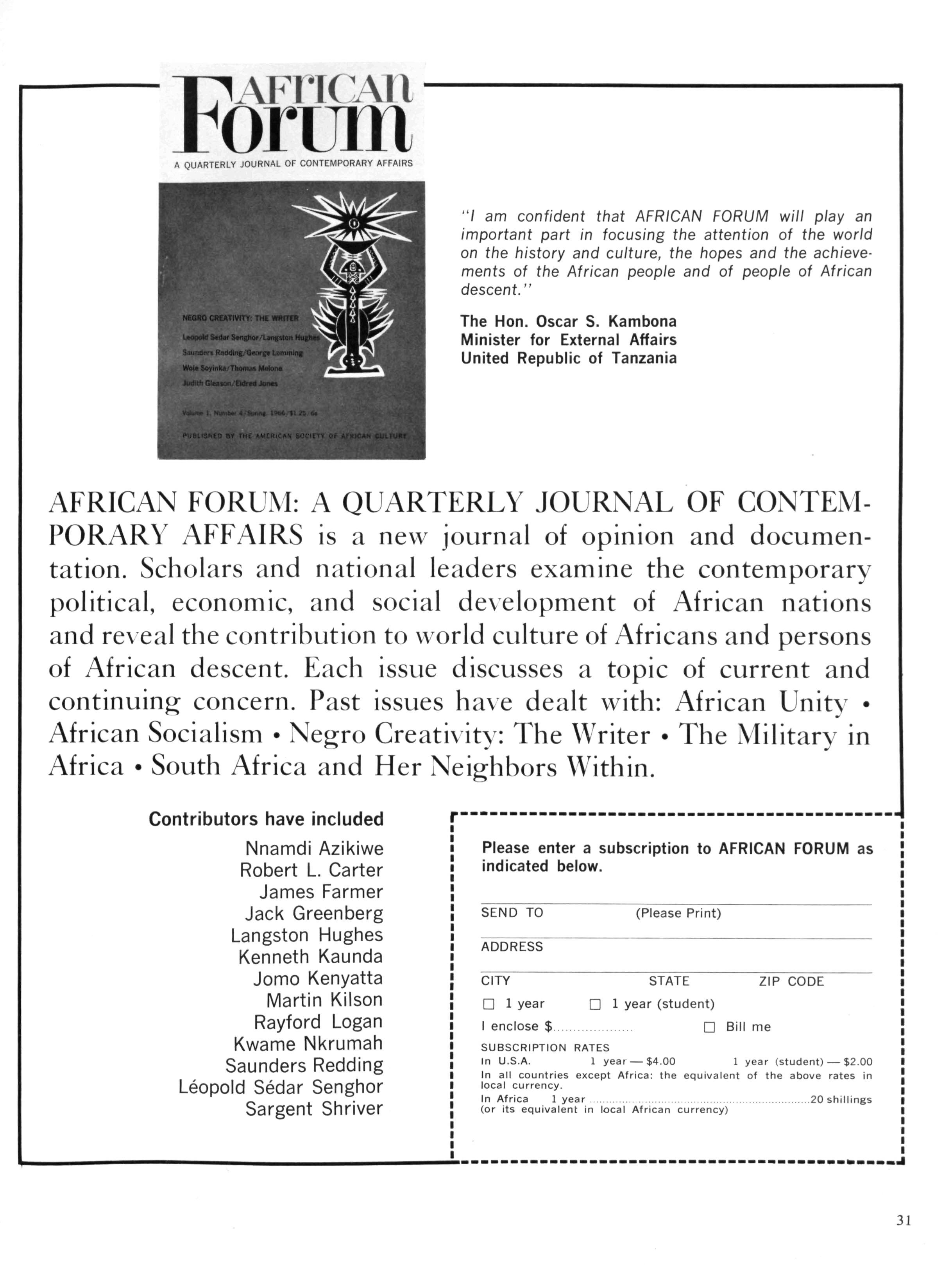 AFRICAN FORUM: A QUARTERLY JOURNAL OF CONTEM-