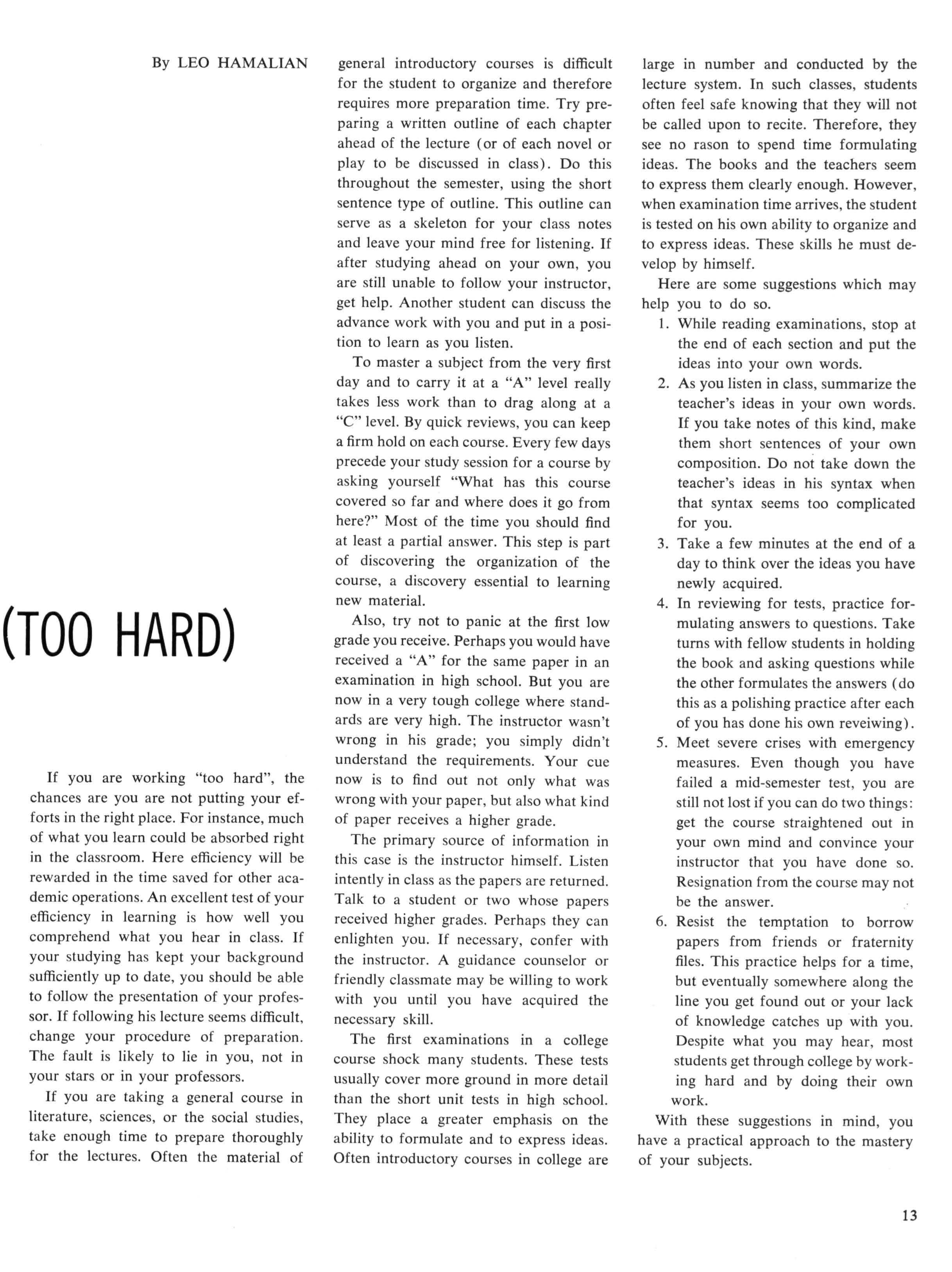 How to Succeed in School Without Trying (Too Hard)/Leo Hamalian. 12