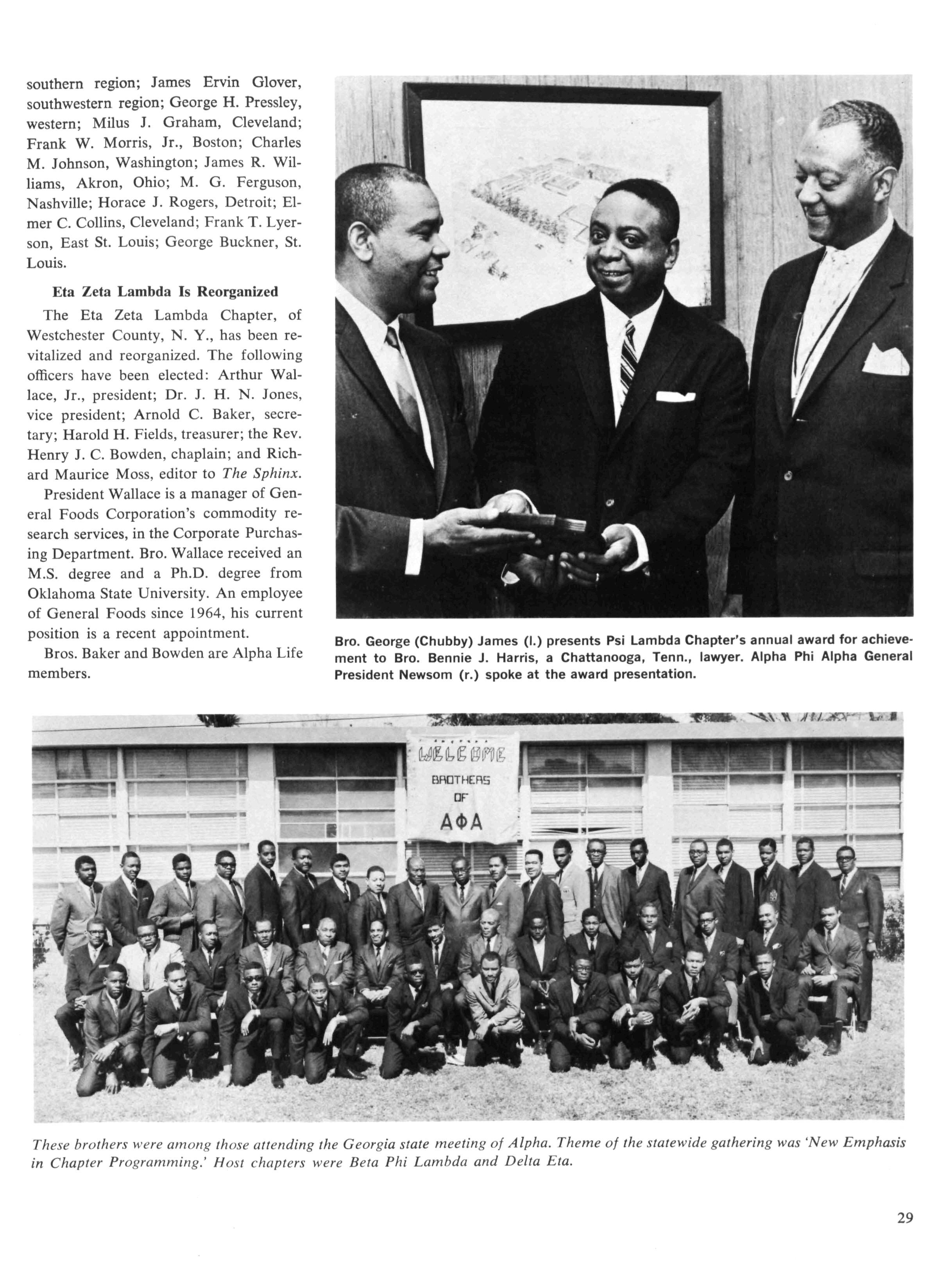 These brothers were among those attending the Georgia state meeting of Alpha. Theme of thestatewide gathering was 'New Emphasis in Chapter Programming.' Host chapters were Beta Phi Lambda and Delta Eta.