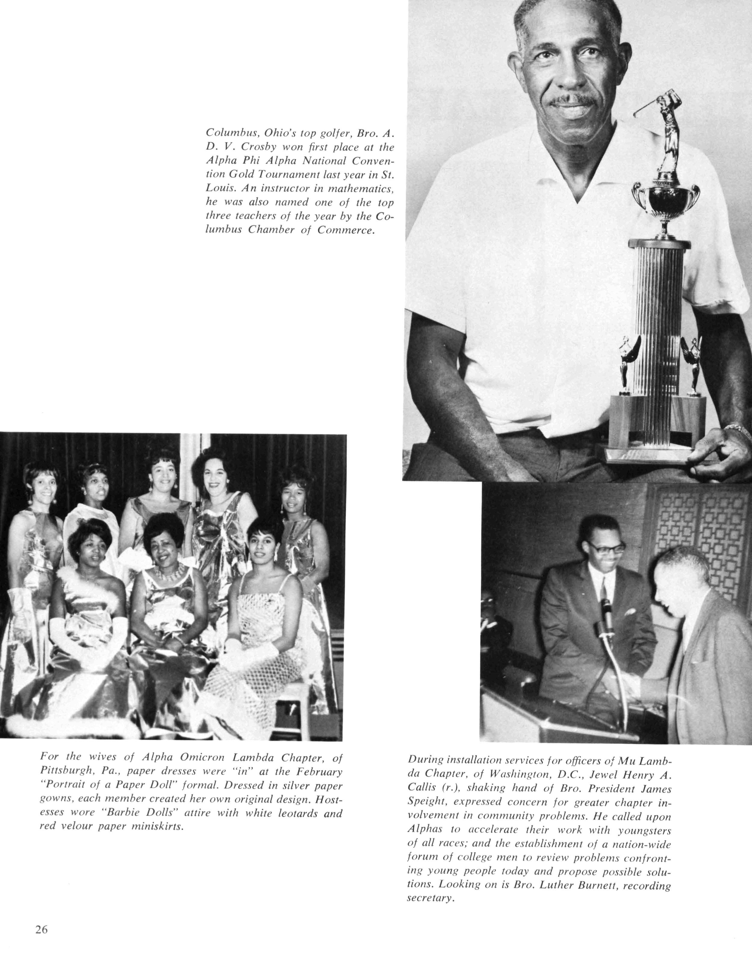 Columbus, Ohio's top golfer, Bro. A. D. V. Crosby won first place at the Alpha Phi Alpha National Convention Cold Tournament lastyear in St. Louis. An instructor in mathematics, he was also named one of the top three teachers of the year by the Columbus Chamber of Commerce.