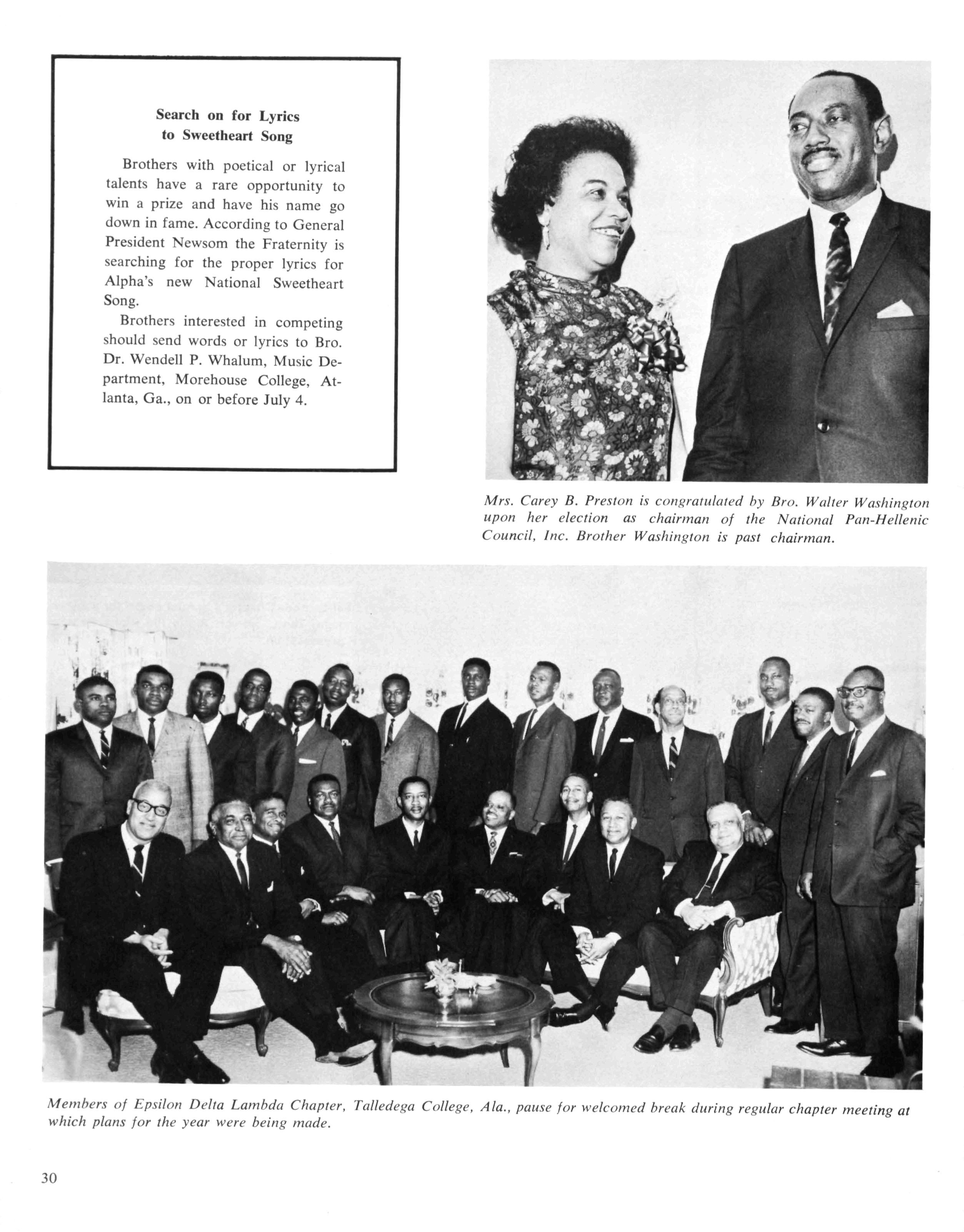 Brothers with poetical or lyrical talents have a rare opportunity to win a prize and have his name go down in fame According to General President Newsom the Fraternity is searching for the proper lyrics for Alpha's new National Sweetheart Song.