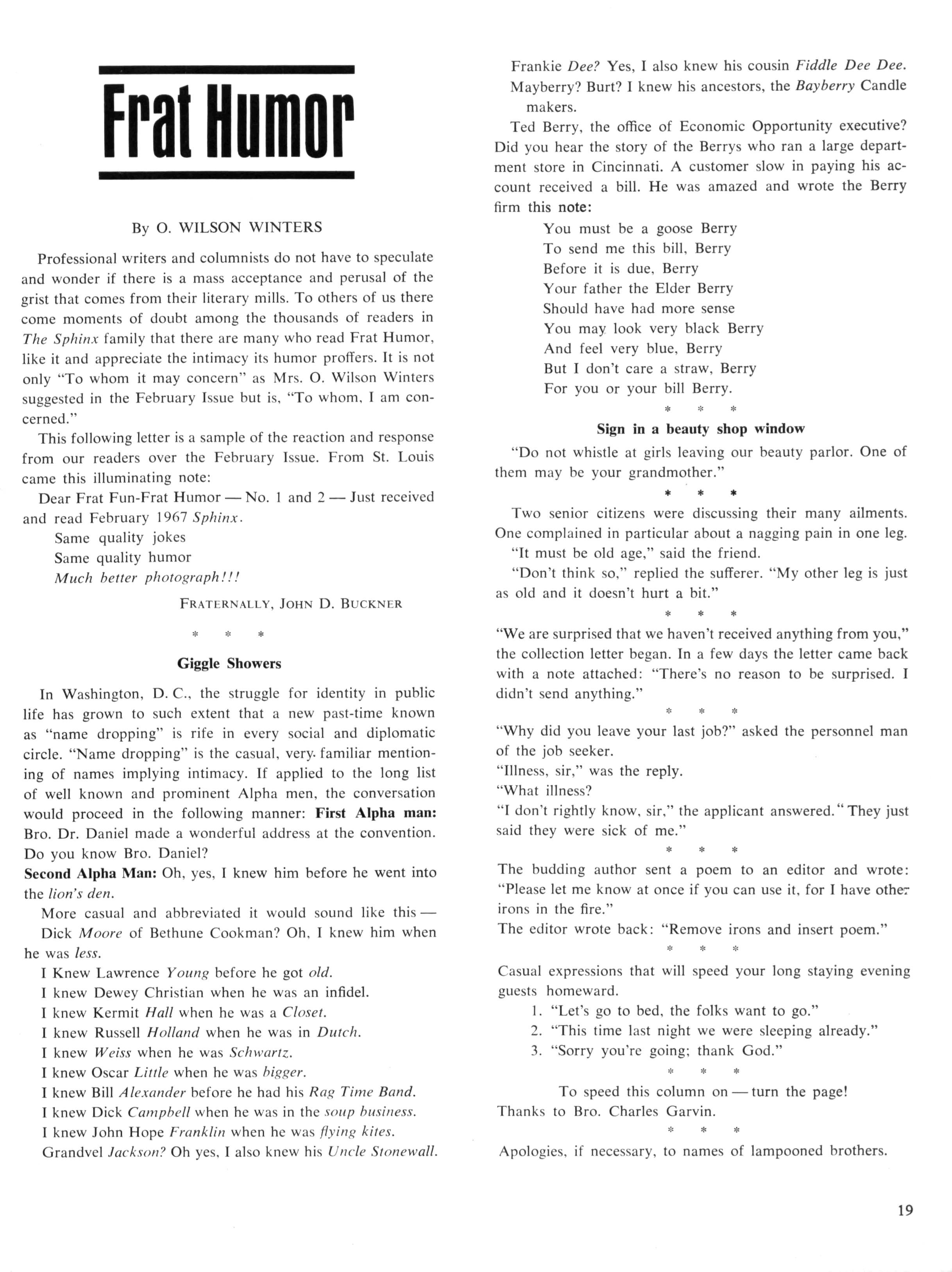 The Sphinx has been published continuously since 1914 Organizing Editor: Bro Raymond W Cannon Organizing General President: Bro Henry Lake Dickason