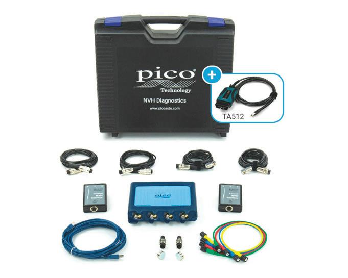 The PicoScope NVH Essentials Standard Kit from Pico Technology is a comprehensive package for testing and diagnosing the noise, vibration, and harshness of a vehicle. The kit is powered by the PicoScope 4425A and allows measurement on 3 axes with the option to measure vibration or sound on a single axis at an additional vehicle location. The addition of the Mongoose-Plus ISO/CAN 3 J2534 Lead (TA512) allows users to acquire engine and road speed signals.