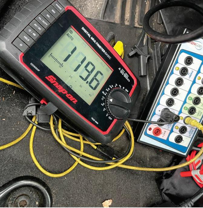 find the fault—voltage drop testing gave us more insight by allowing current to flow dynamically. However, on this fast-switching injector control circuit, the DVOM’s update rate was too slow to accurately capture voltage changes in voltage mode.