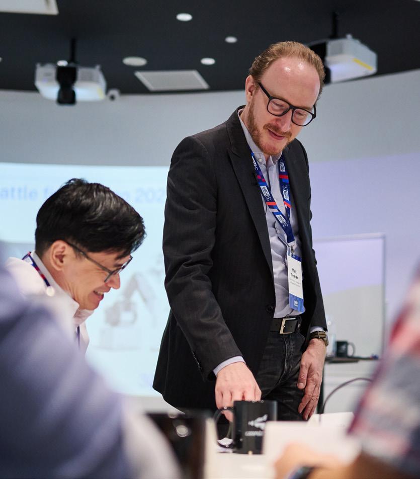 To conclude, Wade introduced a role-playing exercise scheduled for the following day, where participants would simulate decisionmaking scenarios as executives in a fictional company undergoing a twin transformation in AI and sustainability. He encouraged participants to skim his recently published business novel, which provides a narrative framework for the exercise, and familiarize themselves with their assigned roles.