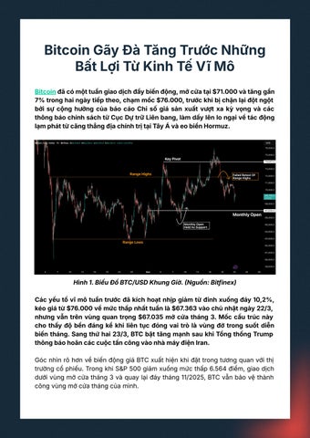 Cácyếutốvĩmôtuầntrướcđãkíchhoạtnhịpgiảmtừđỉnhxuốngđáy10,2%, kéogiátừ$76.000vềmứcthấpnhấttuầnlà$67.363vàochủnhậtngày22/3, nhưngvẫntrênvùngquantrọng$67.035mởcửatháng3.Mốccấutrúcnày chothấyđộbềnđángkểkhiliêntụcđóngvaitròlàvùngđỡtrongsuốtdiễn biếntháng.Sangthứhai23/3,BTCbậttăngmạnhsaukhiTổngthốngTrump thôngbáohoãncáccuộctấncôngvàonhàmáyđiệnIran.