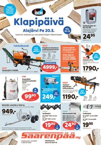 Hinnat voimassa vain tapahtumapäivänä 20.3.2026. Hinnat sis. ALV 25,5 %. Pidätämme oikeuden hintamuutoksiin.