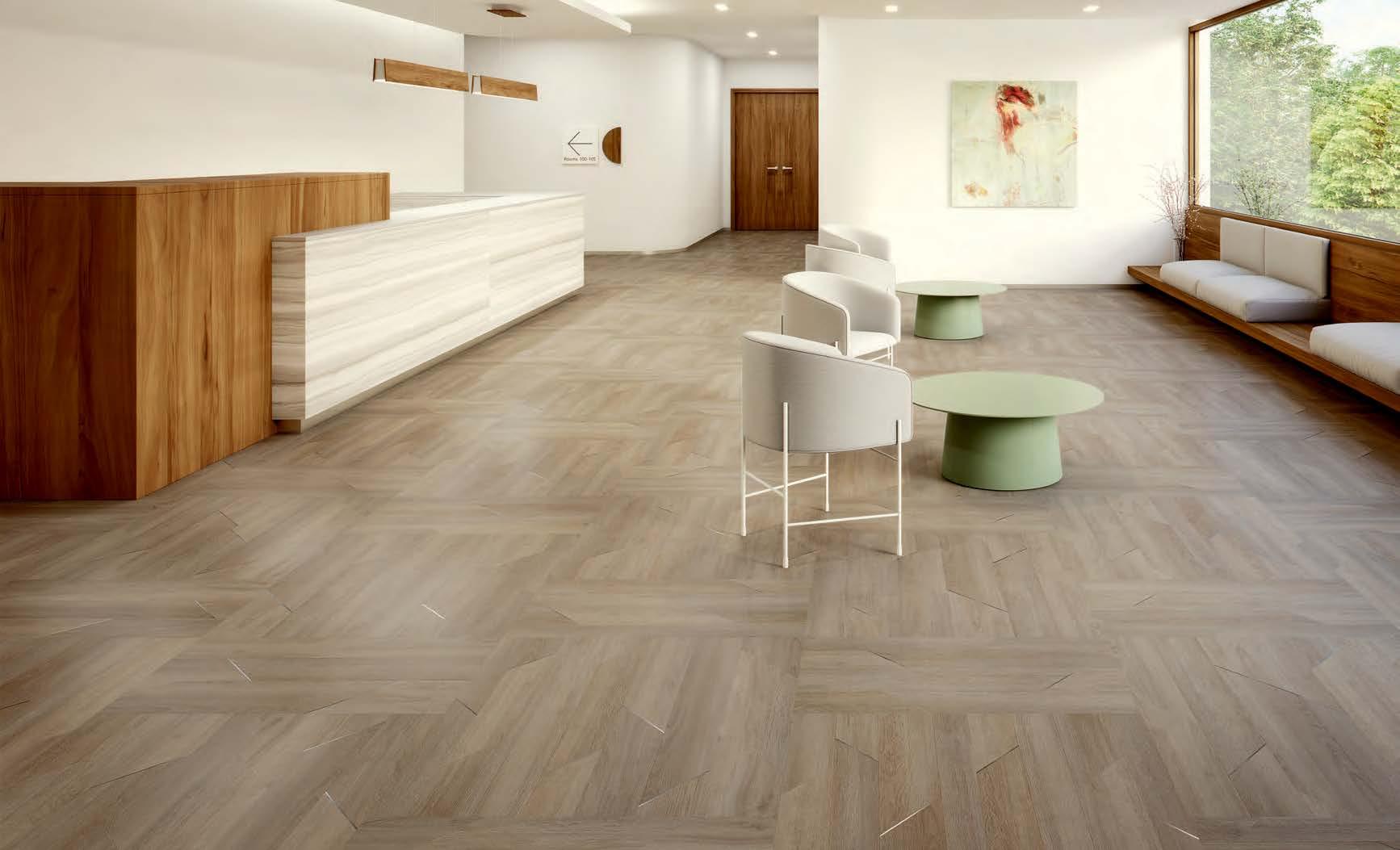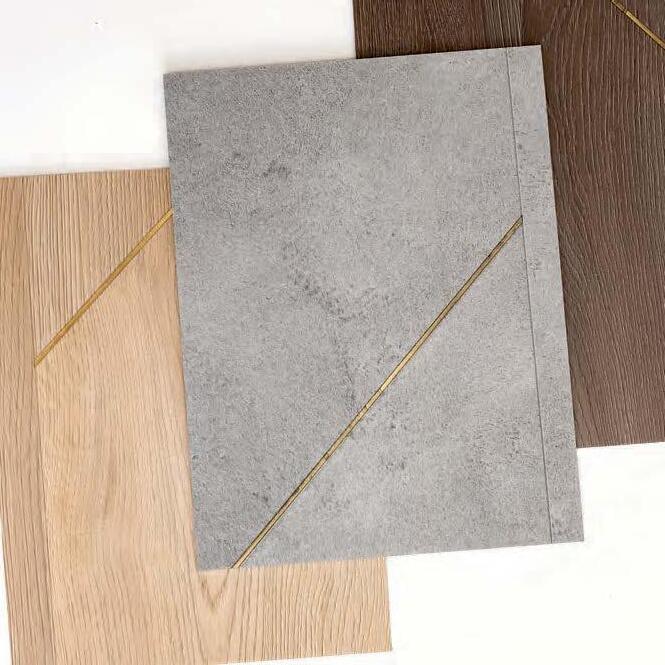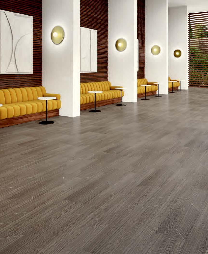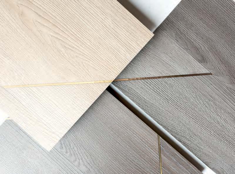 INSPIRED BY THE TECHNIQUE OF PARQUETRY, THIS RESILIENT COLLECTION OFFERS A MIX OF WOOD AND CONCRETE VISUALS ACCENTUATED WITH METALLIC INLAY – CREATING A DISTINCTIVE
