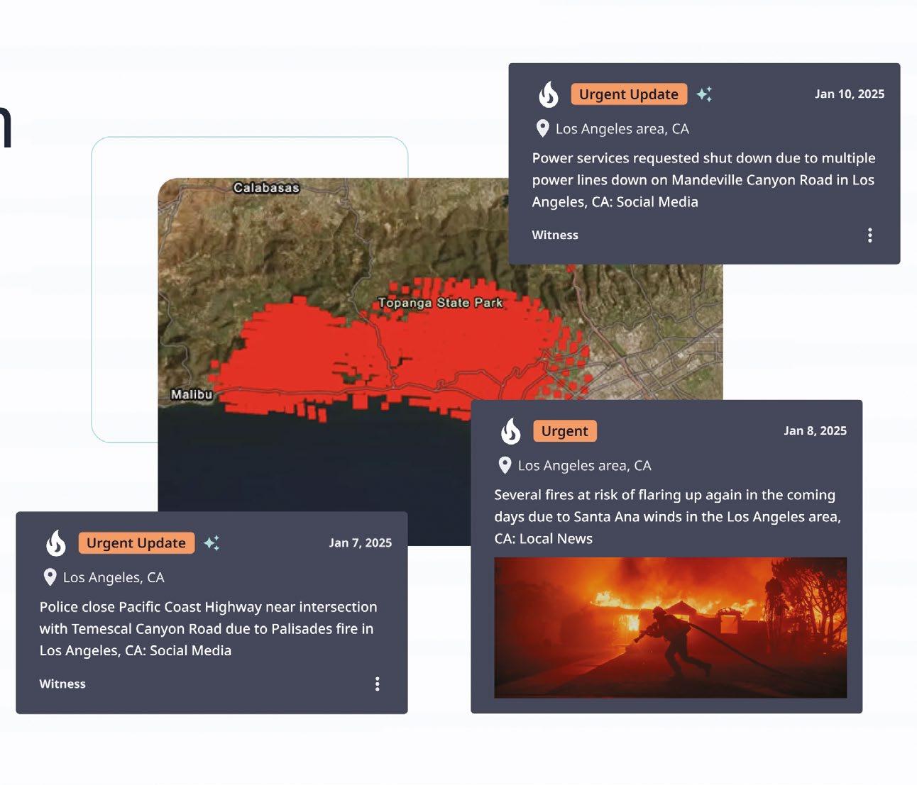 During the session “Securing the Signal,” panelists discuss how threat intelligence platforms enable broadcasters to anticipate risks and safeguard field operations. The images are from the company Dataminr.