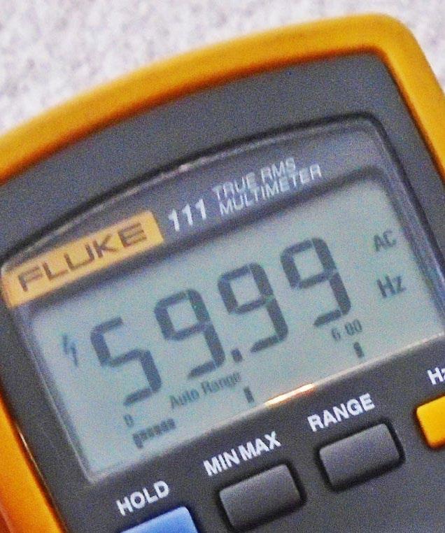 Some multimeters measure capacitance and can even do peak hold on voltage and current readings. A few can measure power line frequency, such as from backup power generators, as seen in Fig. 5. Many uninterruptible power supplies want to see incoming line voltage and frequency that is close to what they get from an electric utility. A multimeter can help in getting a generator adjusted.