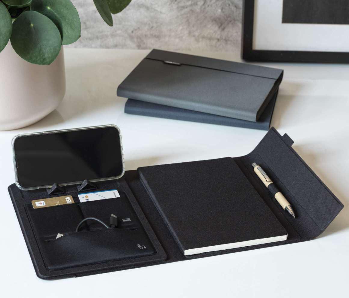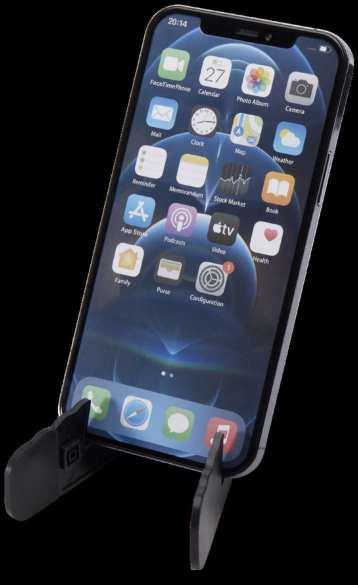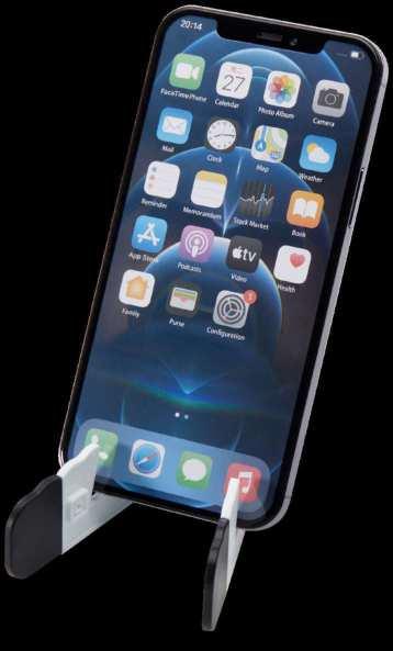 104607 | BUNA RECYCLED PLASTIC FOLDABLE TABLET AND PHONE STAND | Recycled ABS Plastic | 13.4 x 4 cm | 4.600 kg CO2e