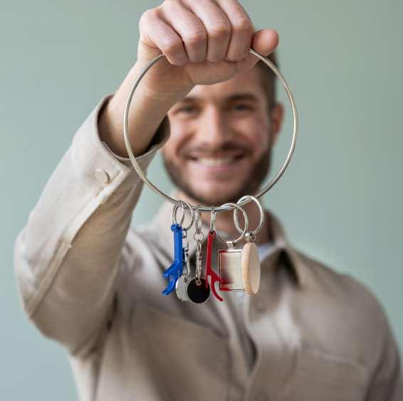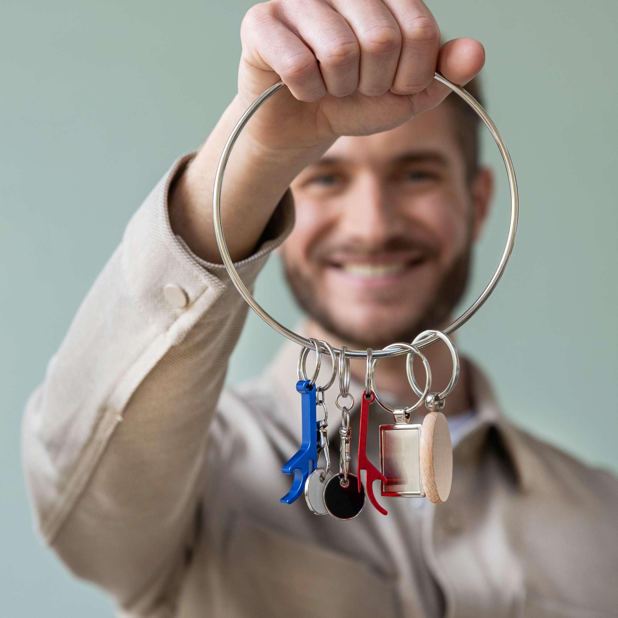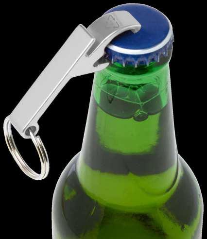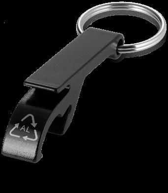 104571 | TAO RCS RECYCLED ALUMINIUM BOTTLE AND CAN OPENER WITH KEYCHAIN | Recycled Aluminium | 6 x 1 x 2.6 cm | 0.040 kg CO2 e