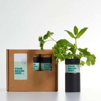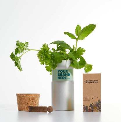 • Desktop Garden, in black or silver, with two soil coins and a choice of herb mix, or bee-friendly seed mix
