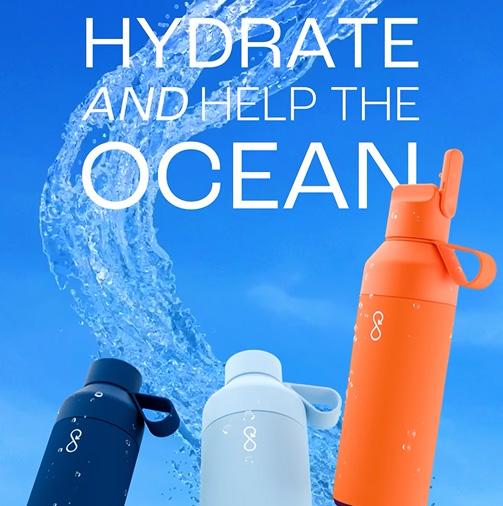 100856 | OCEAN BOTTLE 750 ML VACUUM INSULATED WATER BOTTLE | Recycled stainless steel - PET Plastic - Recycled PET Plastic - Silicone Plastic | 8.7 x 21.8 cm | 2.430 kg CO2e