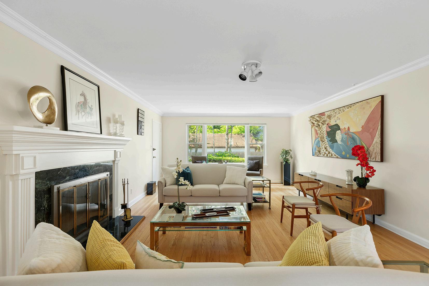 Sun-drenched living room, with a handsome wood-burning fireplace, leading to a heated den with views and access to your private outdoor oasis.