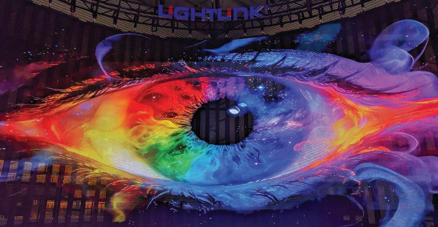 A Eye – it’s the theme of ISE 2026 after all. This eye-catching display from Chinese LED rental specialist Lightlink (3A700) features the company’s self-developed Black Panther transparent LED panels. They have a high-transparency hollow structure capable of delivering a three-dimensional, floating visual effect for live stadium tours.