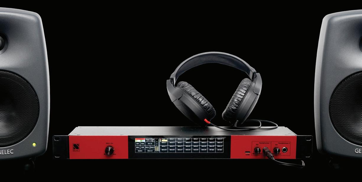 The unit uses a speaker-free architecture to integrate with external loudspeakers and loudness meters via AES and line outputs. It supports Dante, Ravenna/AES67 and ST 2110, with AVB-Milan planned. Functions such as phase reverse, mono sum, dim, channel mute and configurable trims support fast, precise checks in mission-critical workflows.