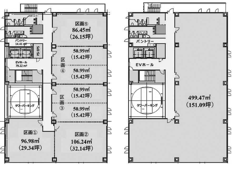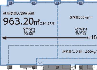 最大2分割を想定とした、様々なレイアウトに対応可能な フロアプラン、低層を生かした効率的な業務が可能な設計。